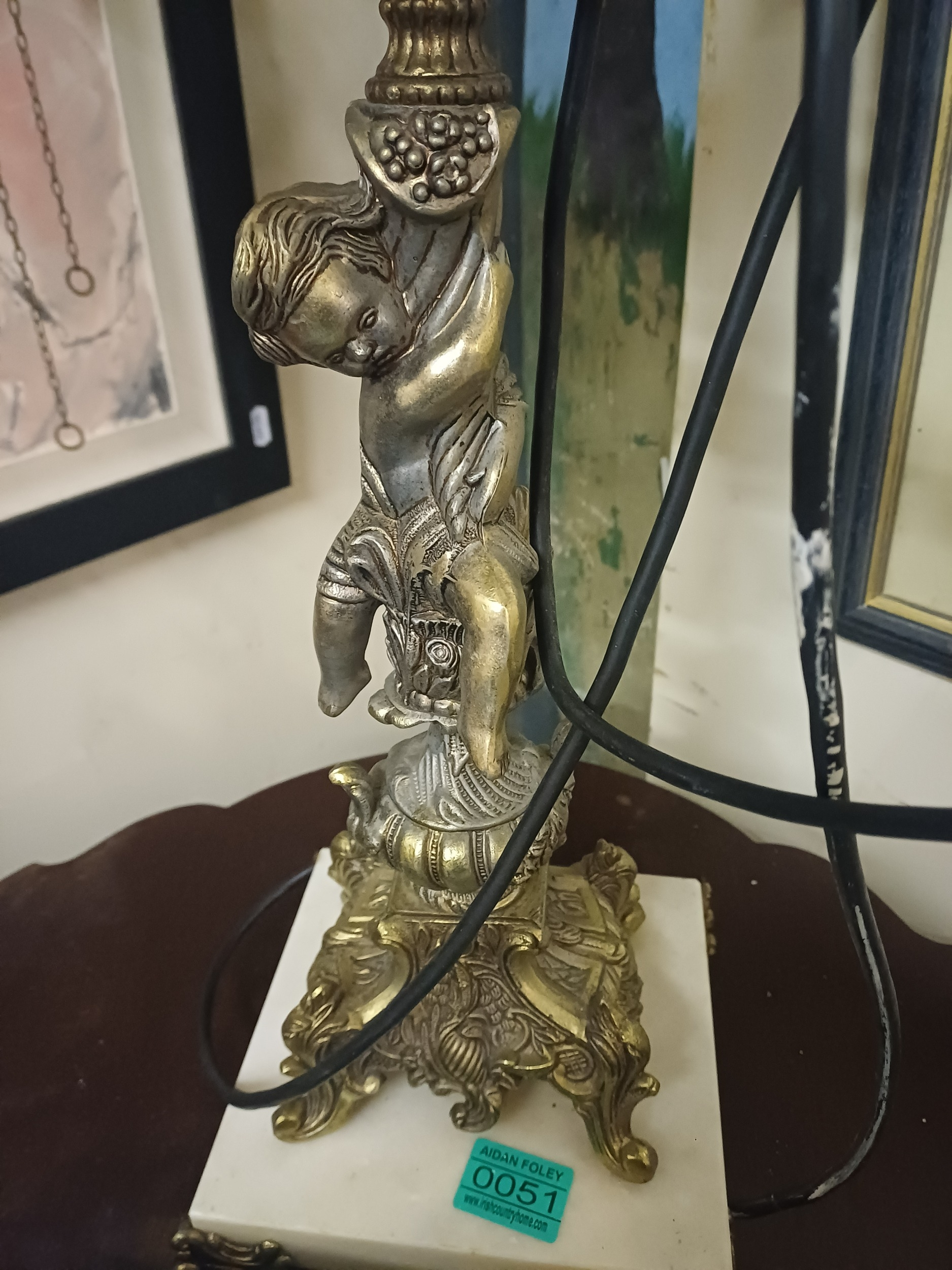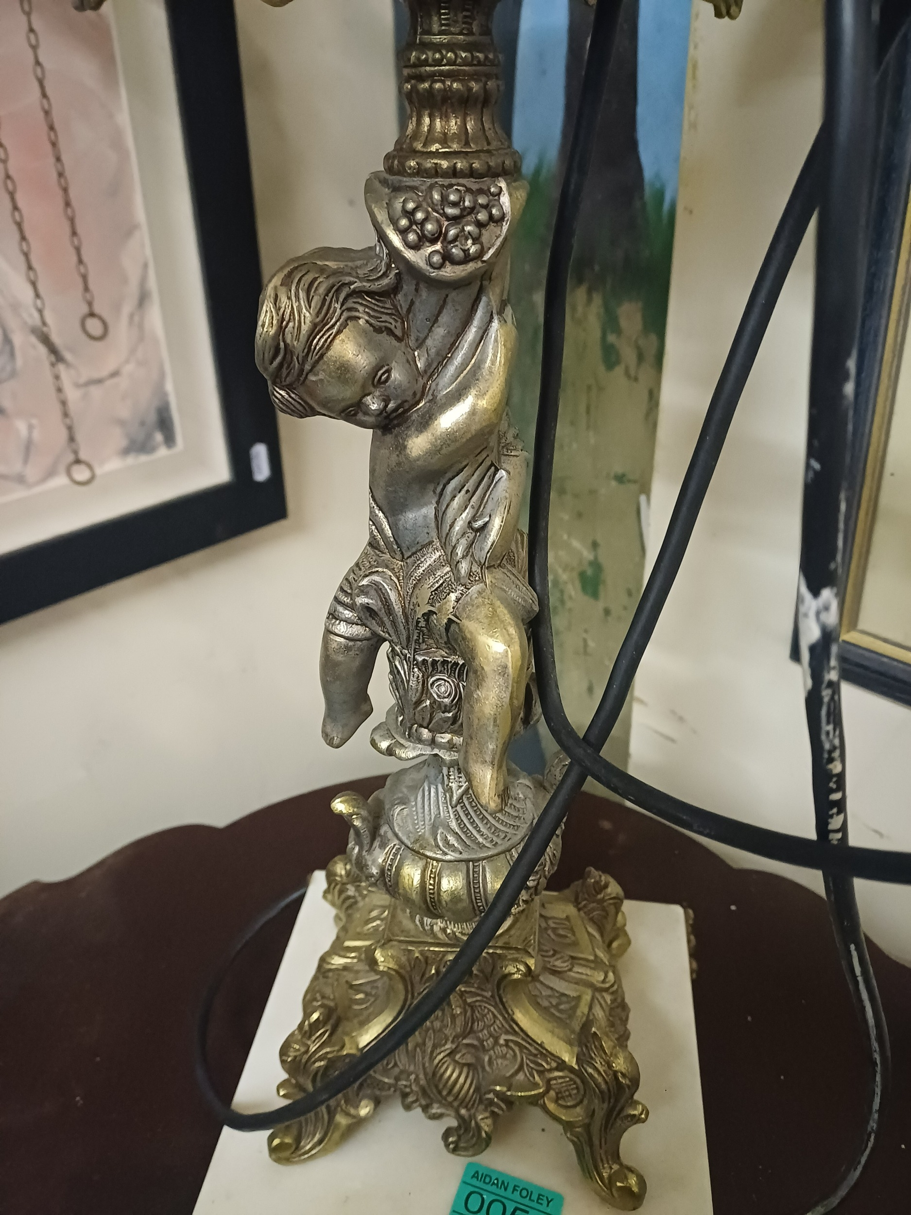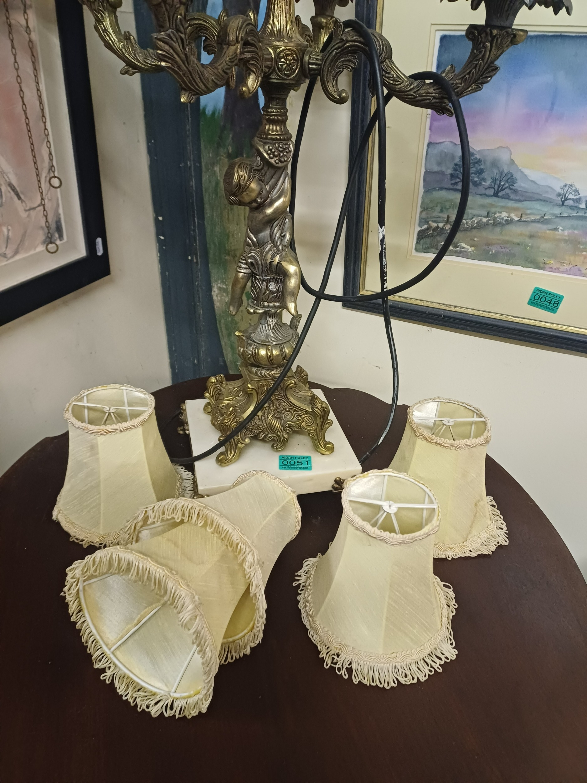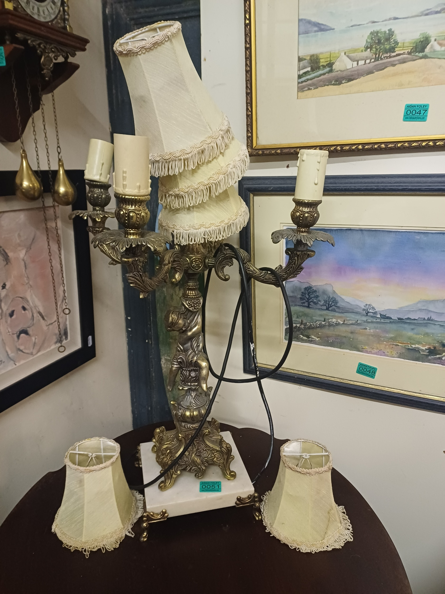 Impressive 4 Branch Marble and Brass Table Lamp (70cm Tall)