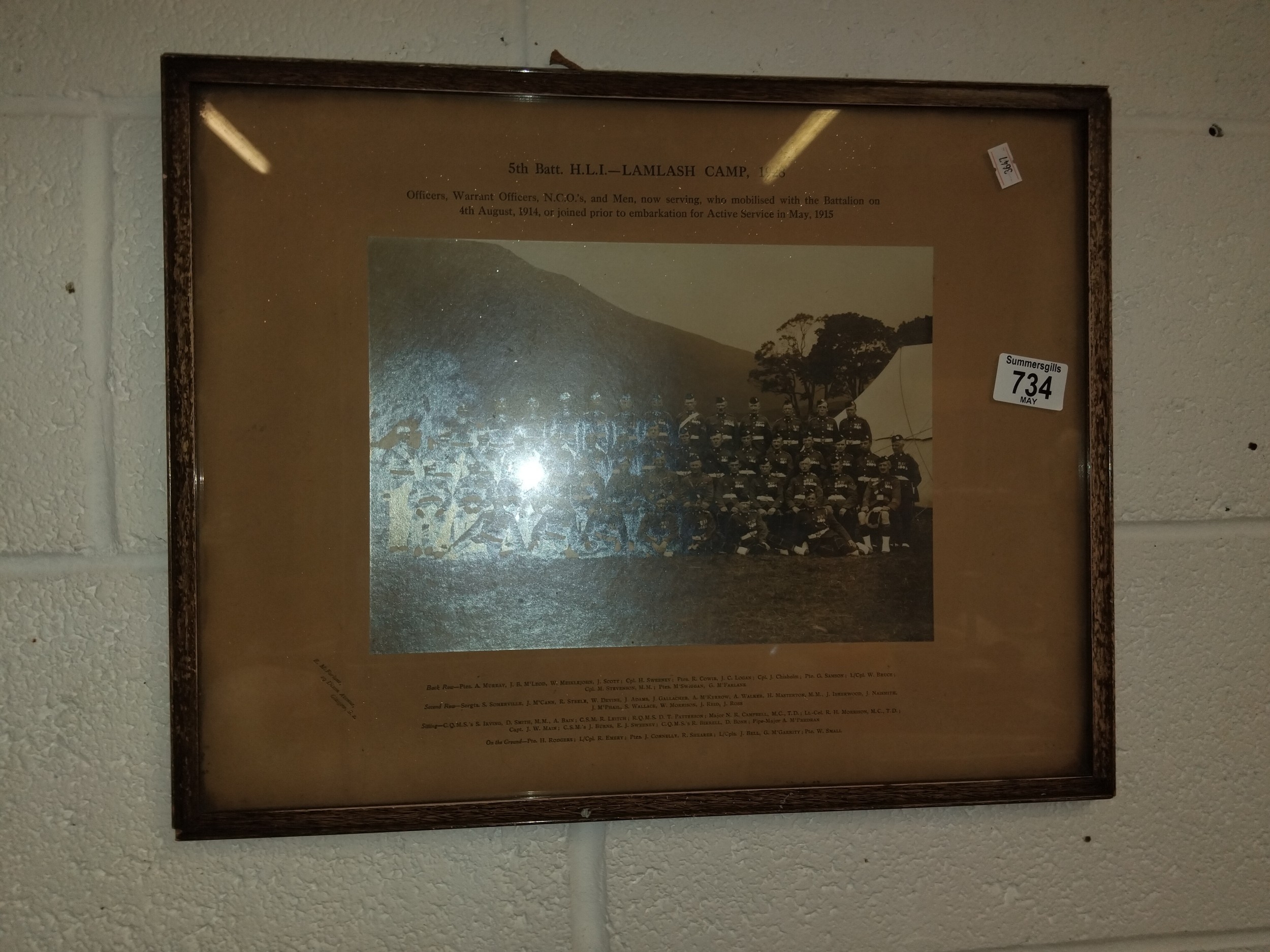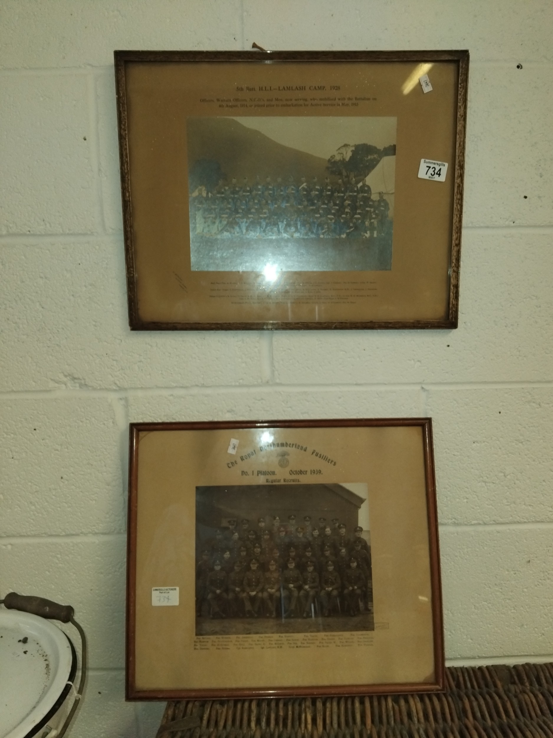Military interest - x2 framed photographs 5th Batt. H L I Lamlash Camp 1928 and Royal Northumberland Fusiliers 1939