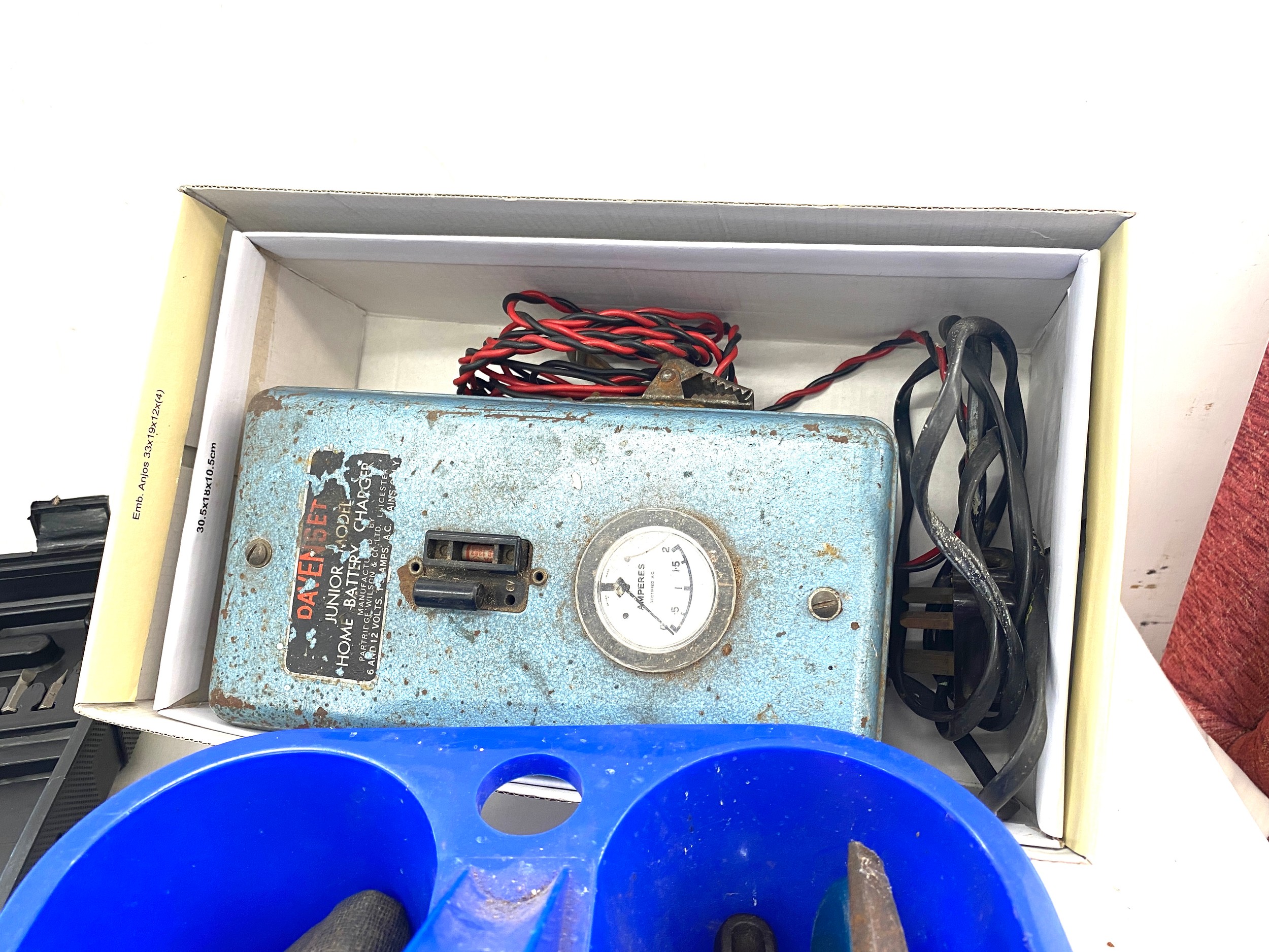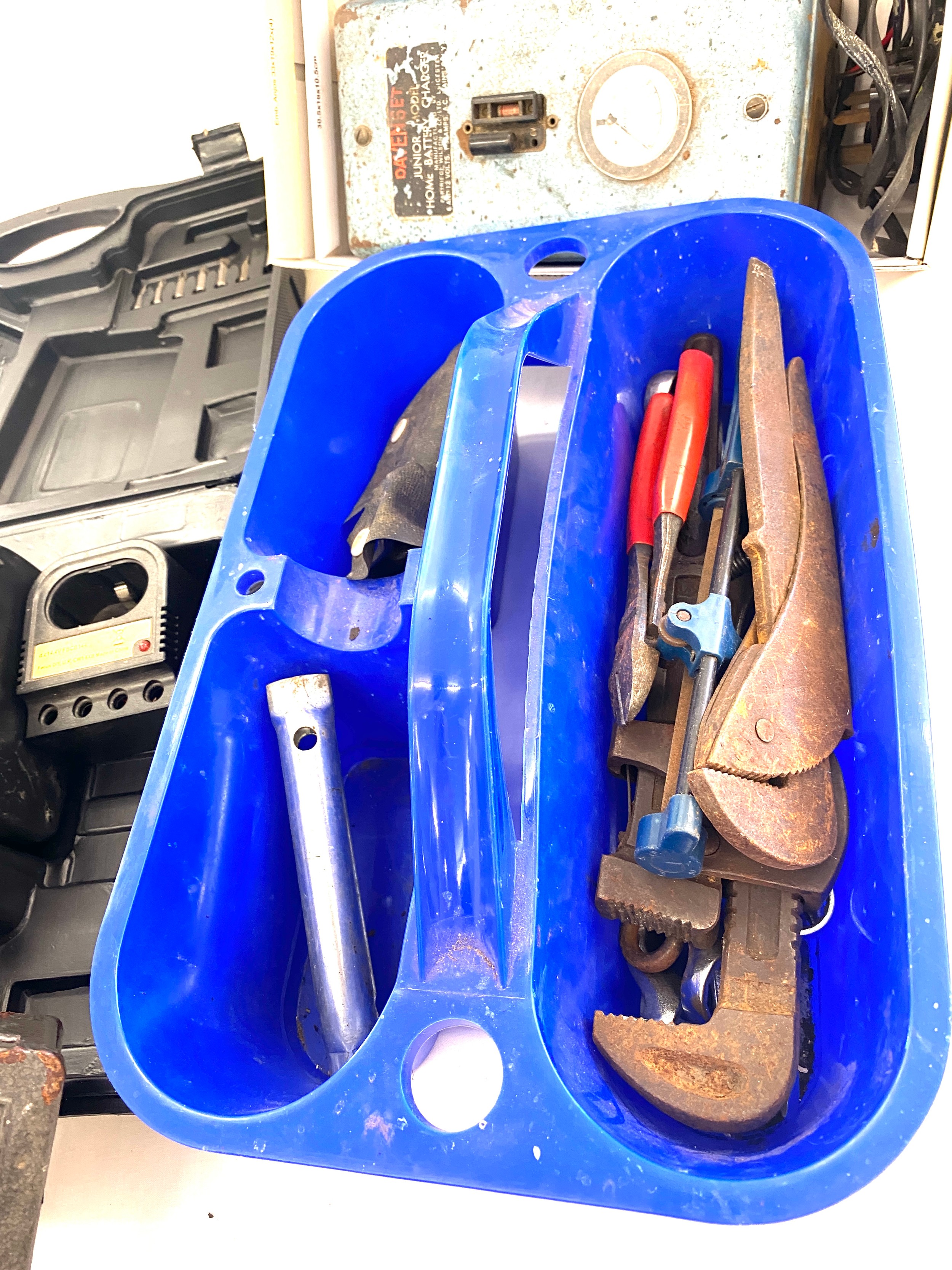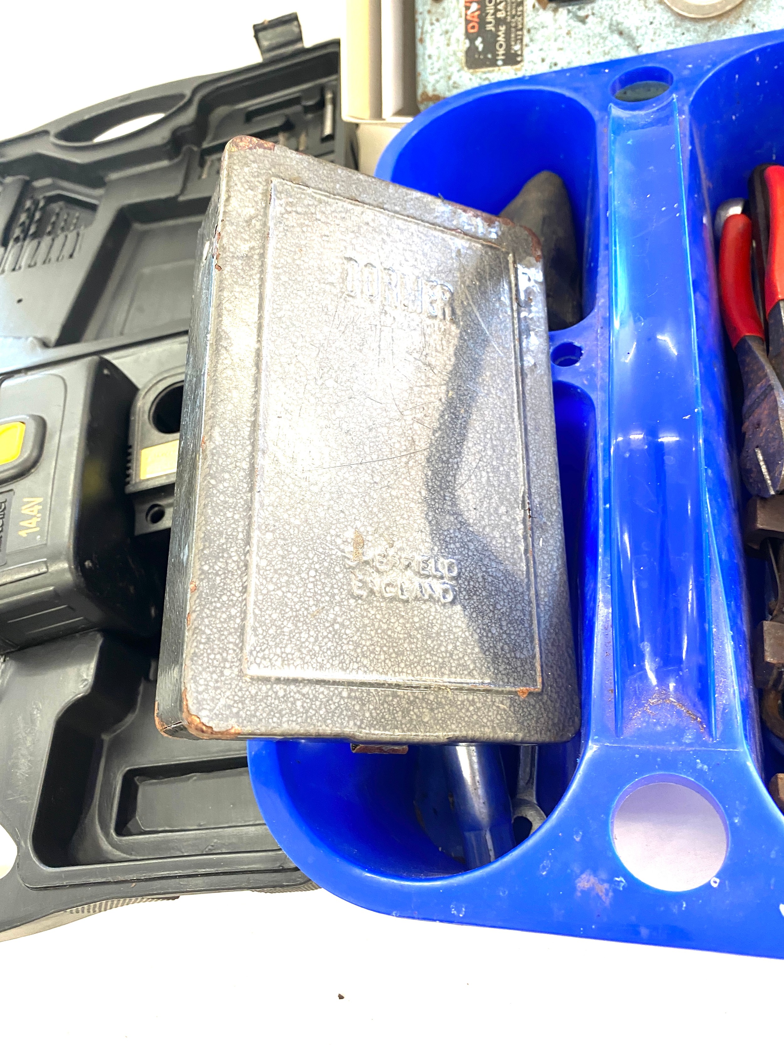 Selection of tools to include drill and accessories, battery charger, drill bits