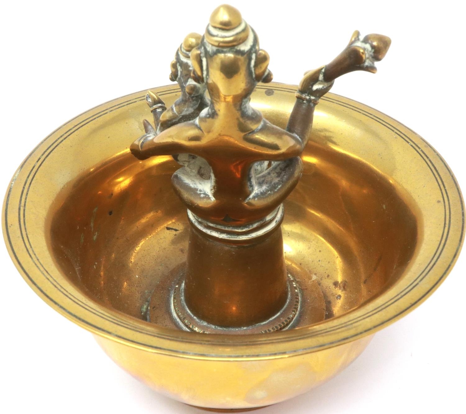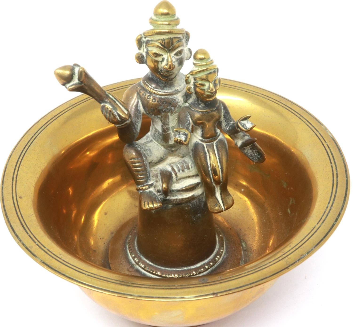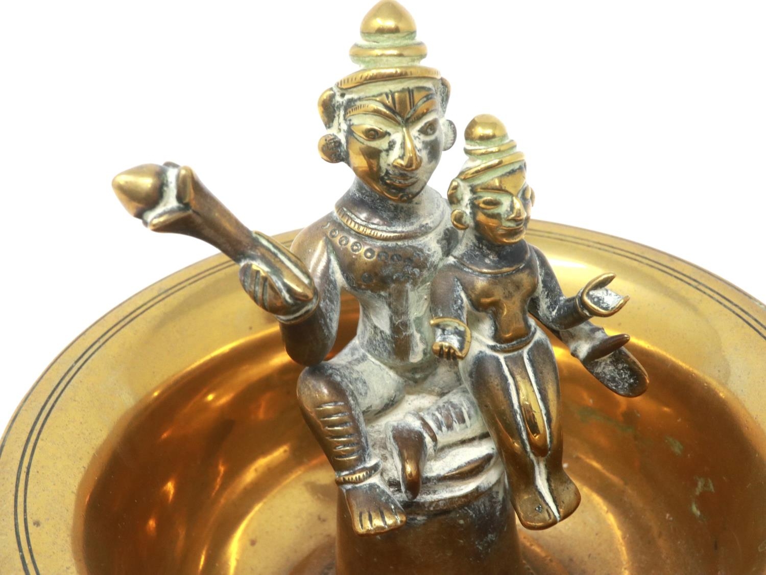 Oriental brass censer with applied figure to the bowl. P&P Group 1 (£14+VAT for the first lot and £1+VAT for subsequent lots)