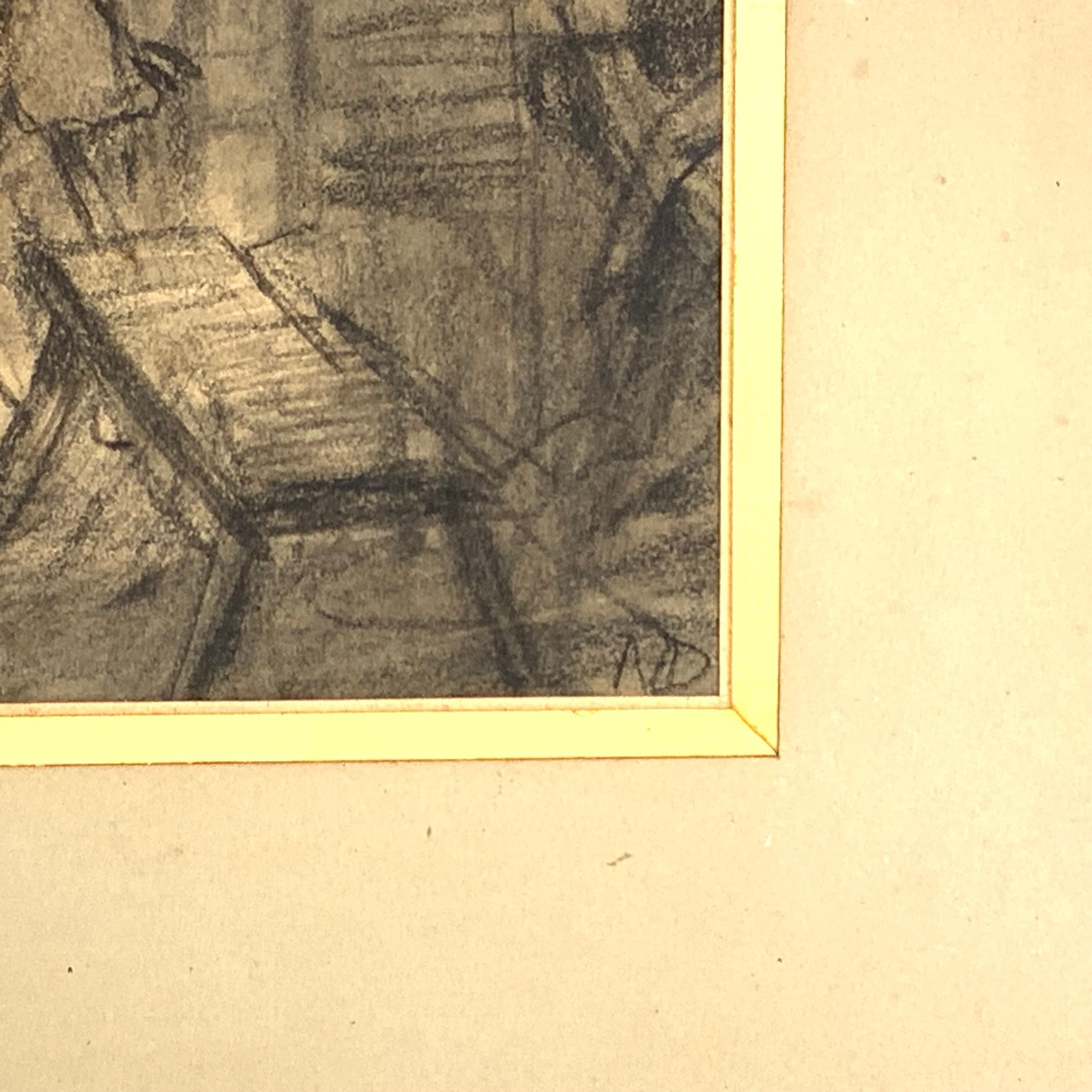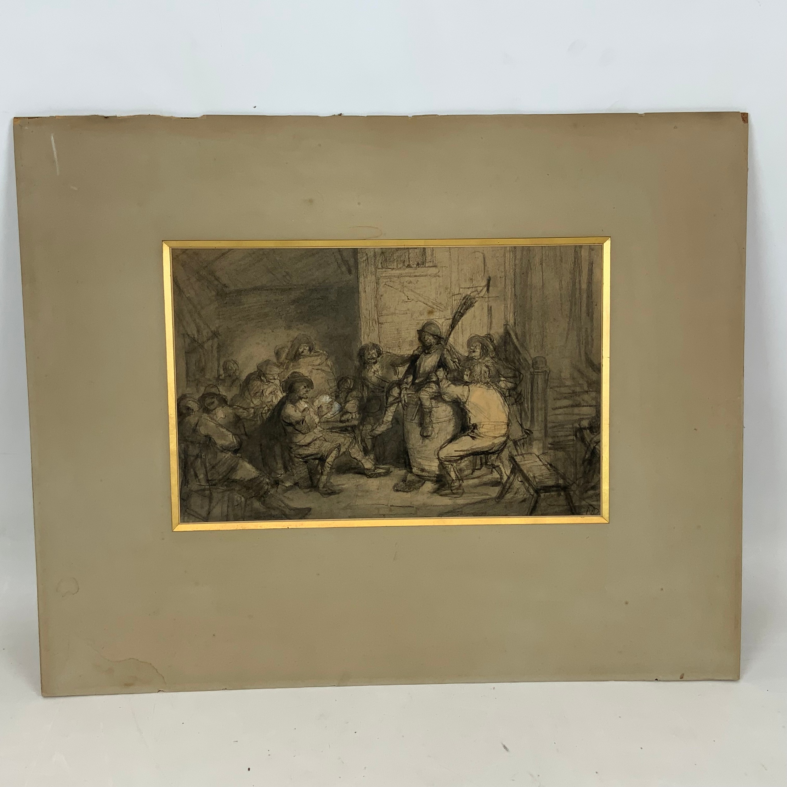 Jean-Baptiste Madou (Belgium, 1796-1877) charcoal drawing possibly titled 'The Inquisition', mid 19th Century, W 35cm, H 23cm, mount W 57cm, H 46cm.