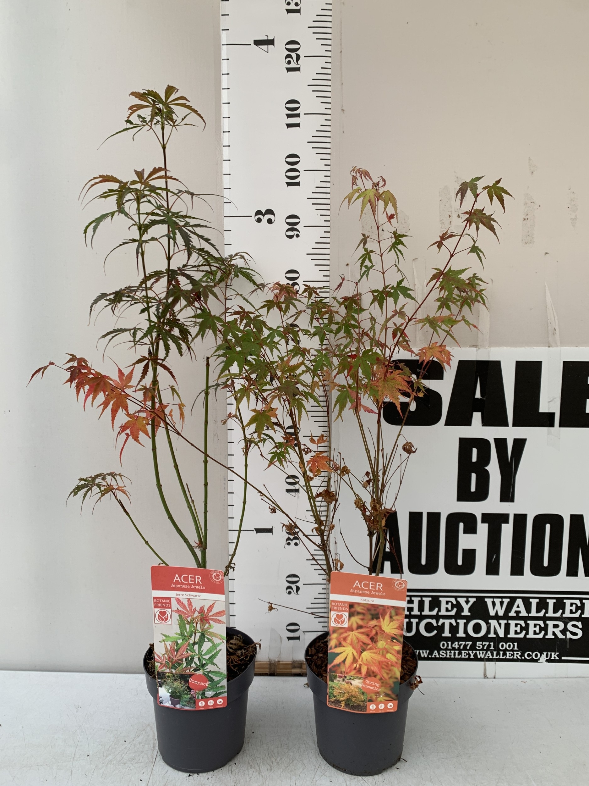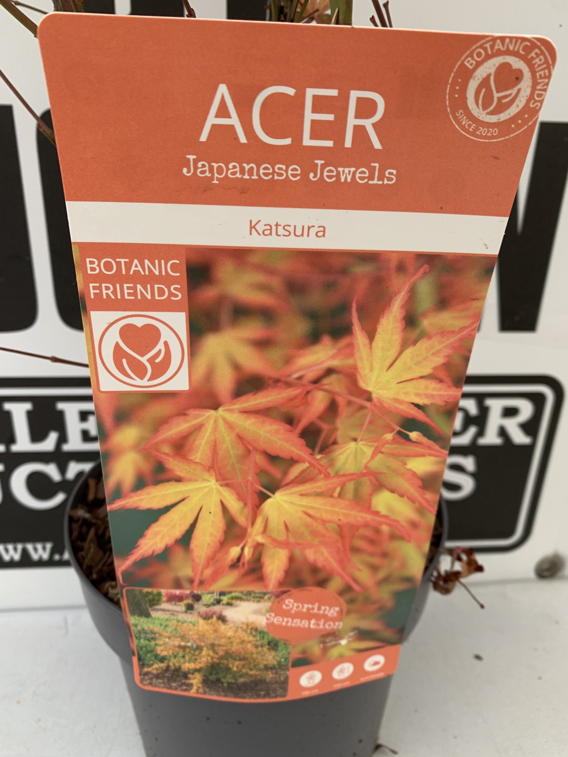 TWO ACER PALMATUMS - ONE 'JERRE SCHWARTZ' AND ONE 'KATSURA' IN 3 LTR POTS. APPROX 100-110CM TALL, TO BE SOLD FOR THE TWO