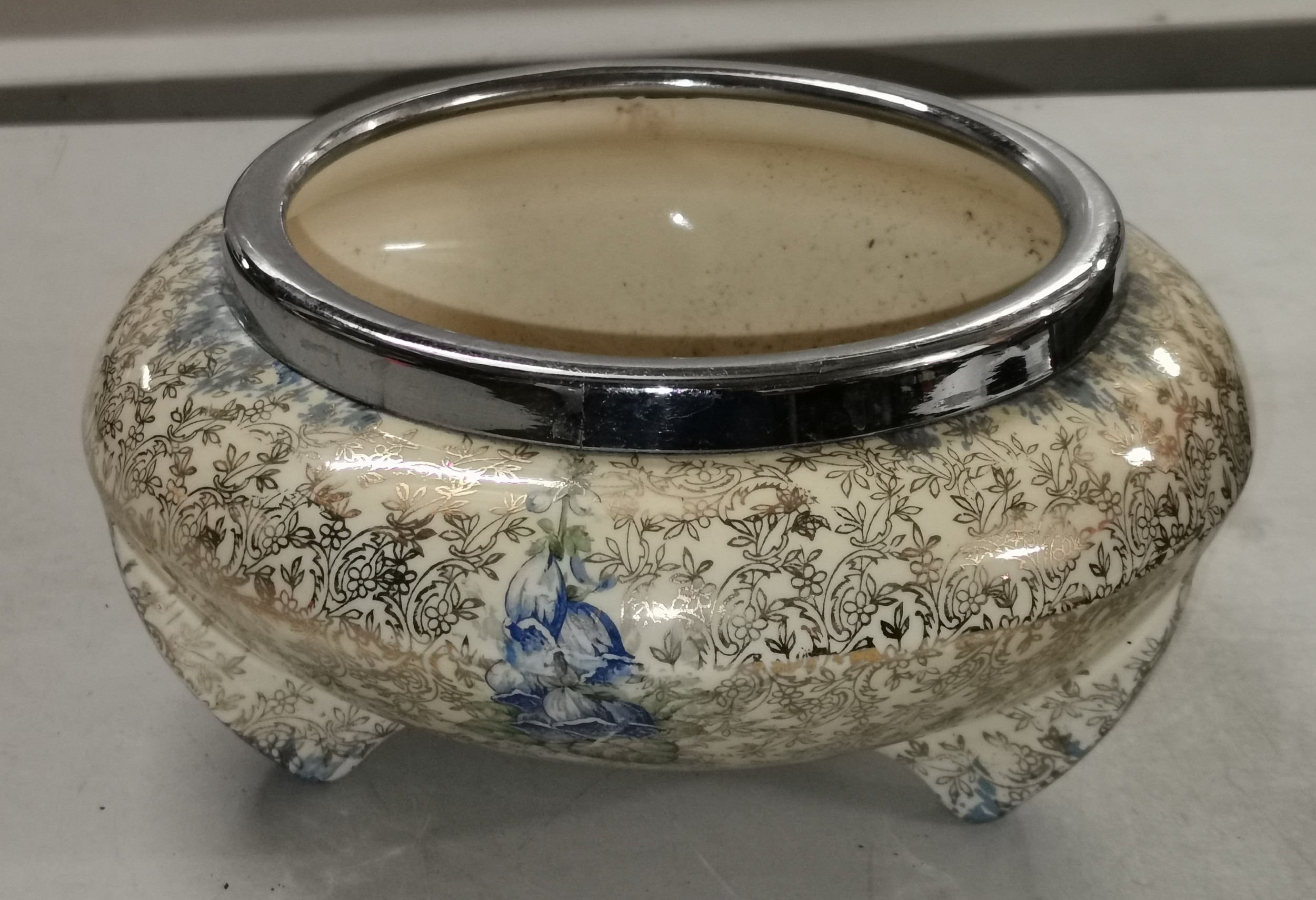 21 cm diameter Wilkinson honeyglaze art deco bowl with silver plated rim