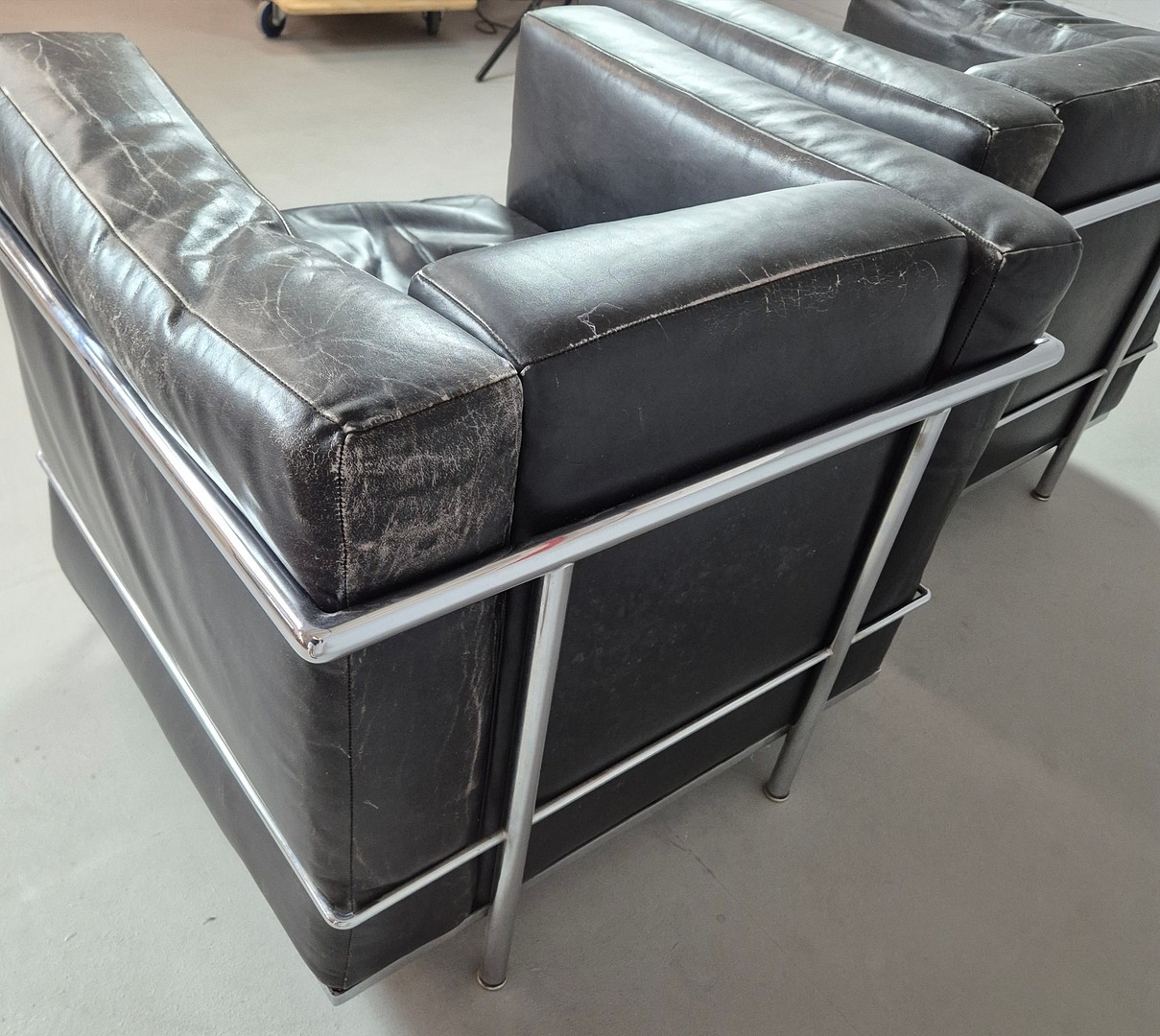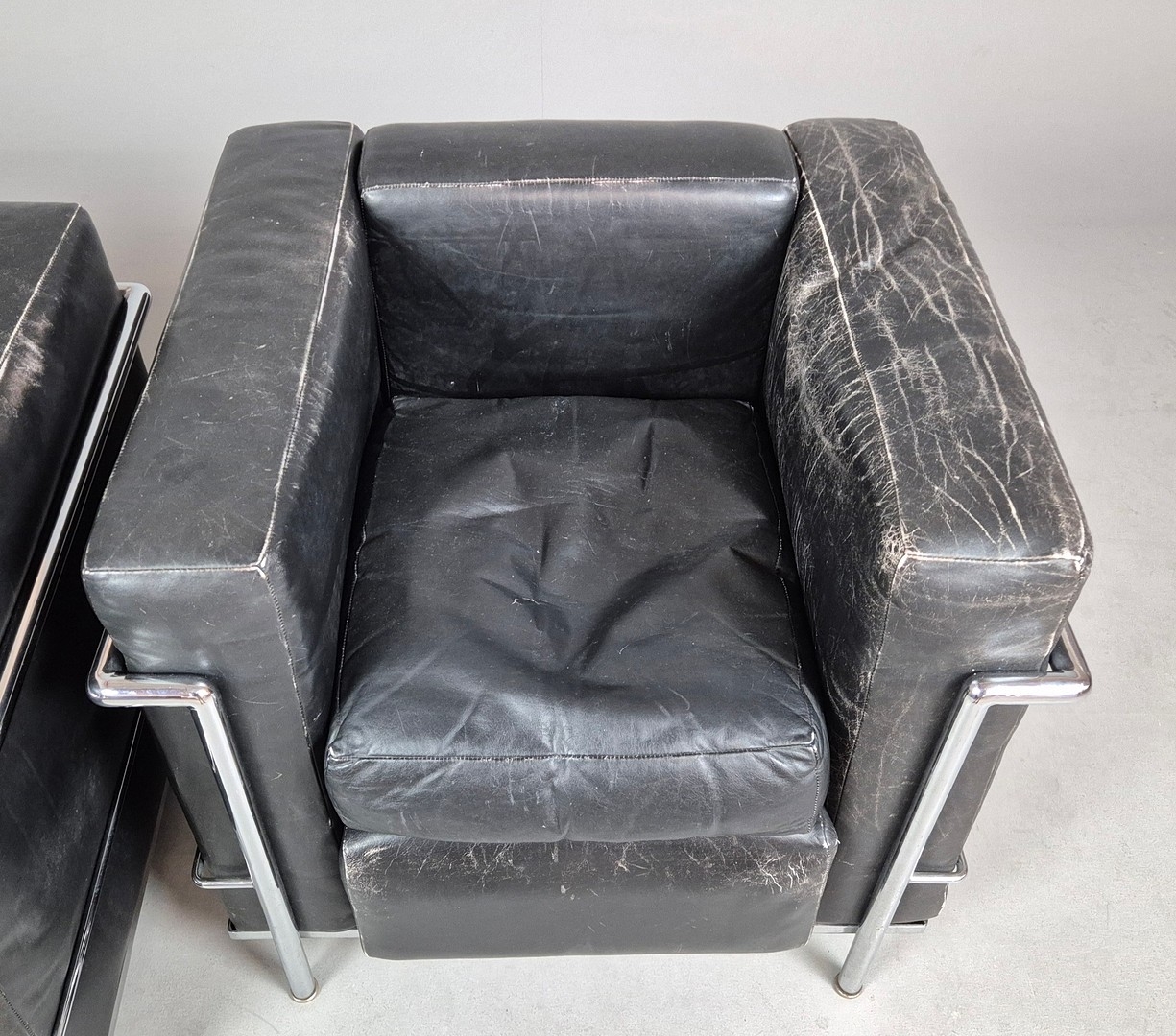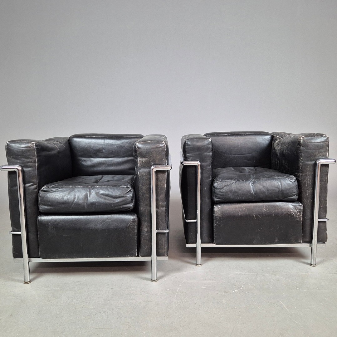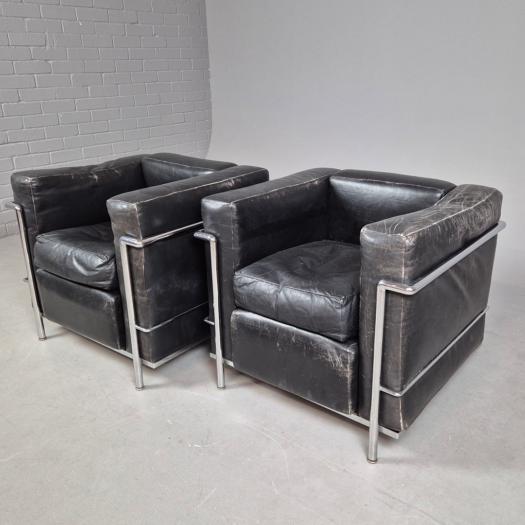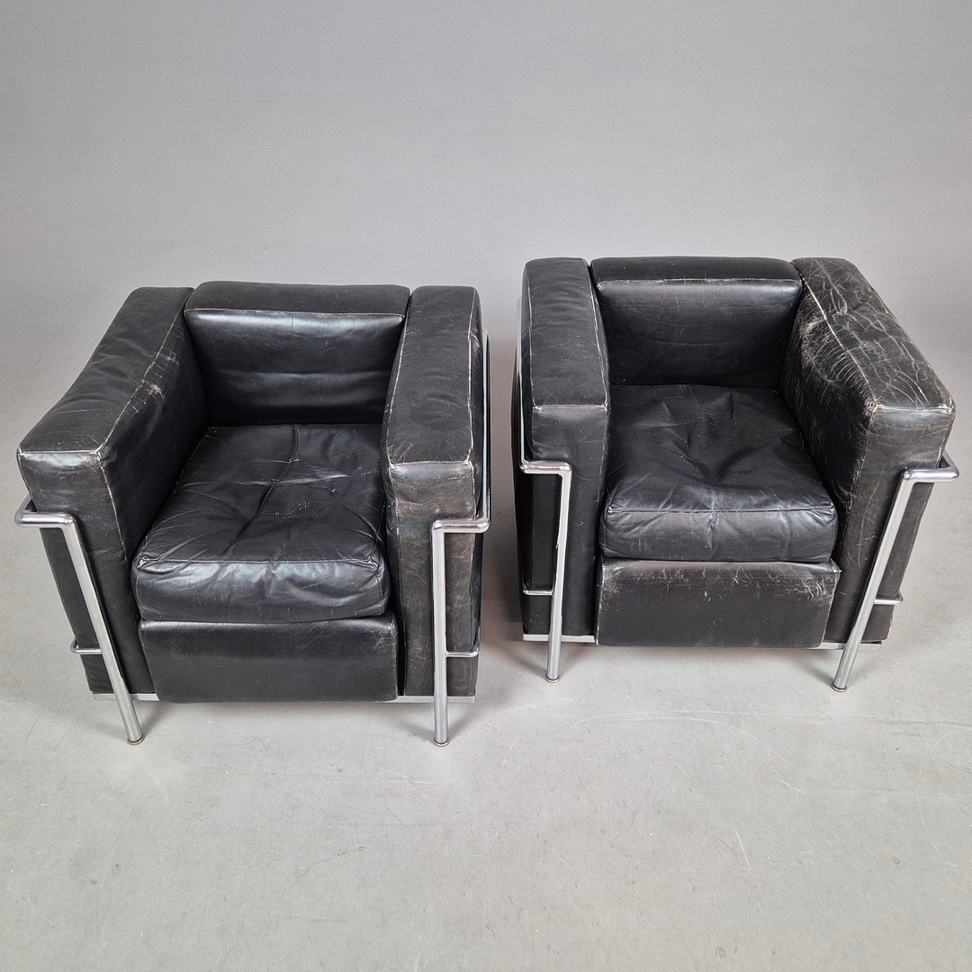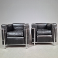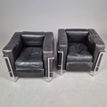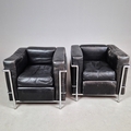 CASSINA LC2 CHAIRS, A PAIR. by Le Corbusier, vintage 20th Century, 76cm W approx. (2).