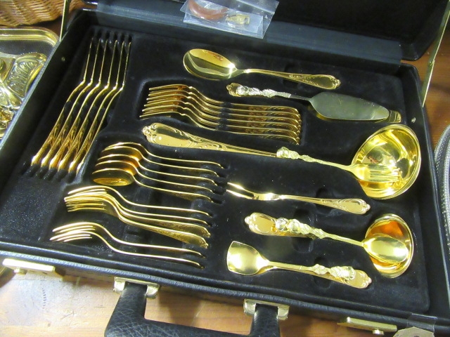 BRIEFCASE OF GOLD PLATED SOLINGER CUTLERY