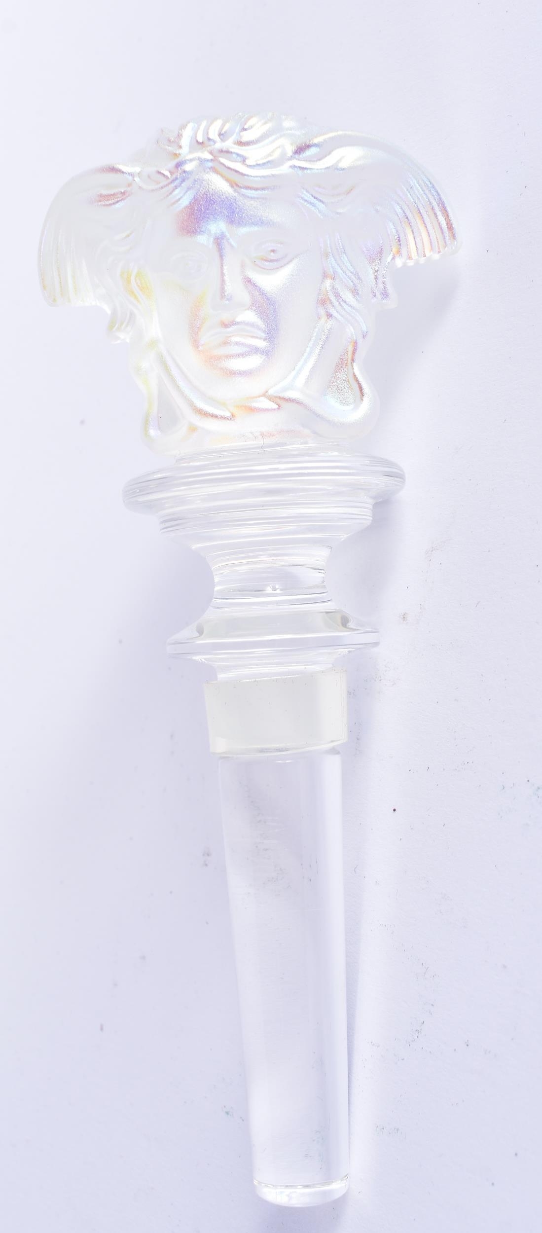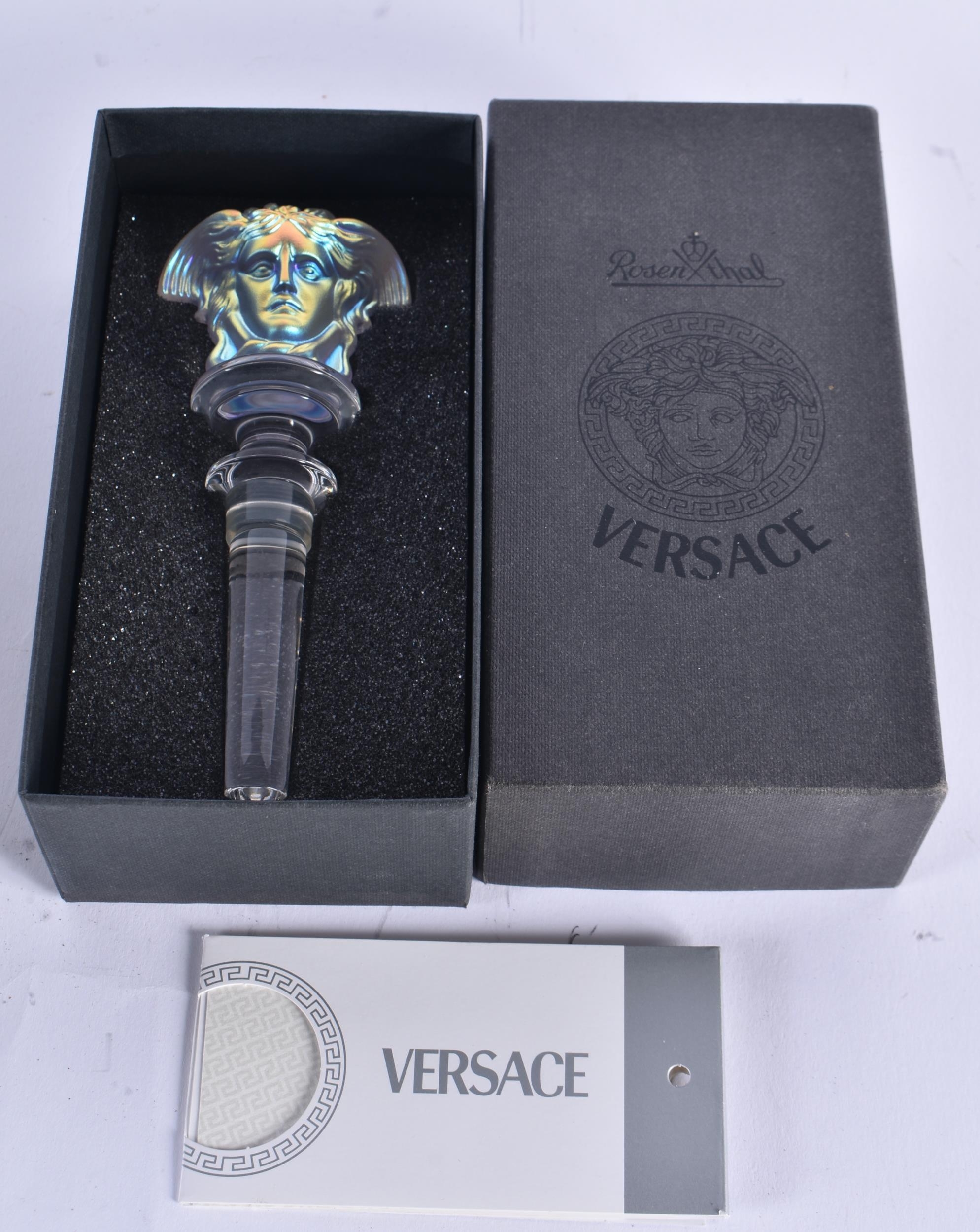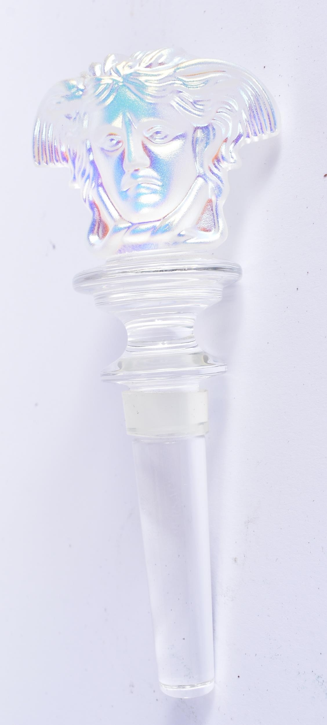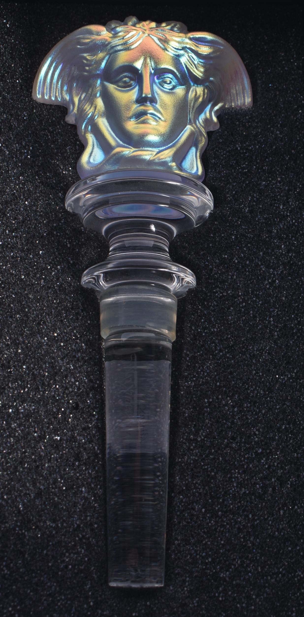 A VERSACE ROSENTHAL IRIDESCENT GLASS BOTTLE STOPPER. 14 cm long.