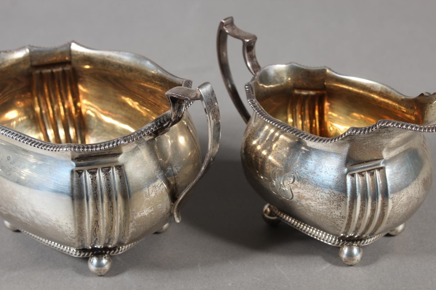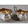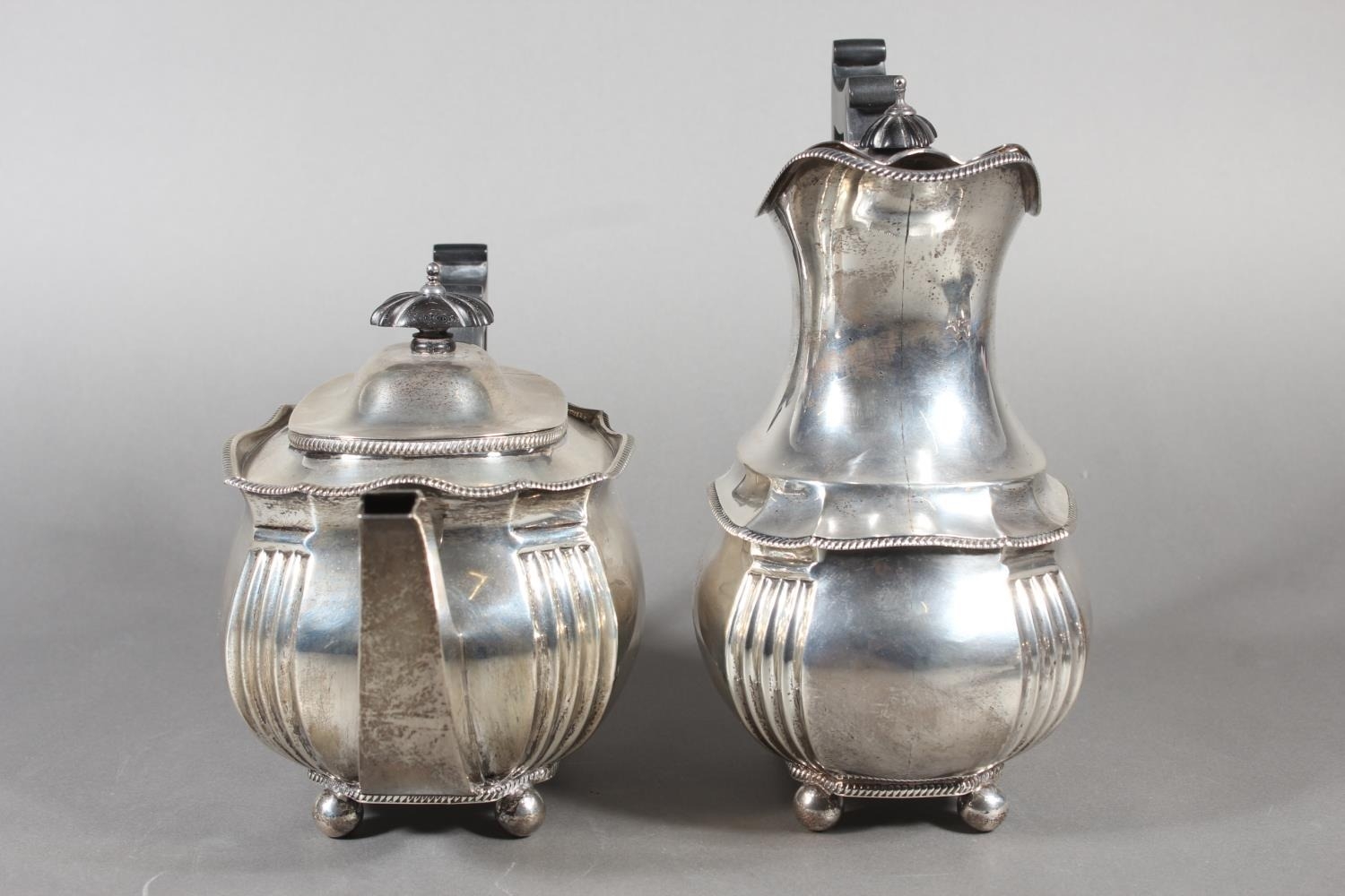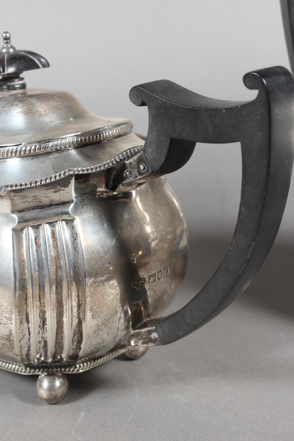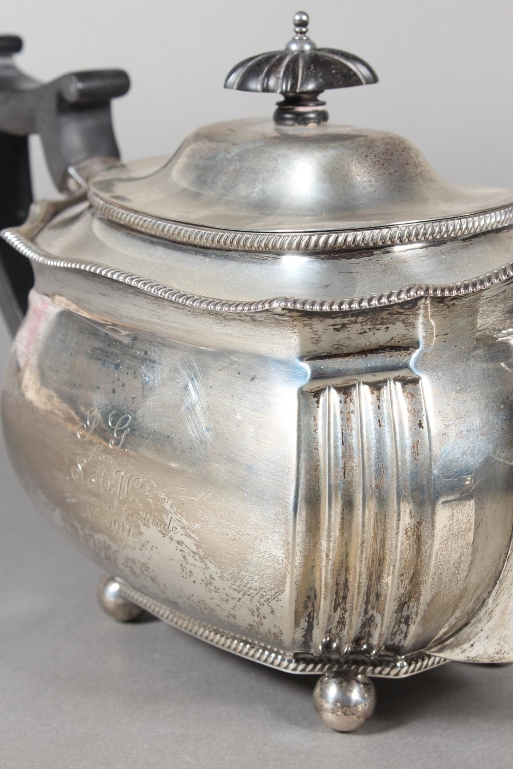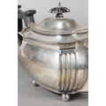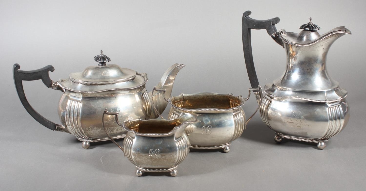 Geo V silver four piece tea service raised on ball feet, Fenton, Russell & Co Ltd, London, 1913, 1506g.