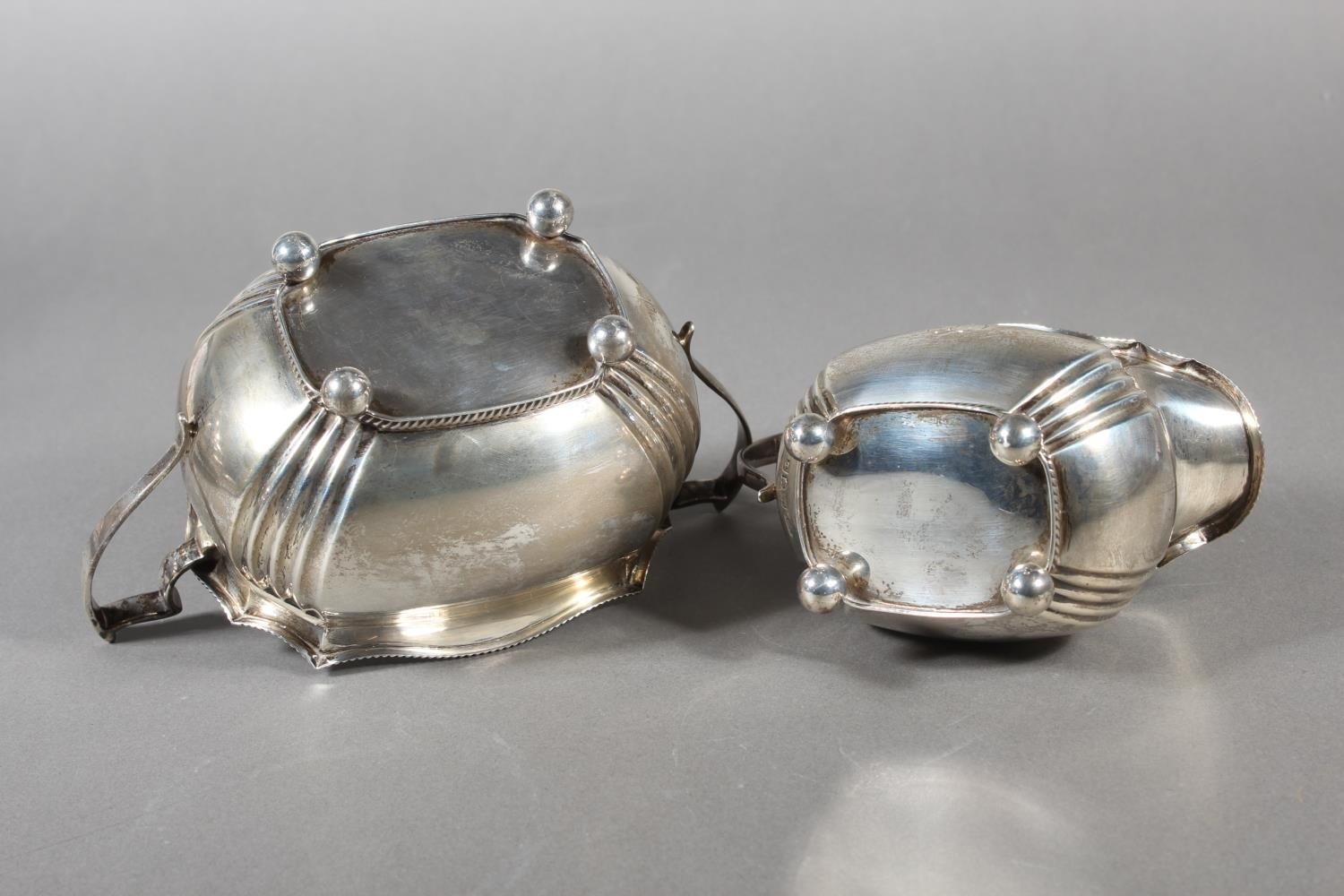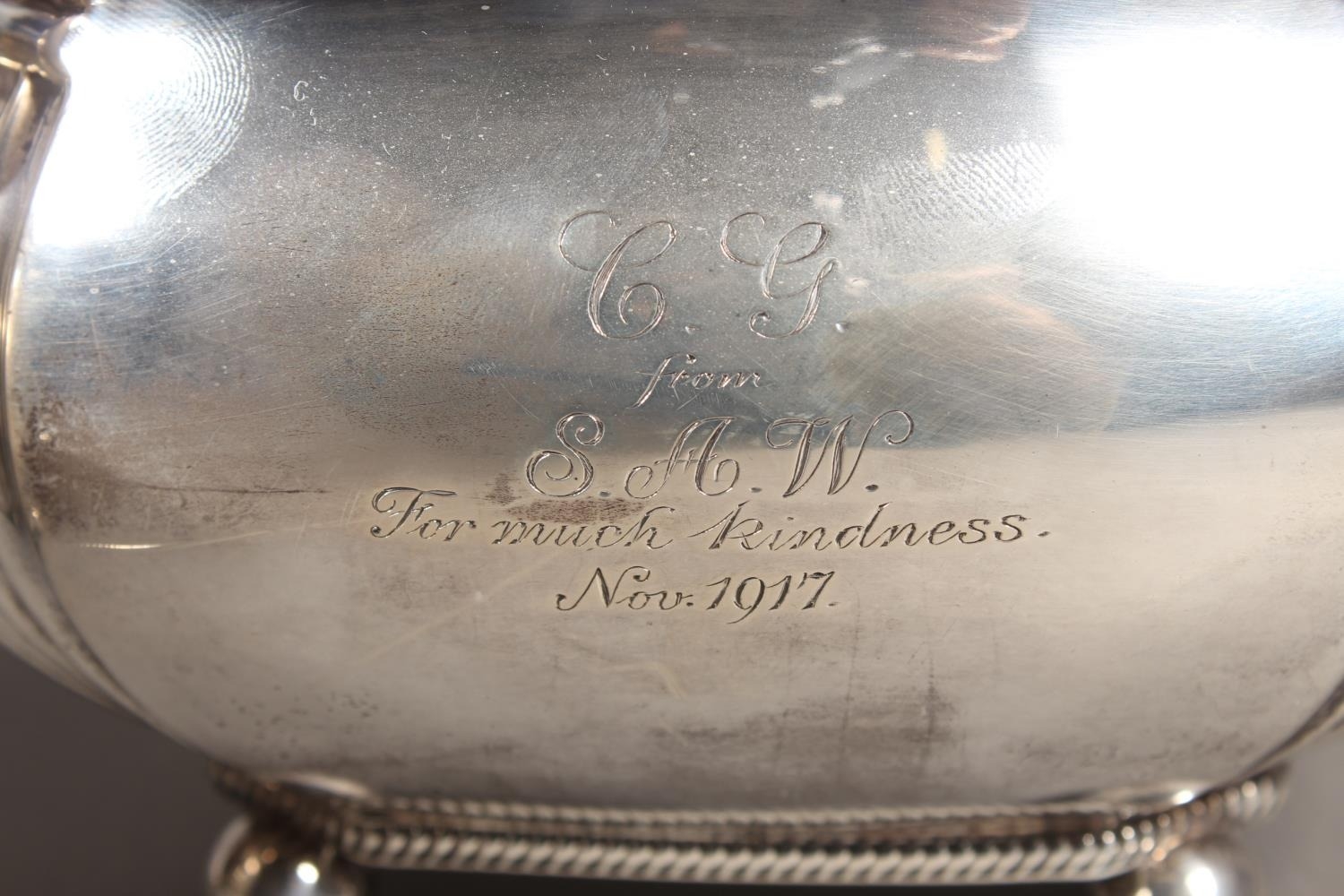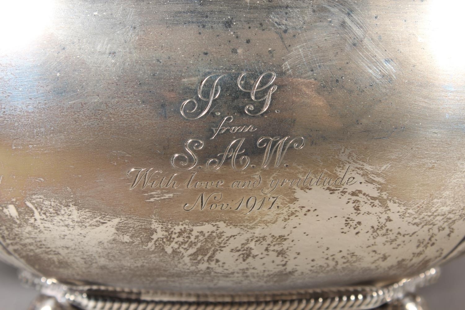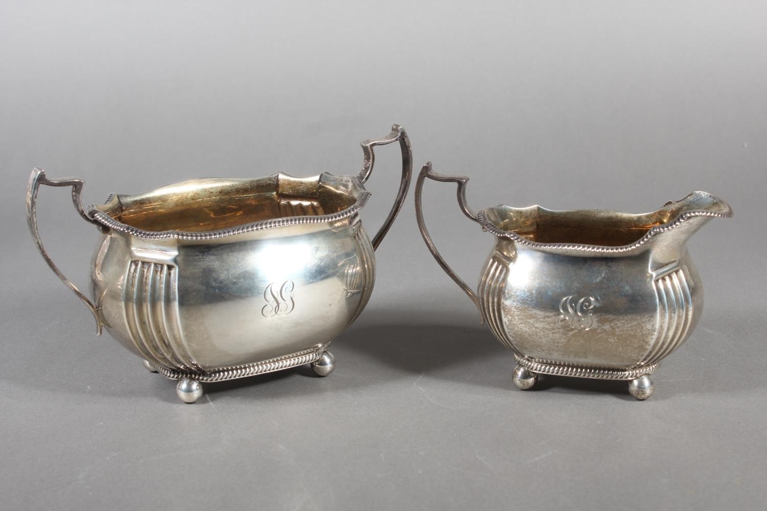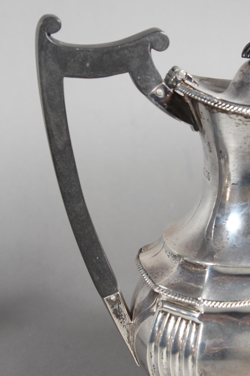 Geo V silver four piece tea service raised on ball feet, Fenton, Russell & Co Ltd, London, 1913, 1506g.