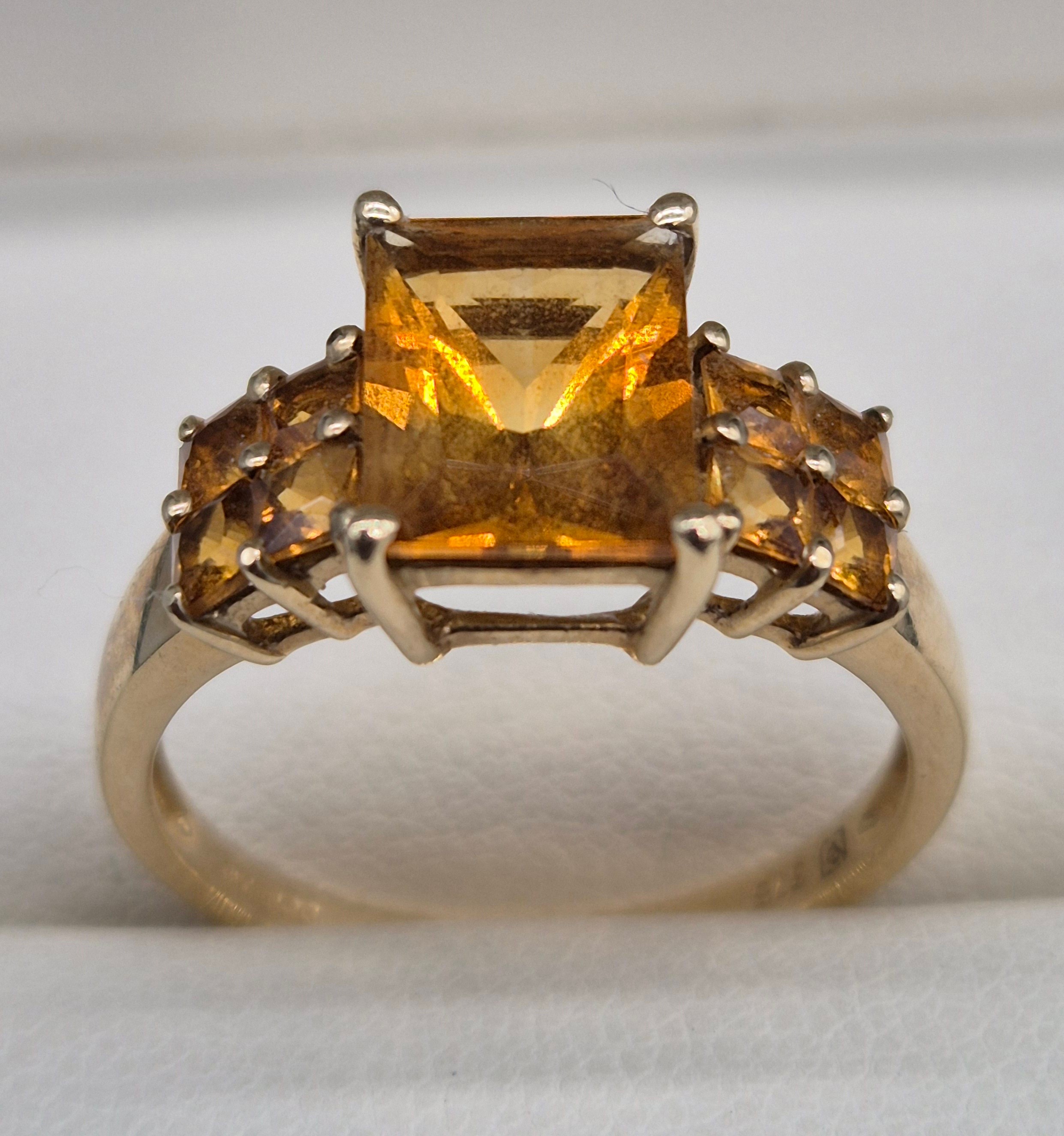 9ct yellow gold and Citrine gem stone ring. 2.89grams. Ring size P.