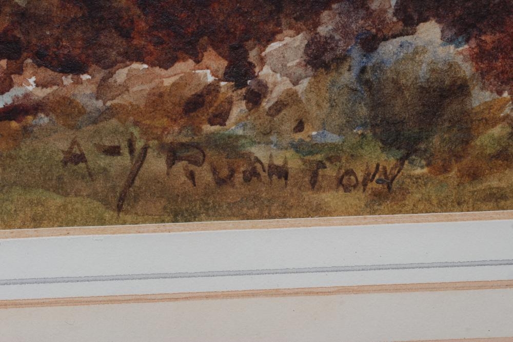 Neither watercolour has been examined outside of their frames. Both with occasional spots of foxing and discolouration to the paper. The moorland scene with indentations to the paper top right