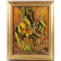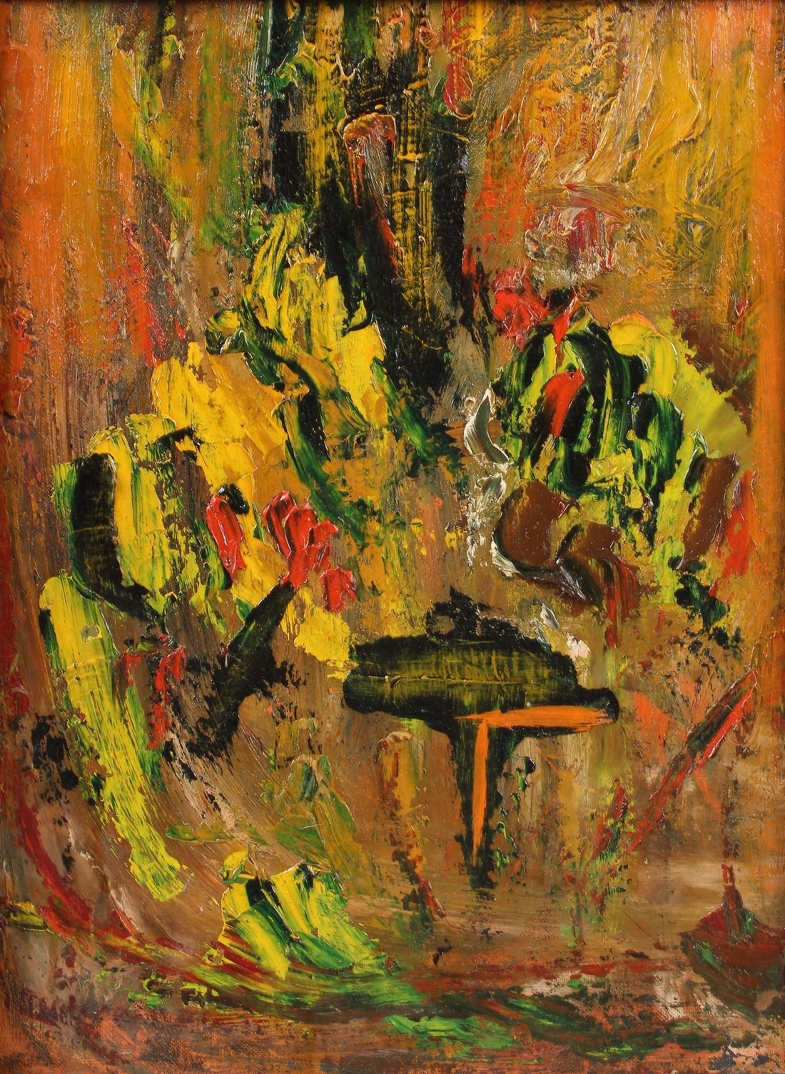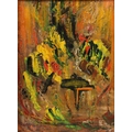POSSIBLY SOUTH EAST ASIAN SCHOOL (20TH CENTURY) Abstract in hot colours oil on canvas board 41 x 31cm