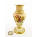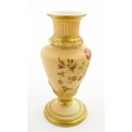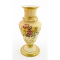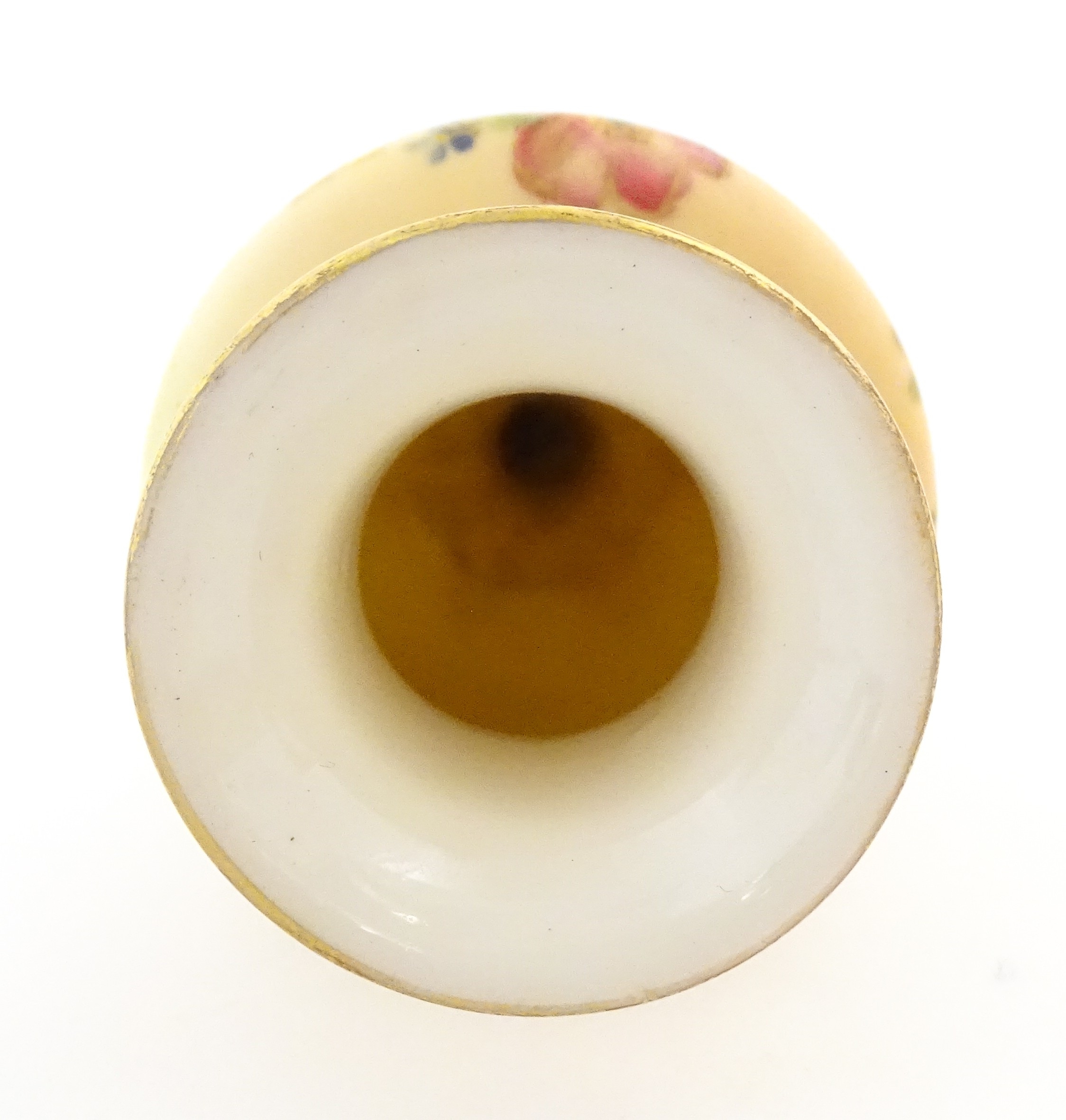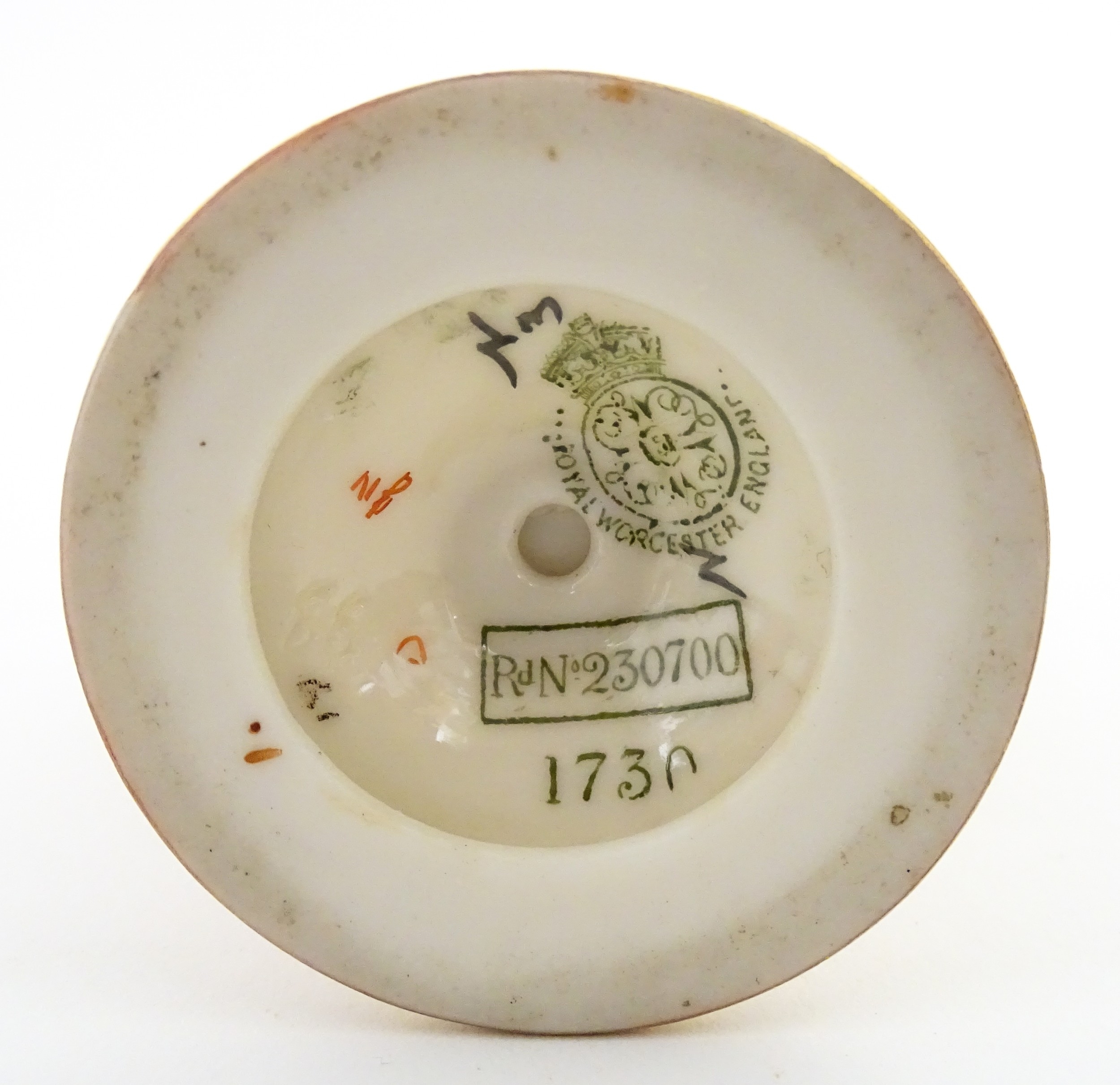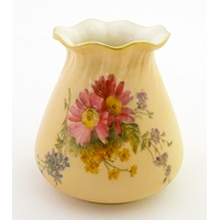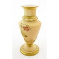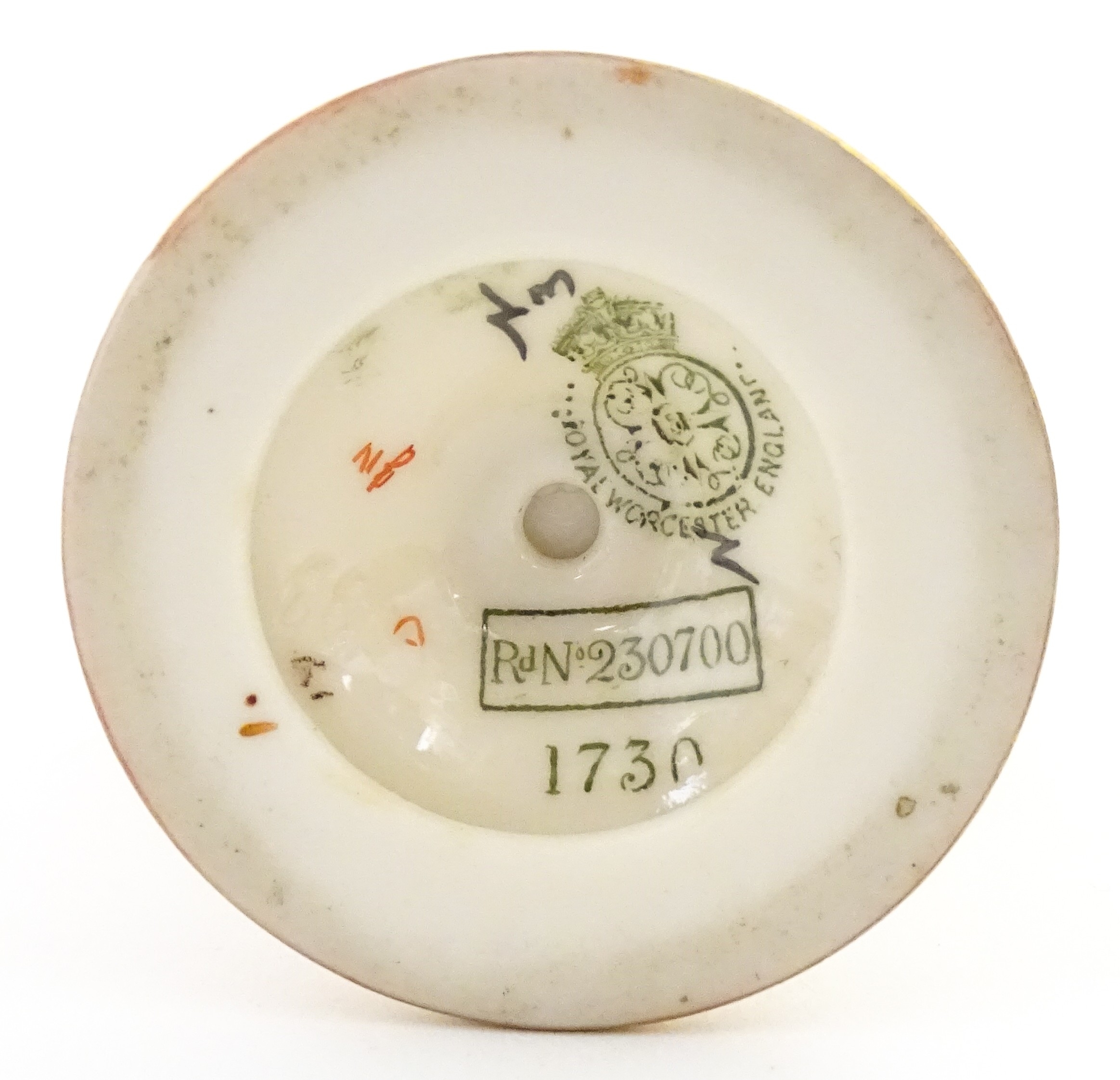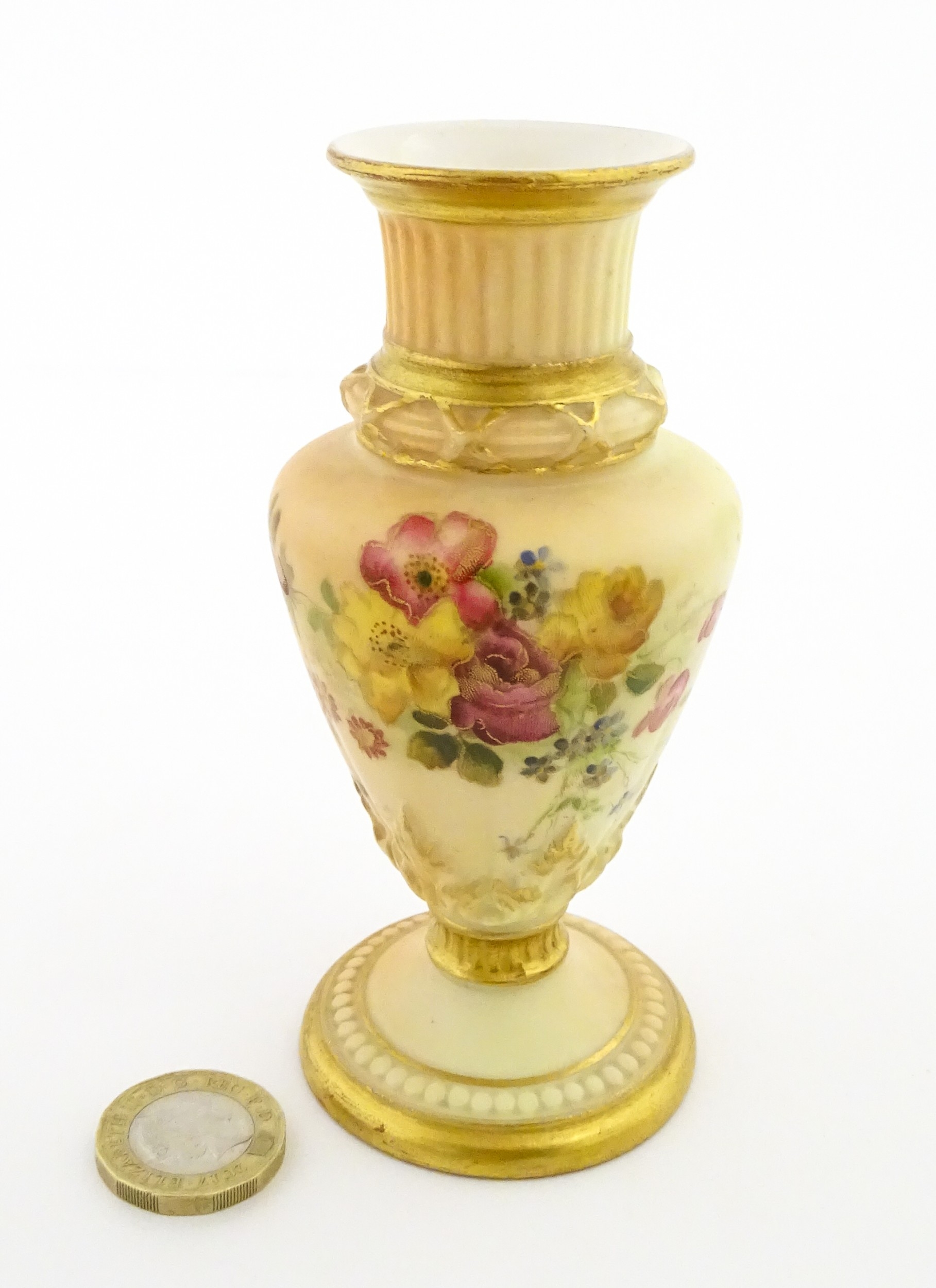 A Royal Worcester blush ivory pedestal vase decorated with flowers and foliage. Marked under 1730 with registered design no. 230700. Approx. 4 3/4" high