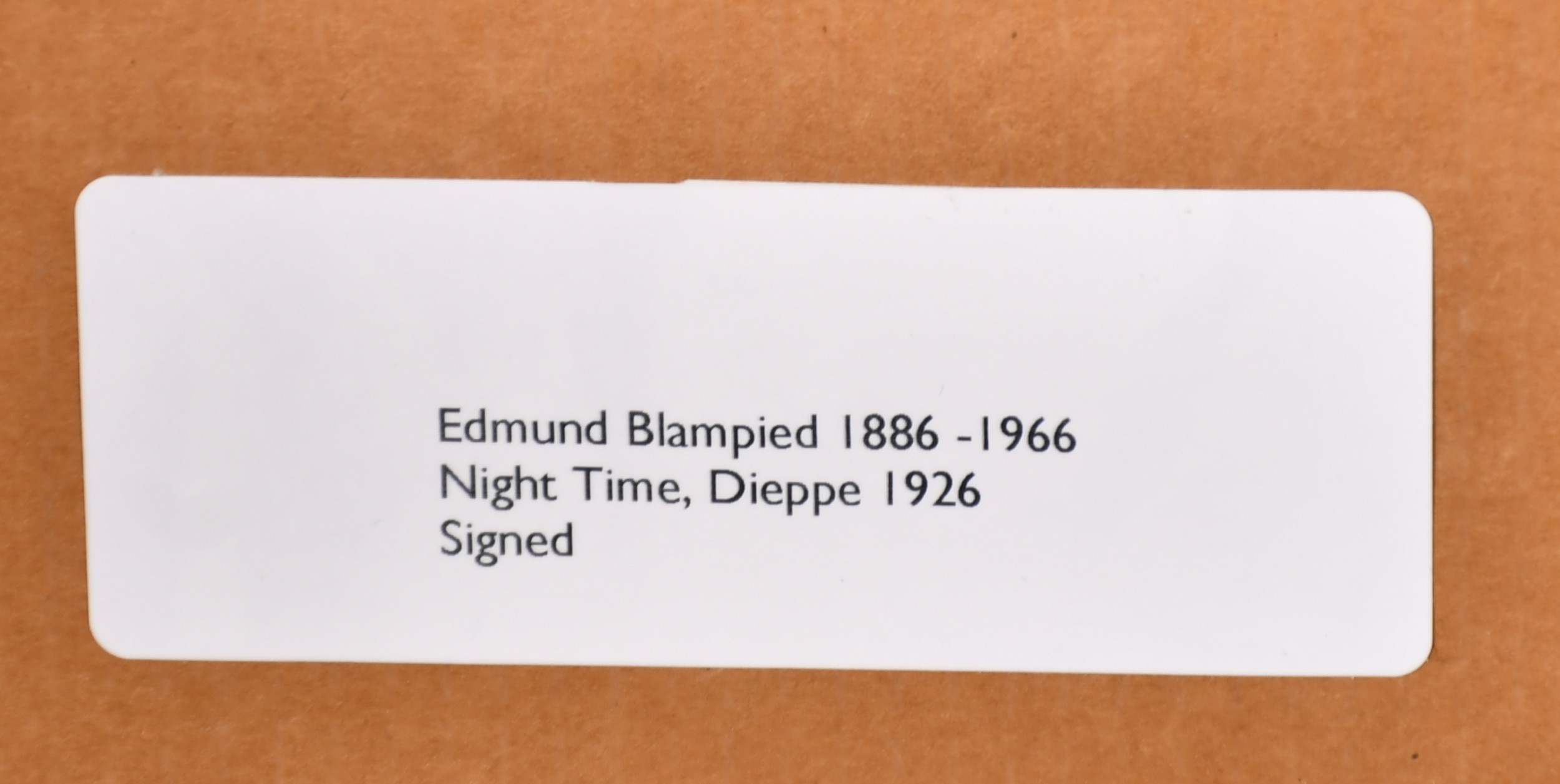 Edmund Blampied (1886-1966) British. "Night Time, Dieppe", Etching, Signed in pencil and inscribed with 'f', 7.75" x 11" (19.7 x 27.9cm)