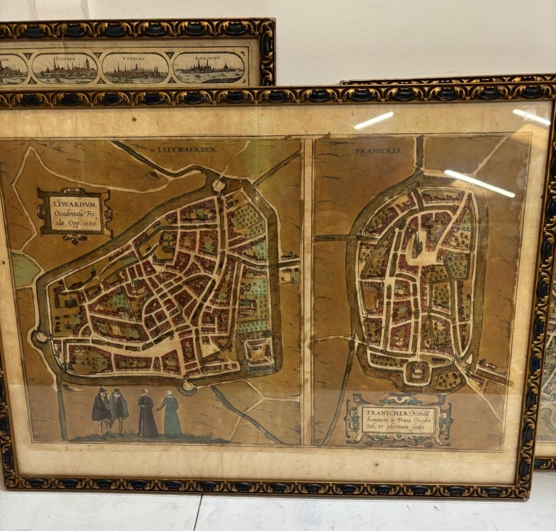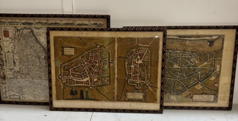 Two vintage mats of European cities together with a map of the German Ocean