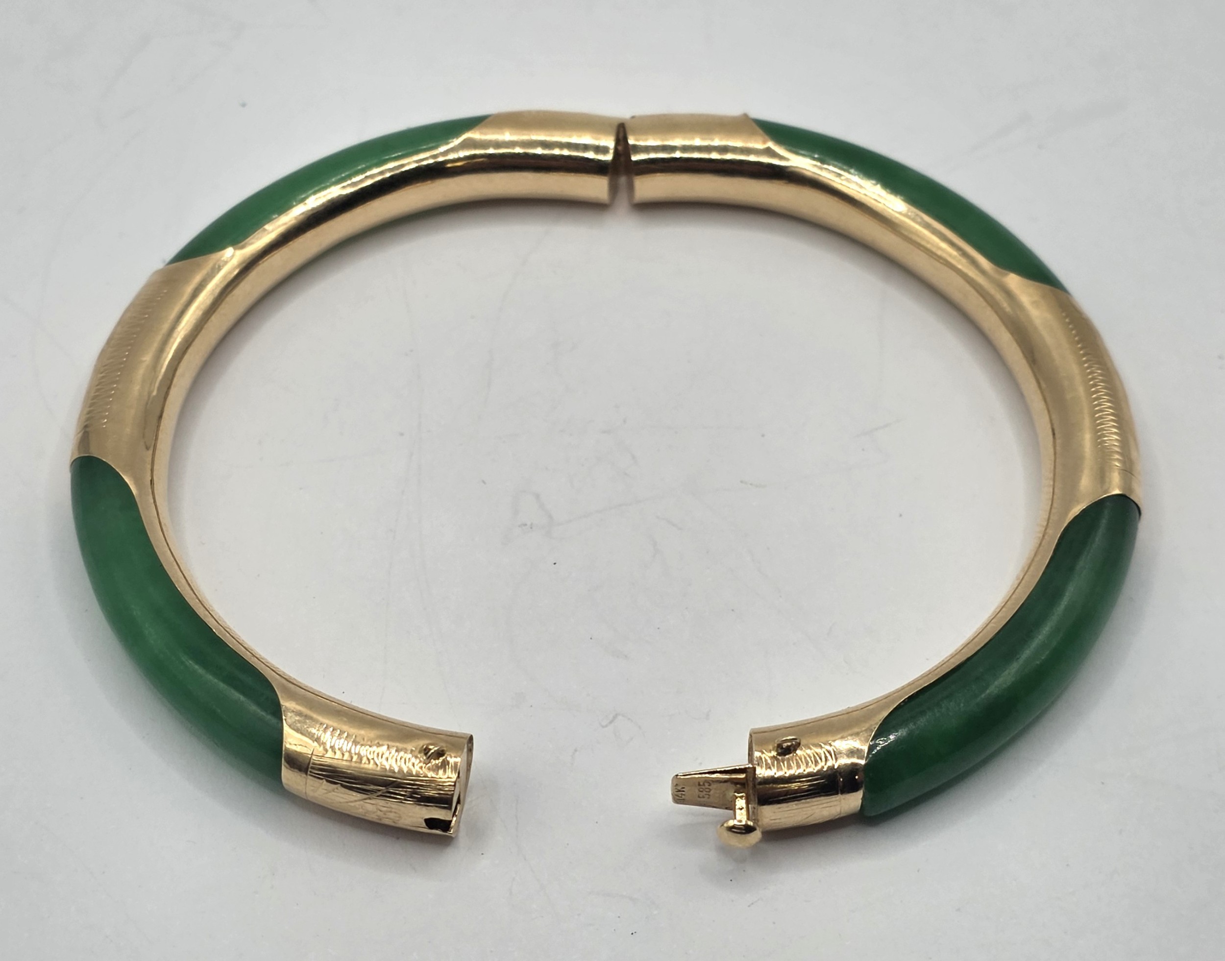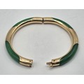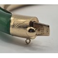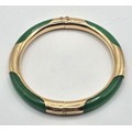 A Chinese 14ct gold and jade bangle, 7 cm diameter