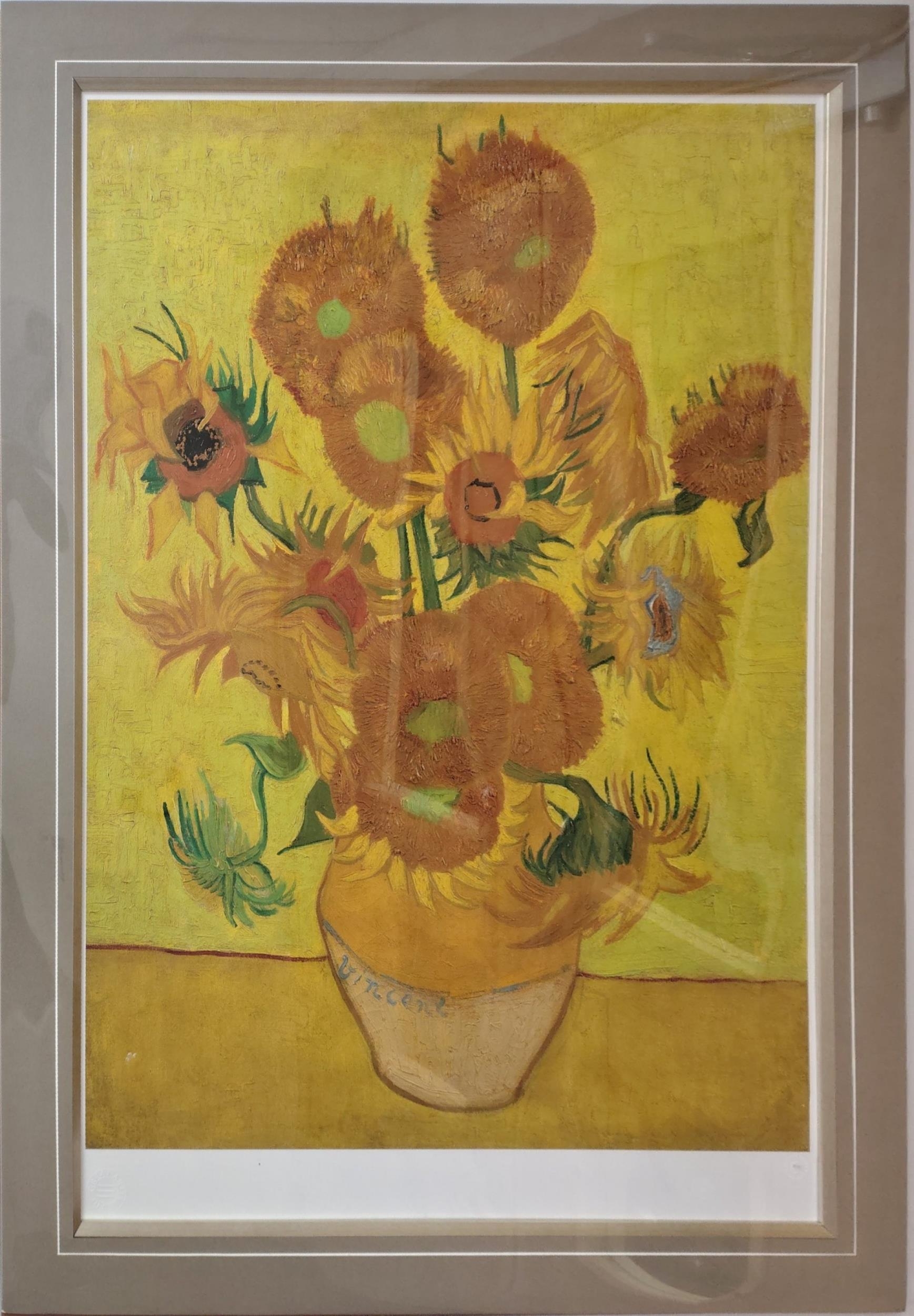 Top Quality mounted and framed VAN GOGH. 'SUNFLOWERS 1889' GOUTTELETTE Ltd edition print No 8/75 with numbered and signed certificate of authenticity by the master printer - artwork dimensions 36" height x 26" width approx