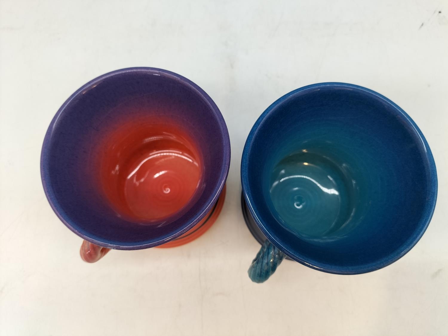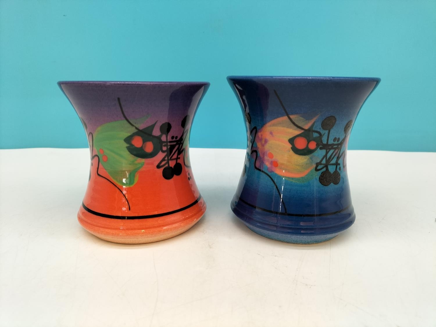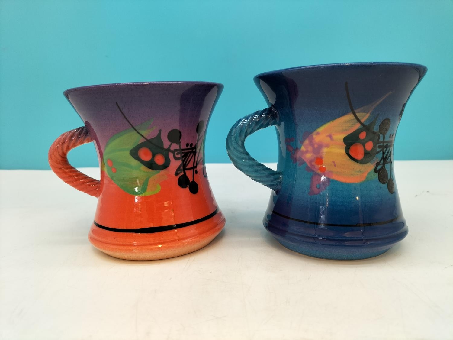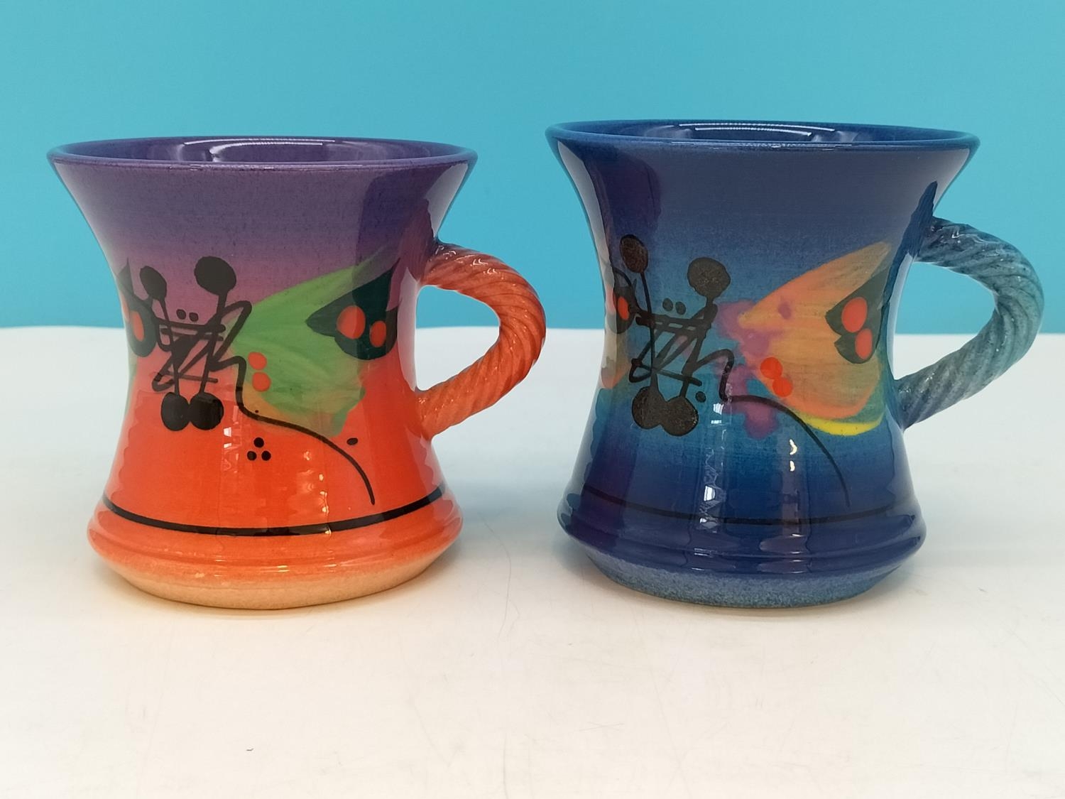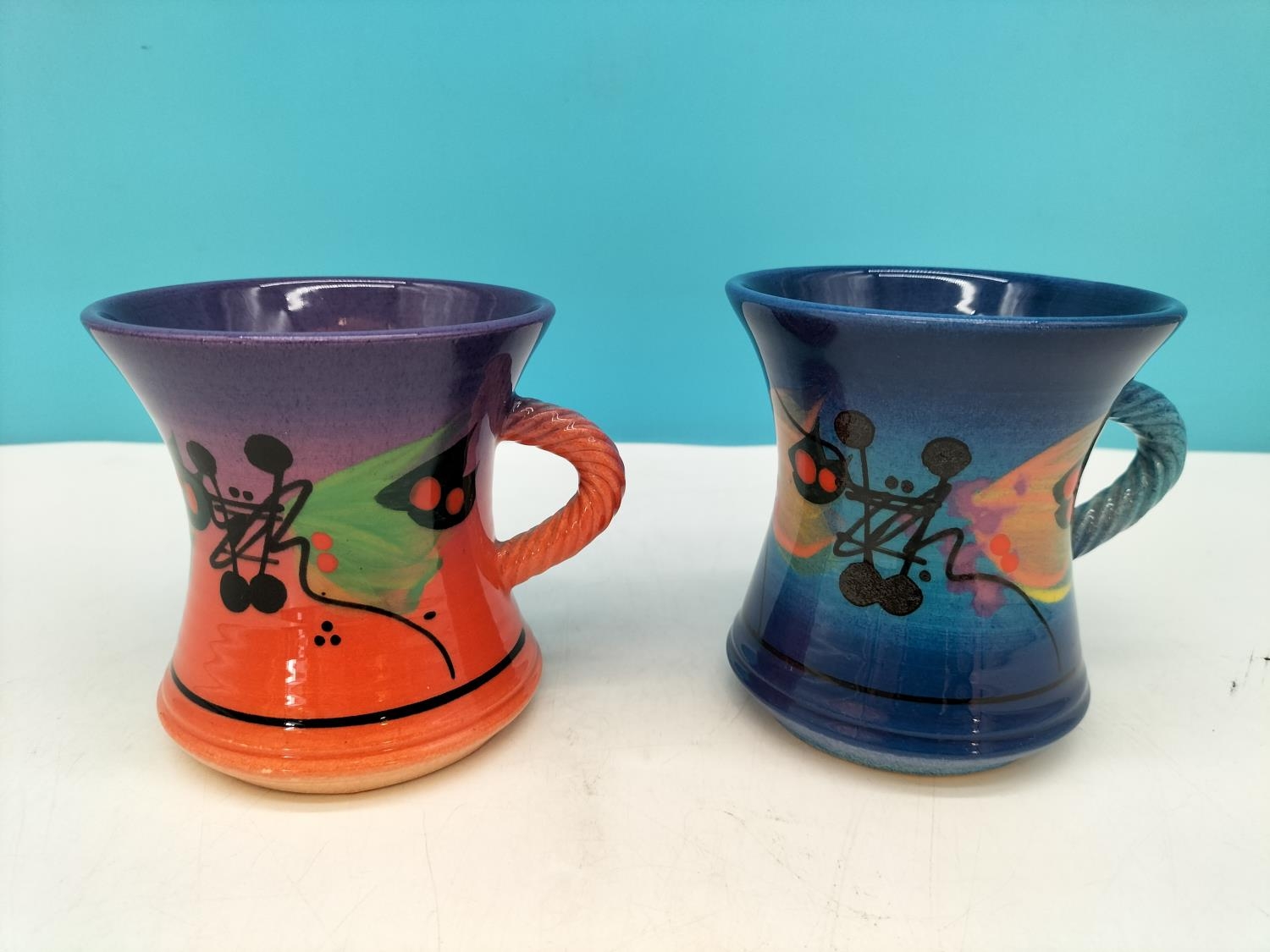 Richard Godfrey Studio Pottery Abstract 10cm Mugs. One Signed to Base.