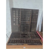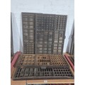 Five wooden printer's trays with compartments
