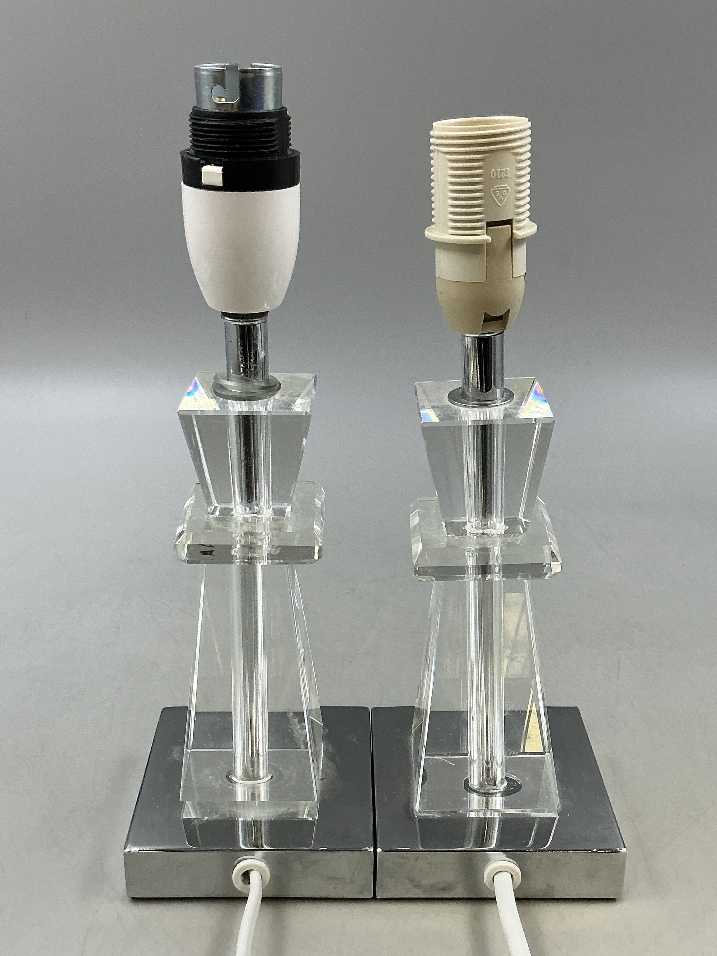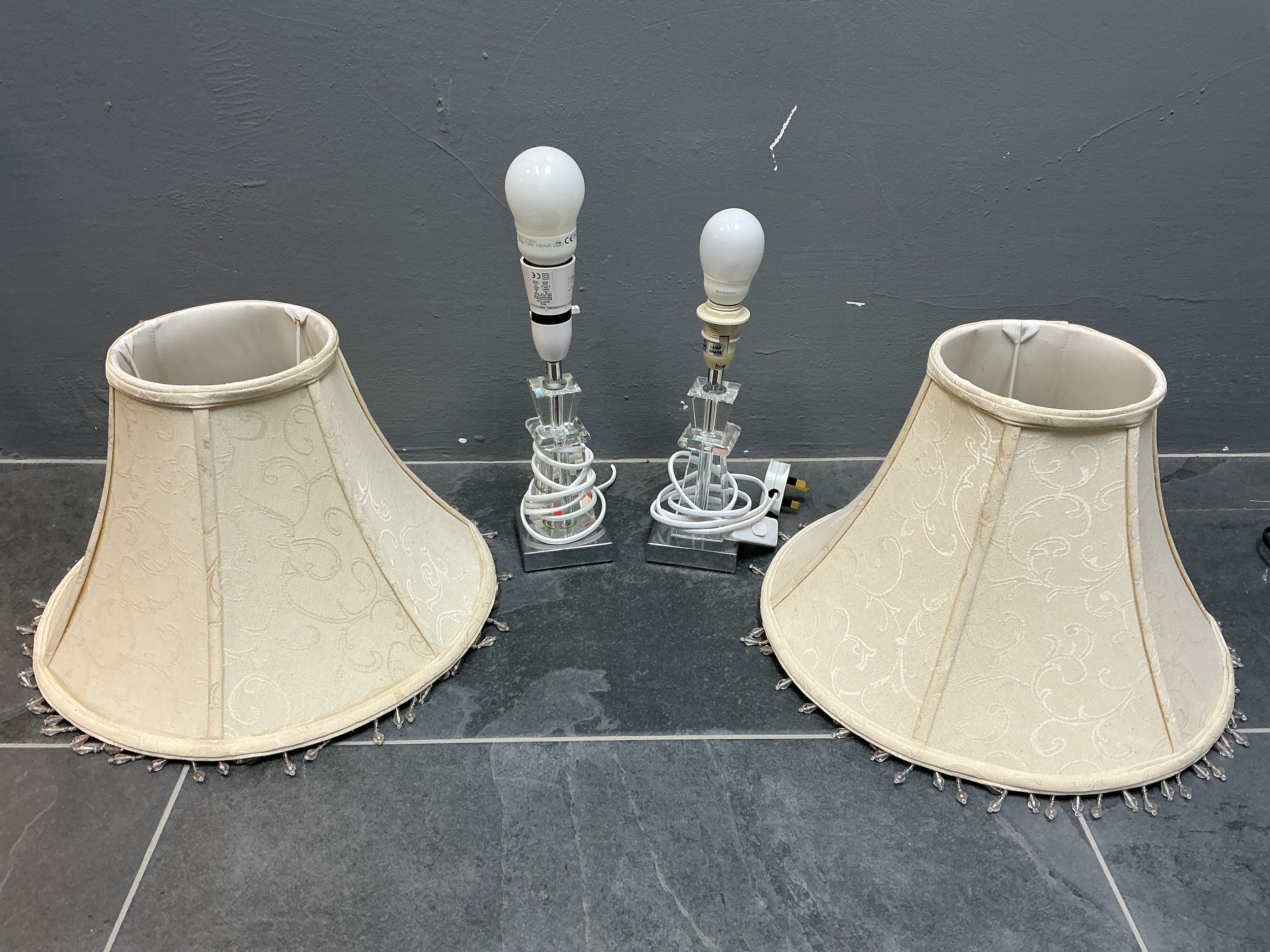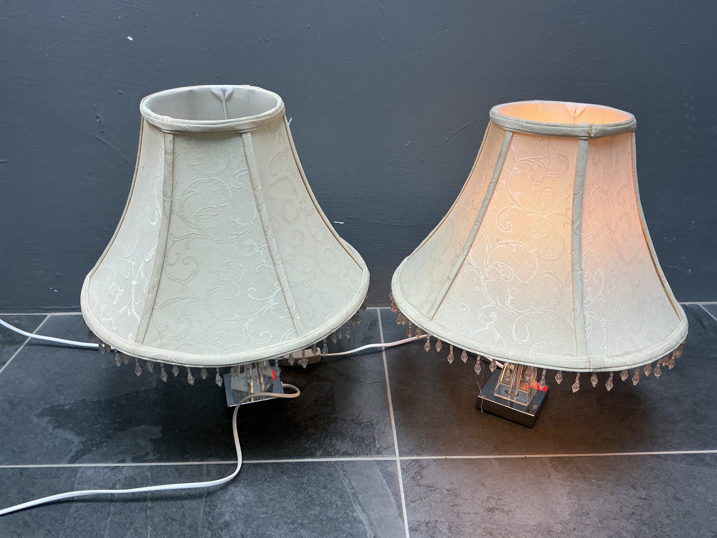 Pair of matching Crystal Stemmed Side Lamps with matching shades