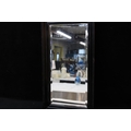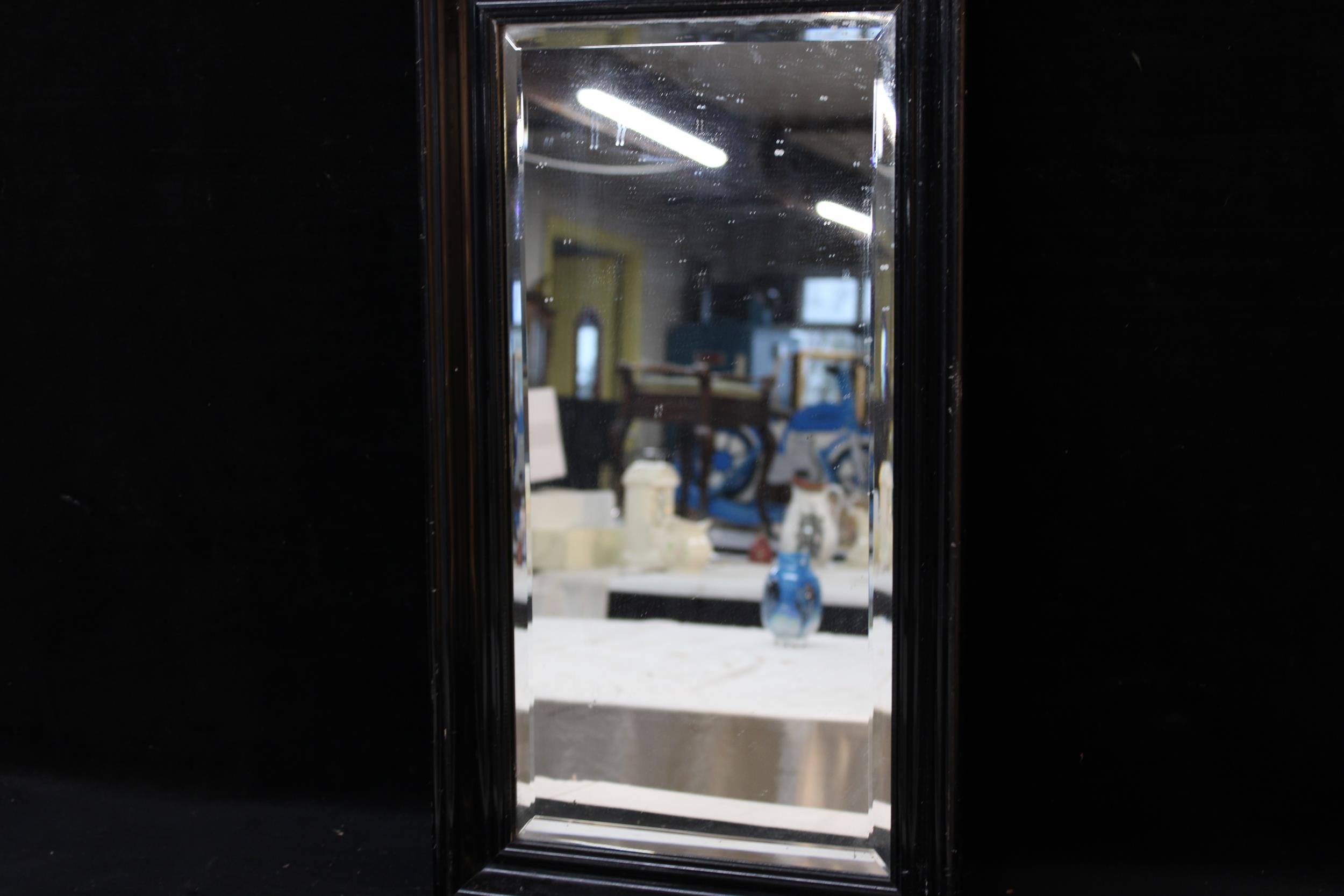 A framed bevelled edged mirror 65cm X 36cm