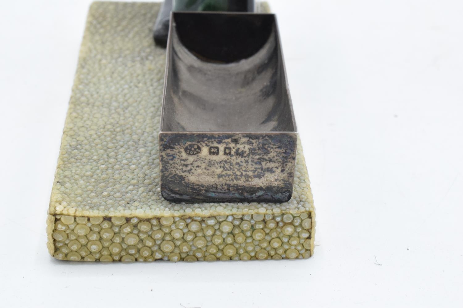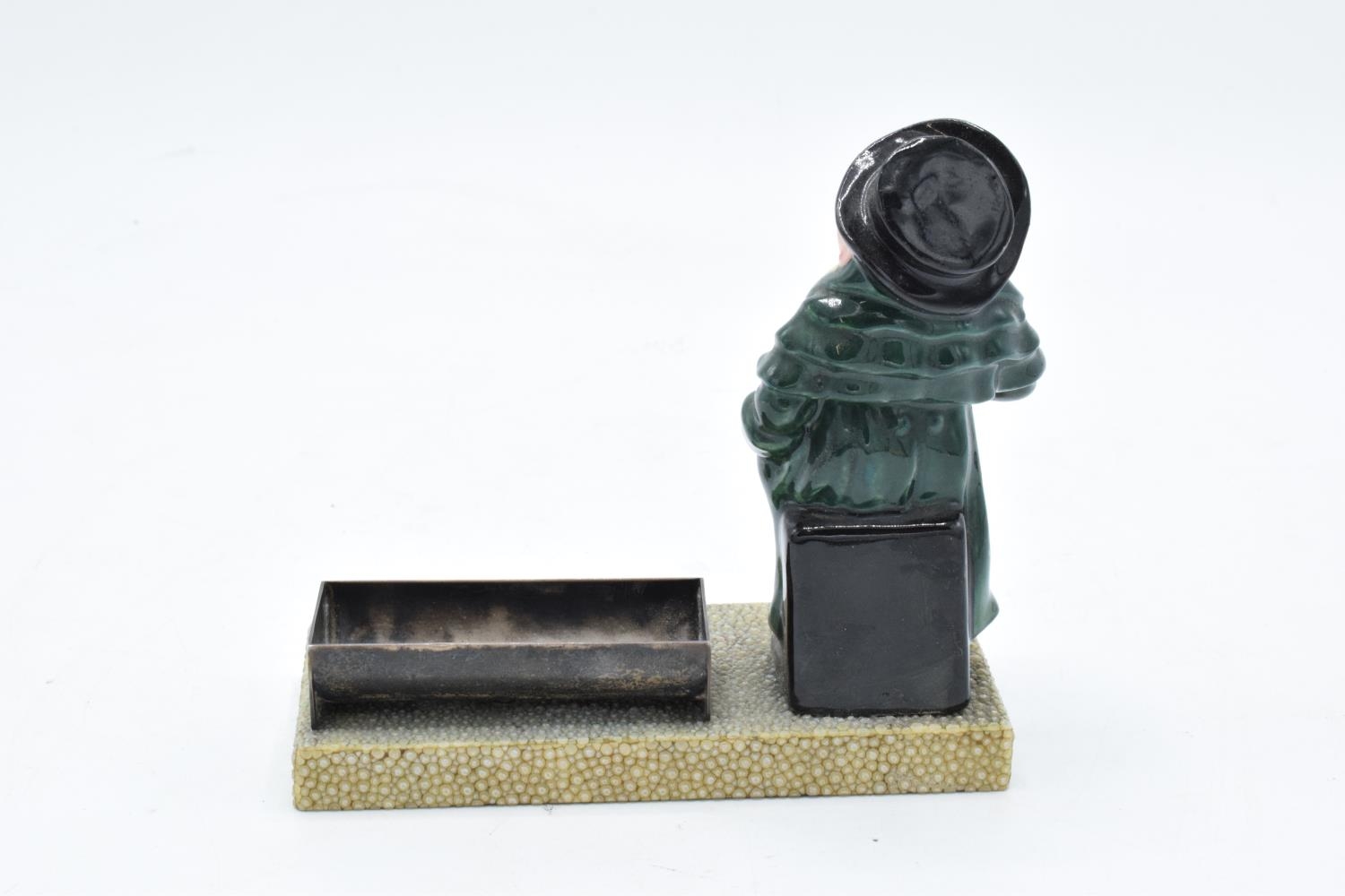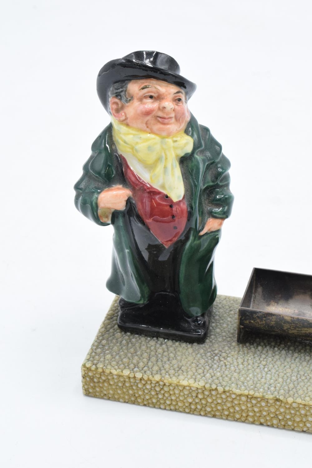 Royal Doulton Dickens figure Tony Weller set on a base with a hallmarked silver trough/ desk tidy. In good condition with no obvious damage or restoration. 12cm long.