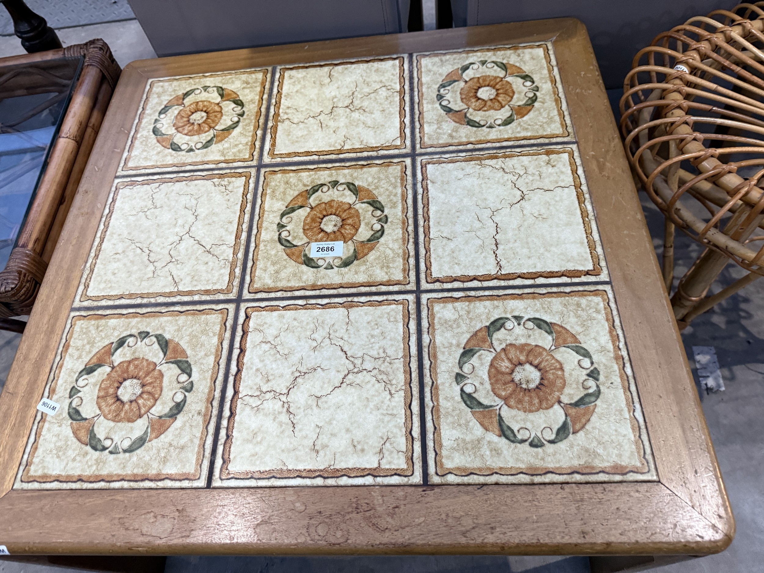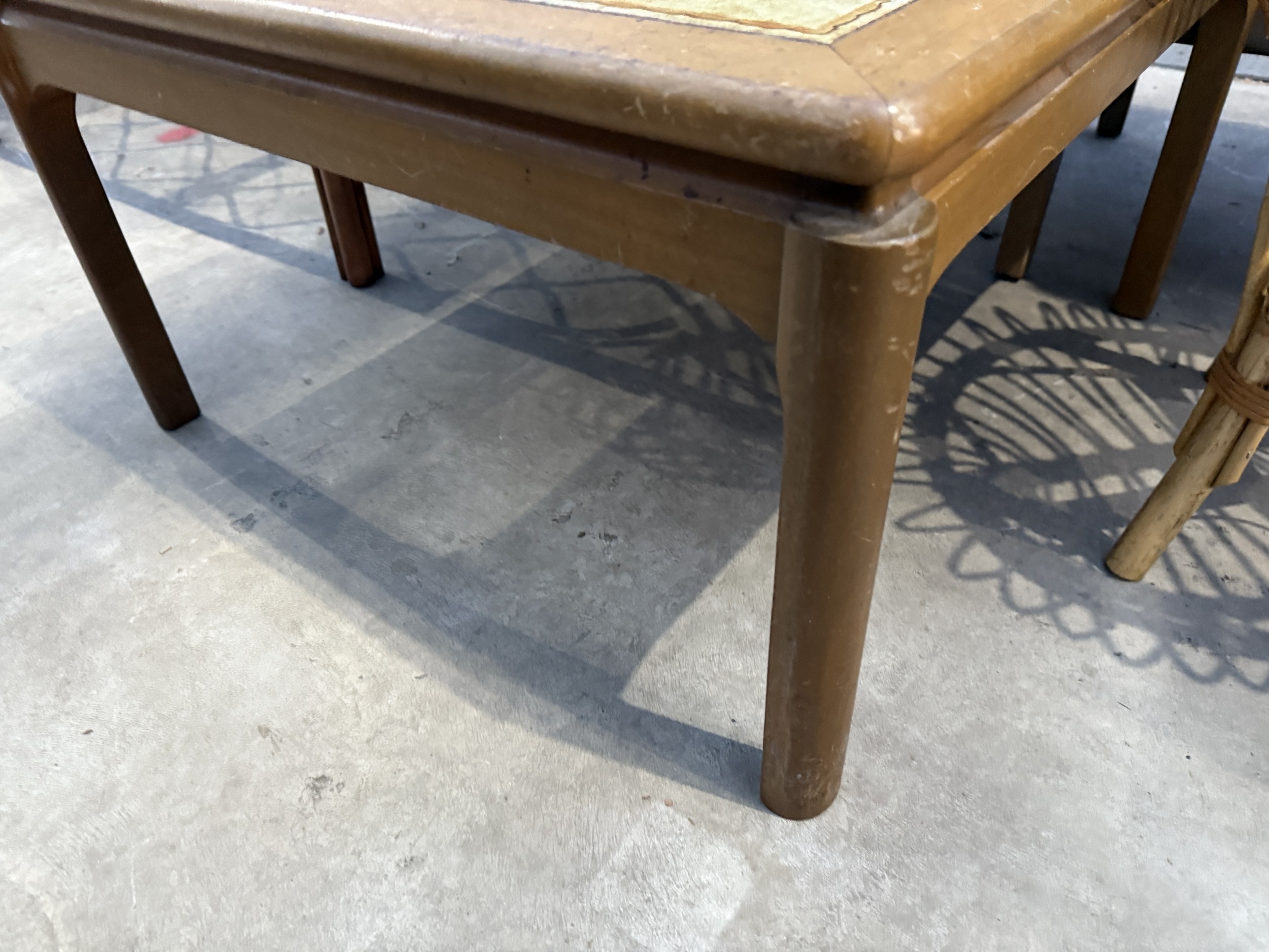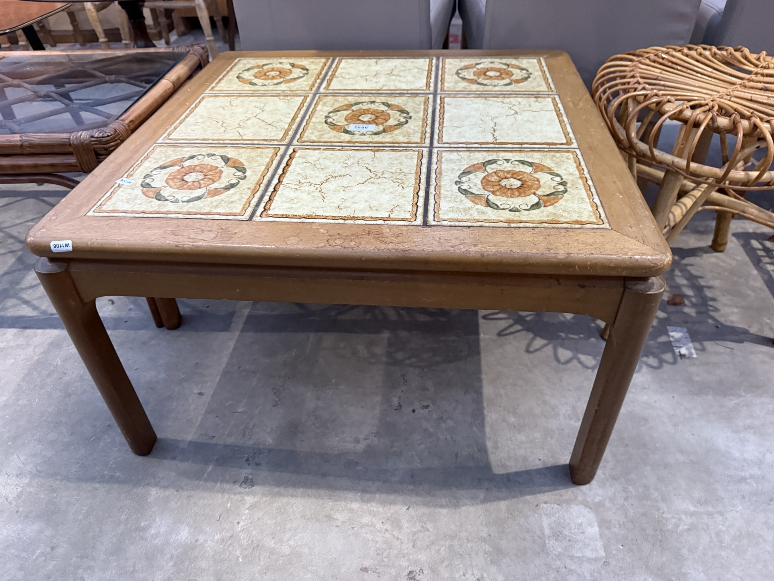 A RETRO TEAK COFFEE TABLE WITH TILED TOP, 28" SQUARE