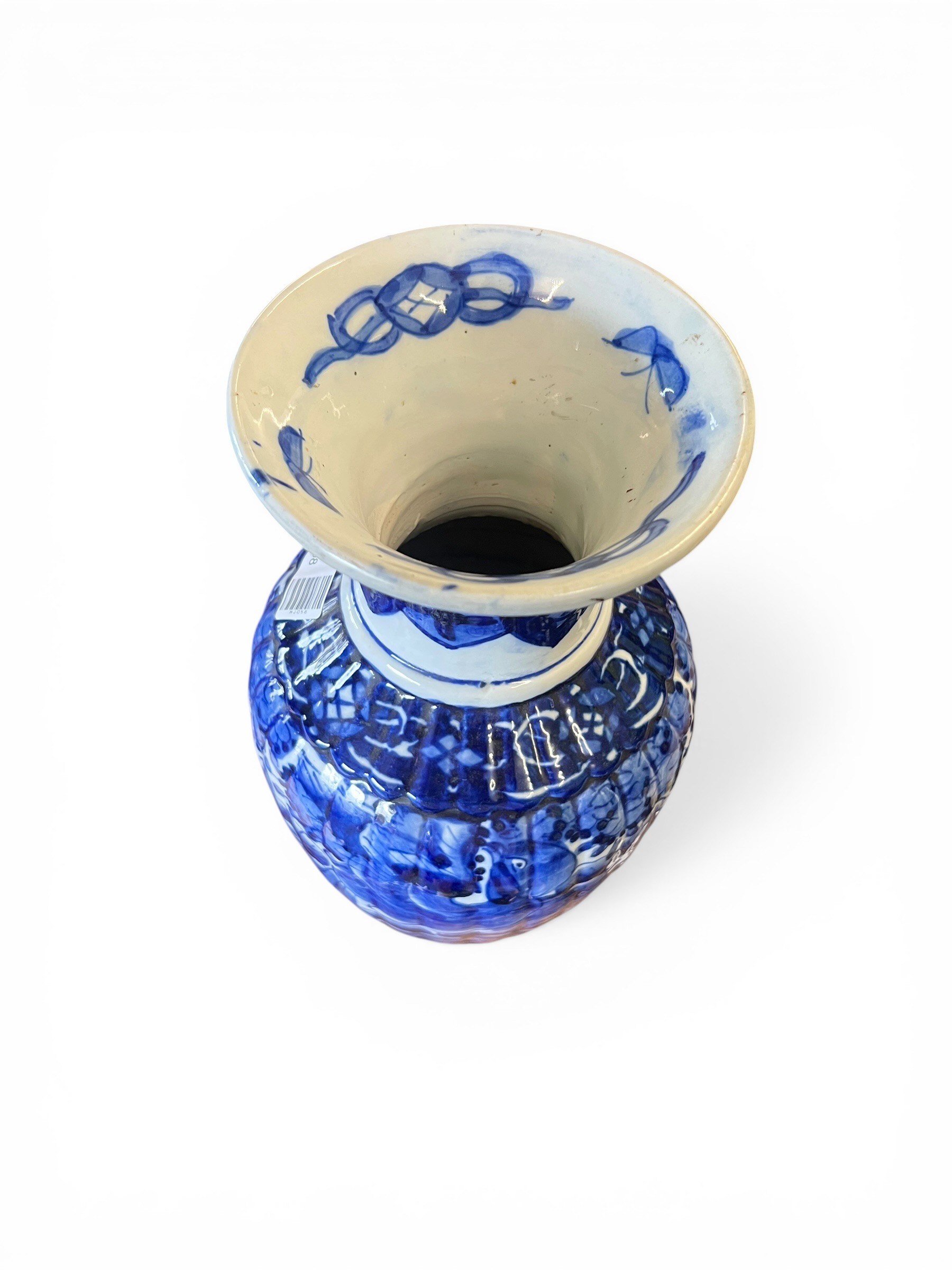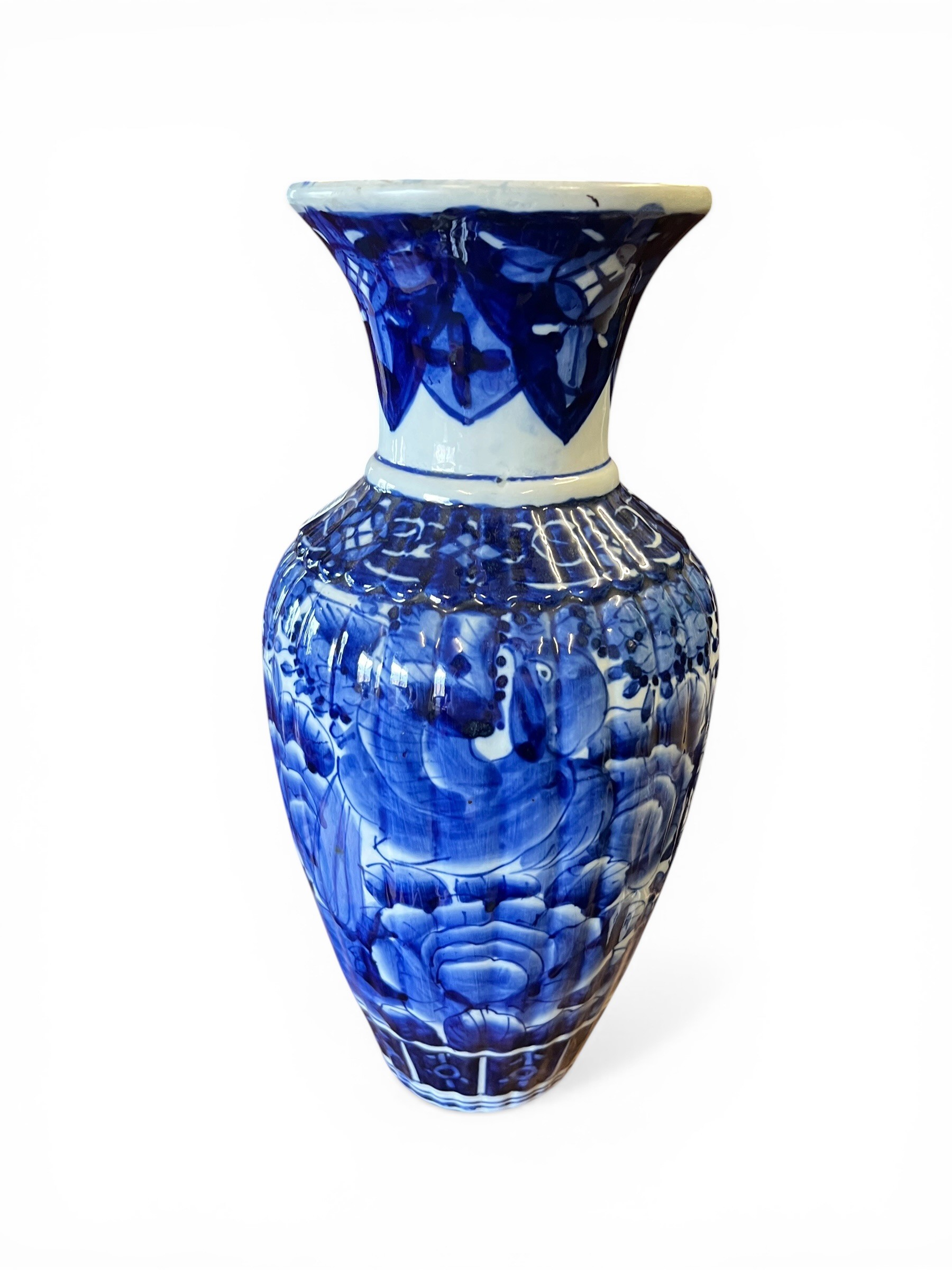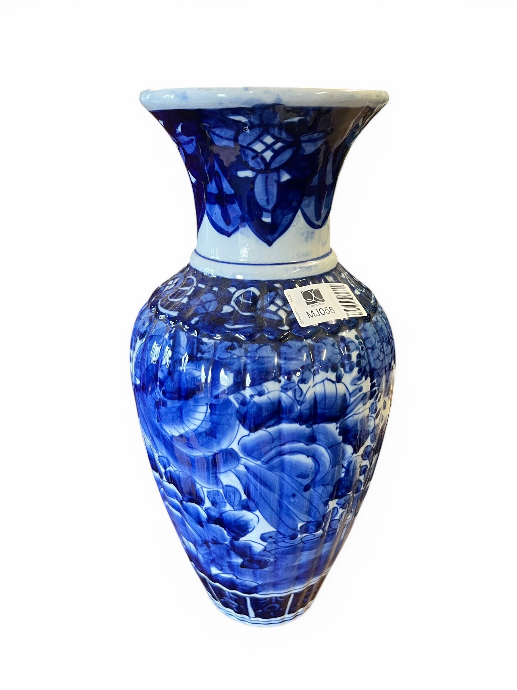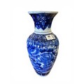 Blue and White Oriental-Style Vase - 38 cm x 18 cm