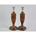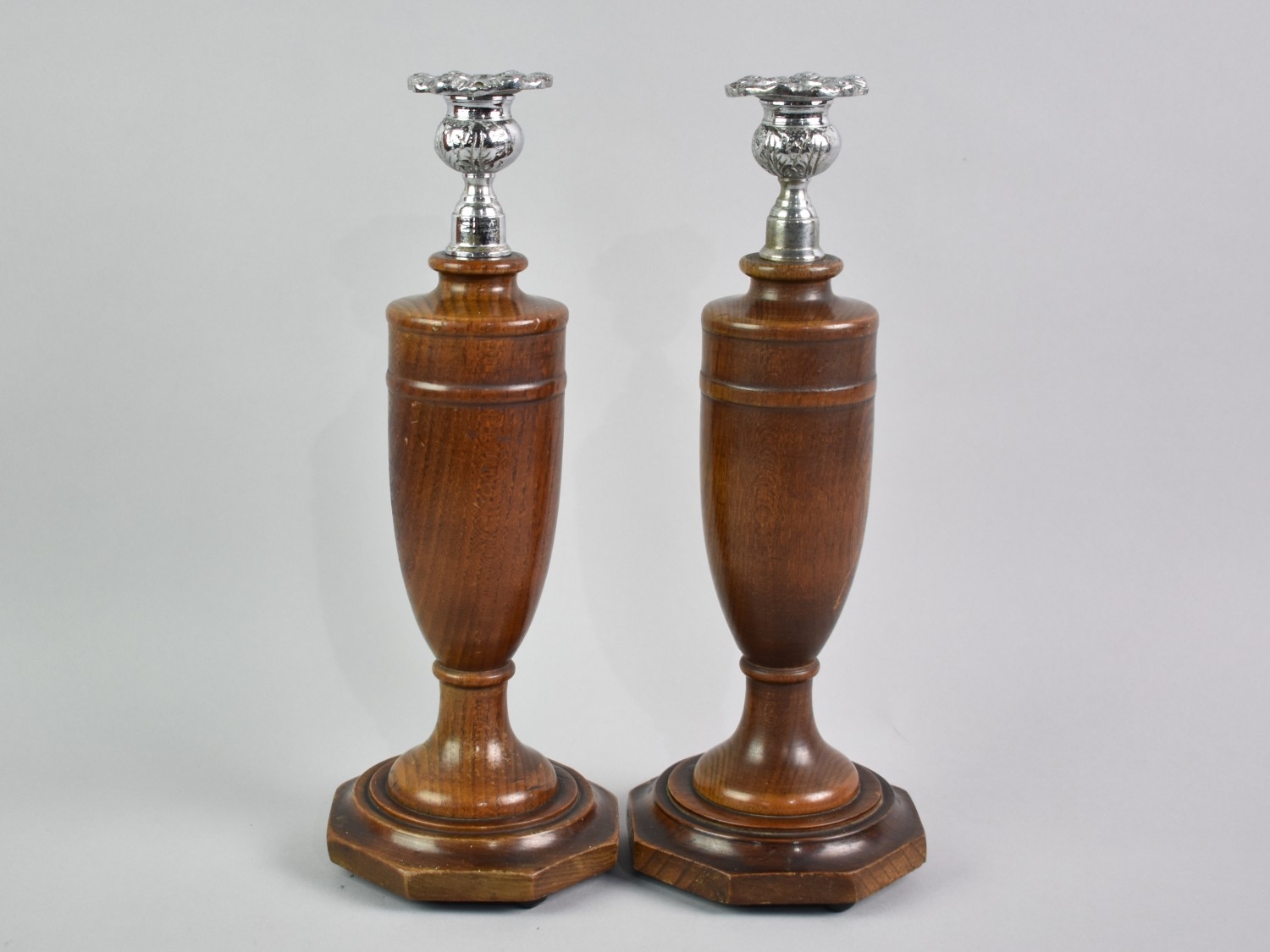 A Pair of Oak and Silver Plated Edwardian Vase Shaped Candlesticks, 30cms High