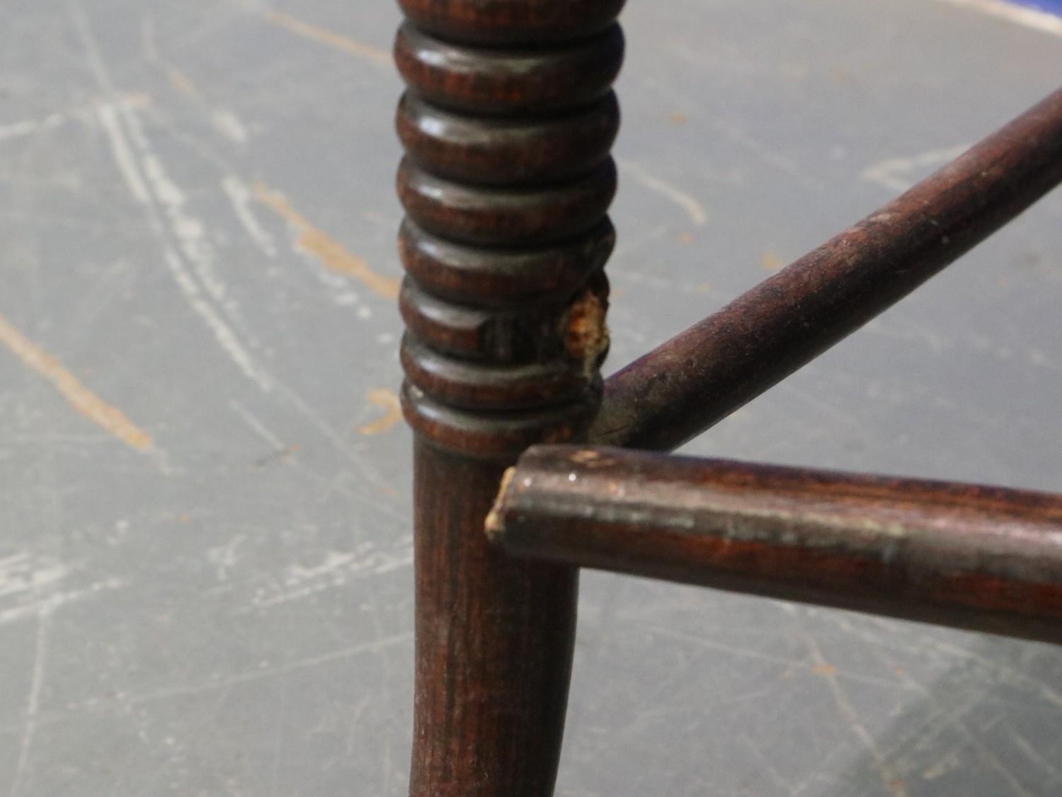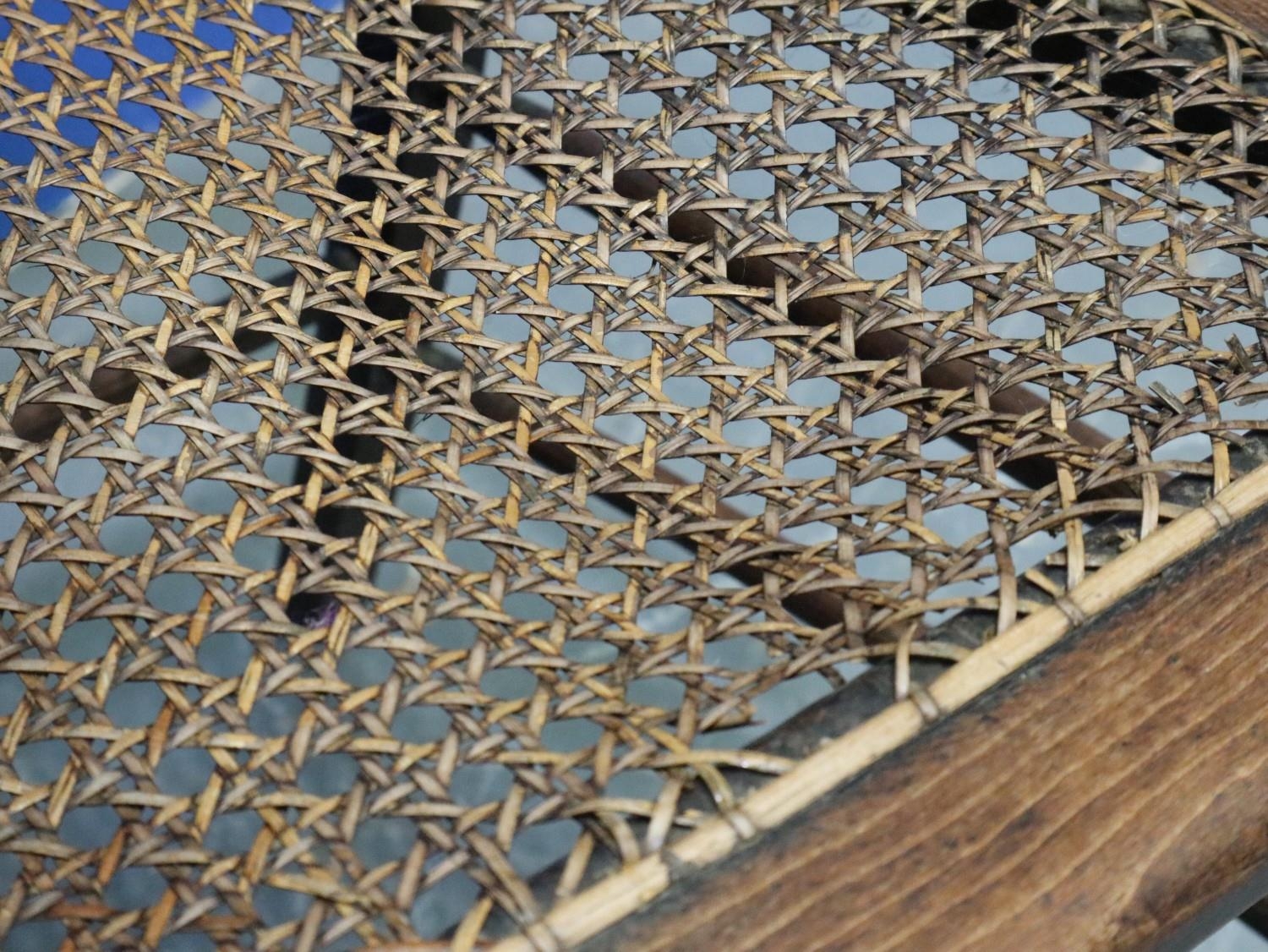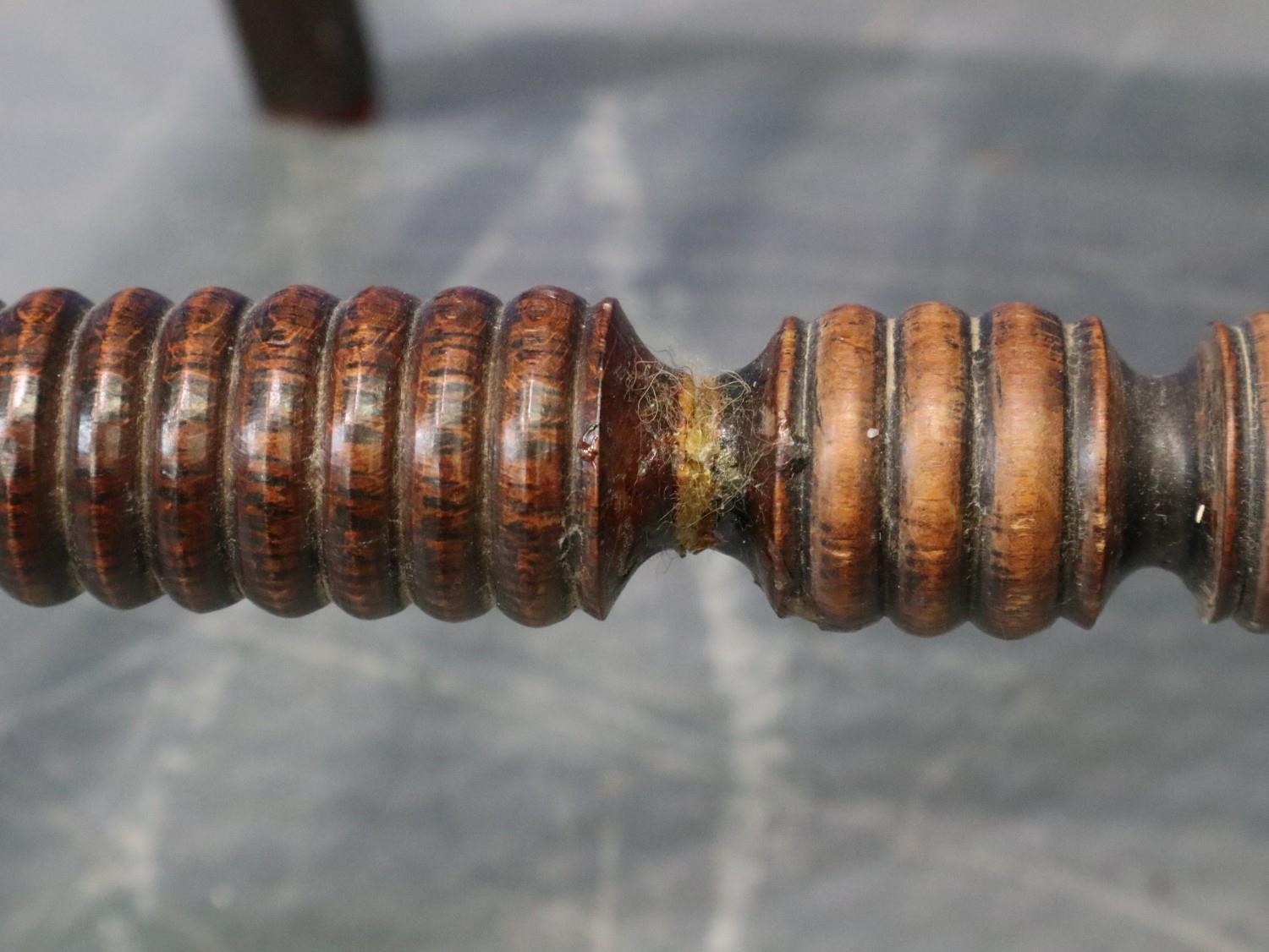A pair of Regency period rosewood elbow chairs, each having bergère seats, with turned supports and stretchers, both for restoration. Not available for in-house P&P