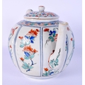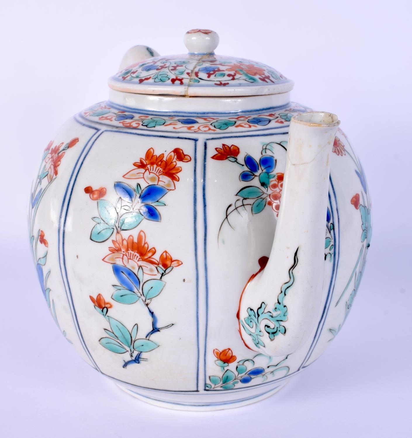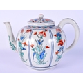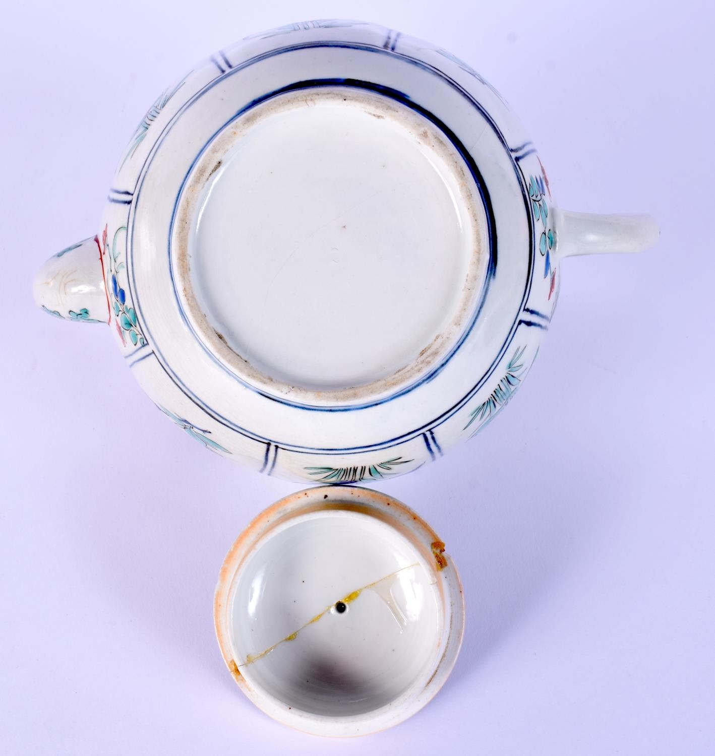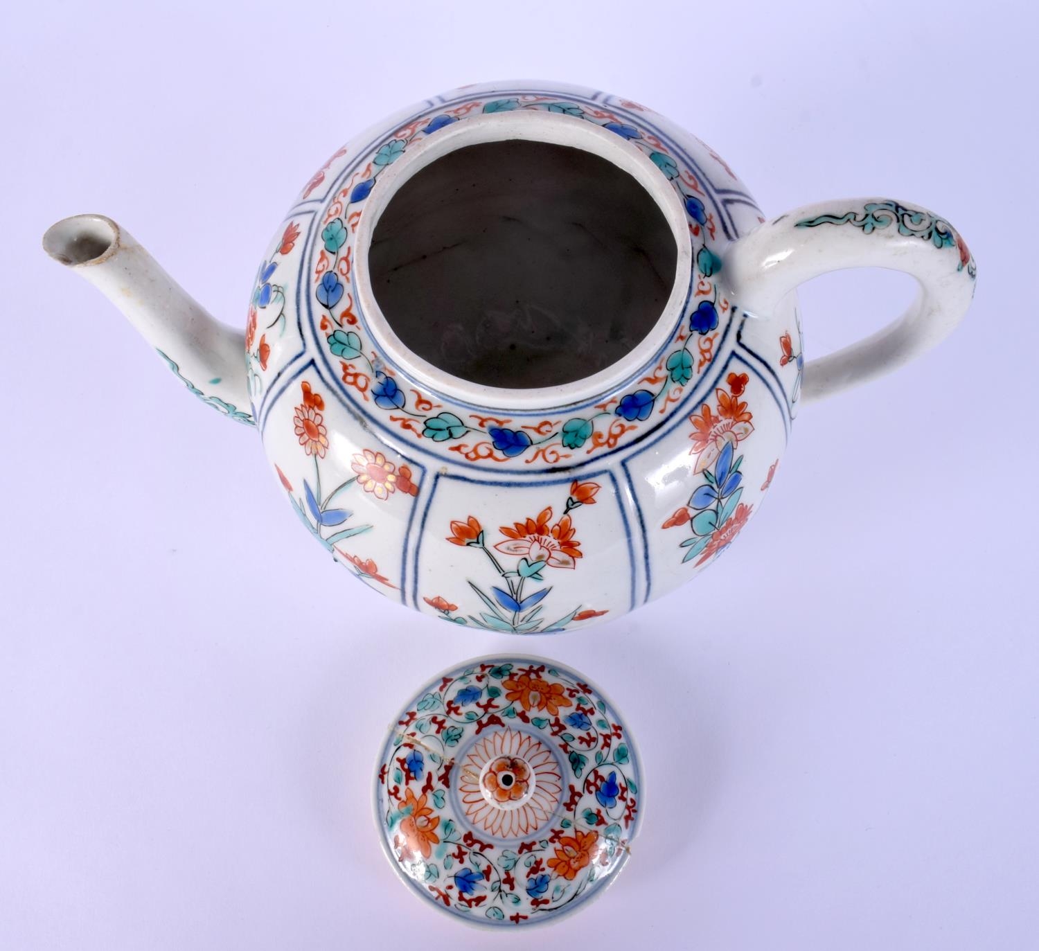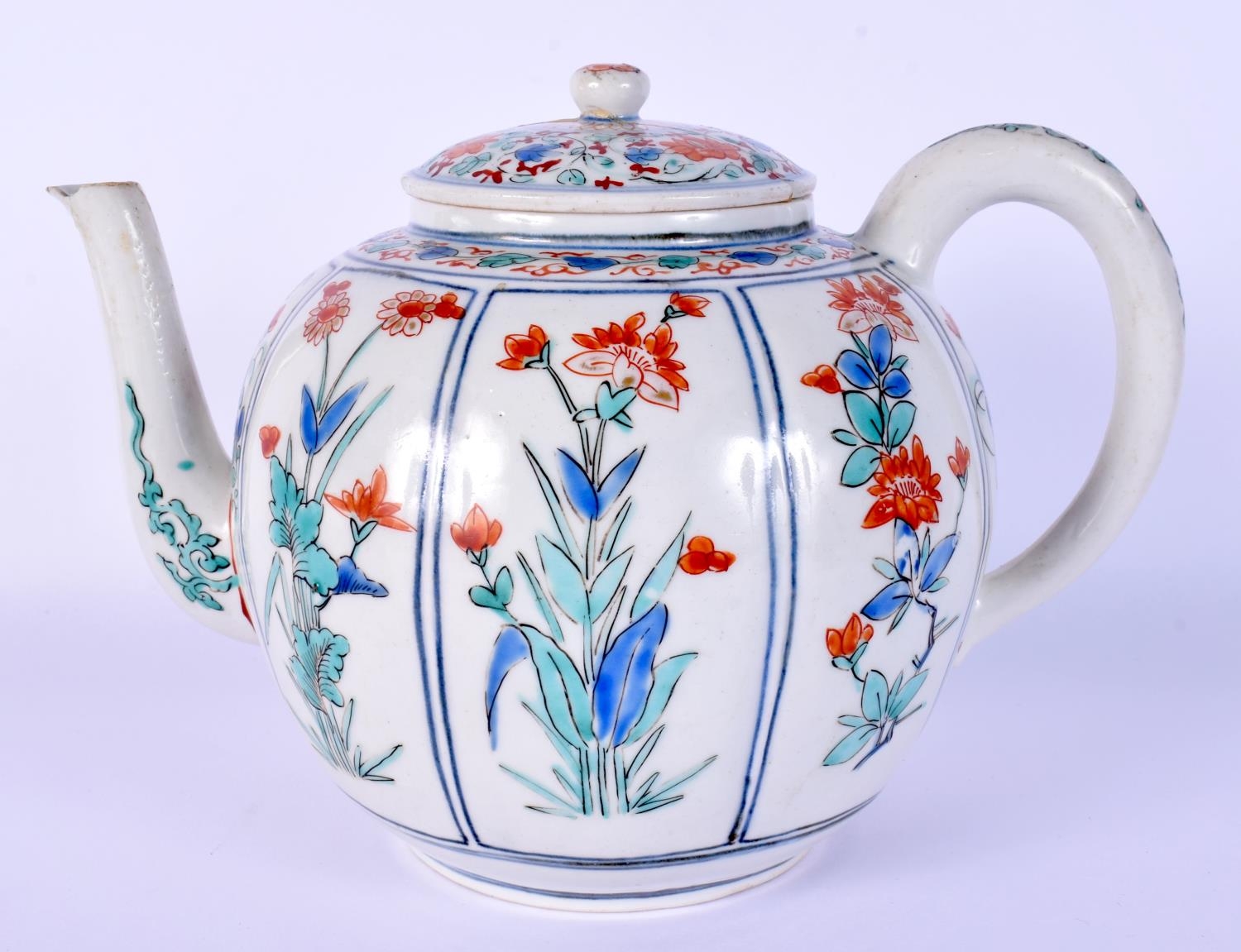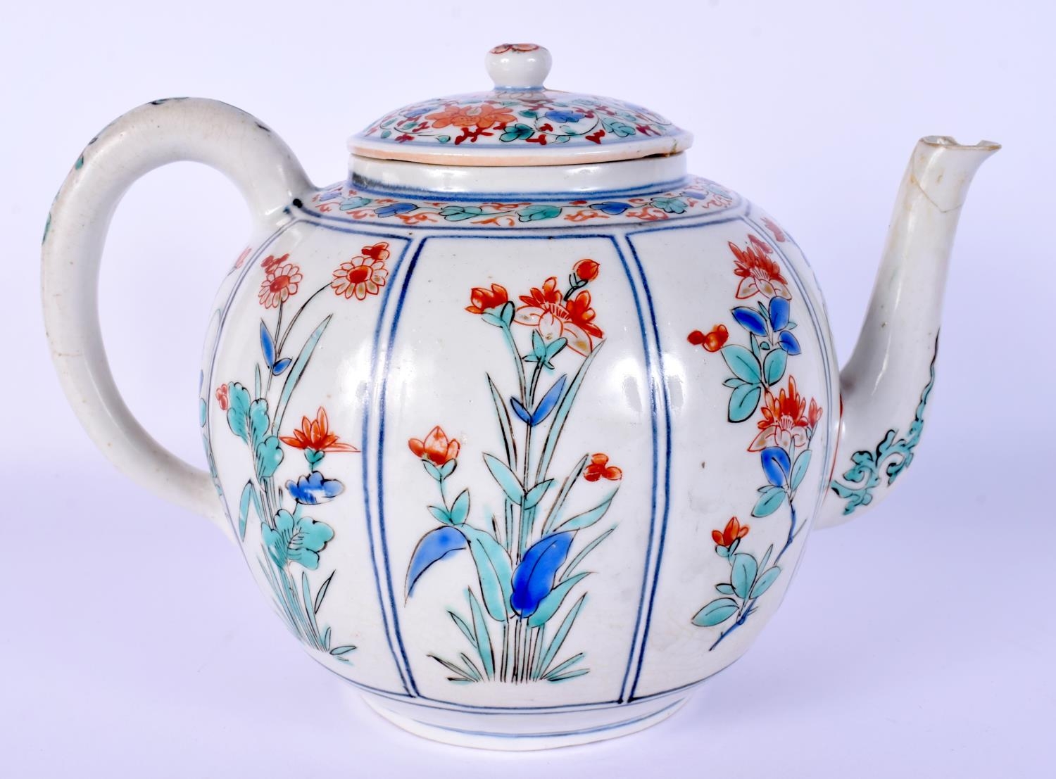 A LOVELY 17TH CENTURY JAPANESE EDO PERIOD KAKIEMON TEAPOT AND COVER painted with green karakusa and red flowers. 20 cm x 15 cm.