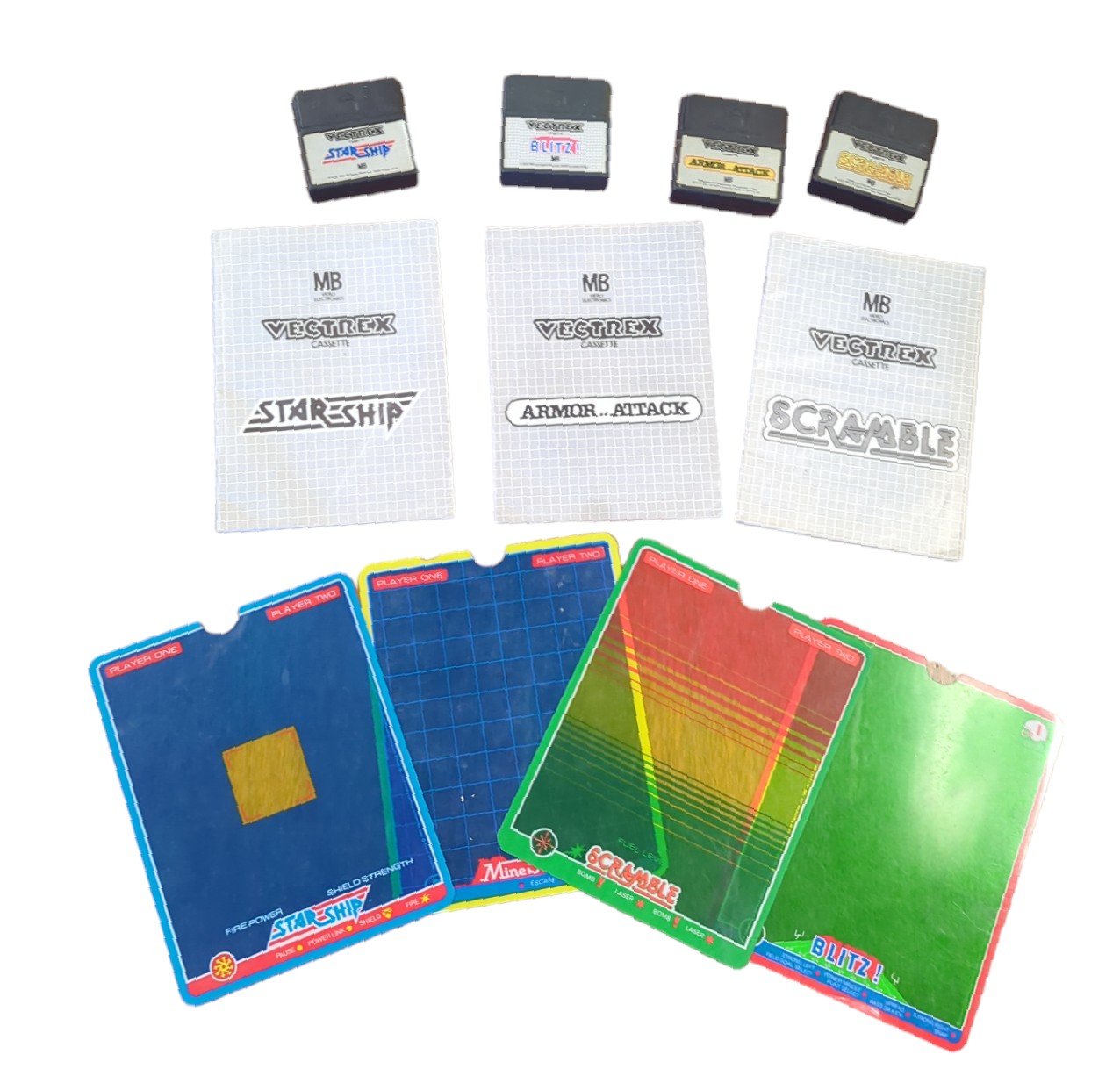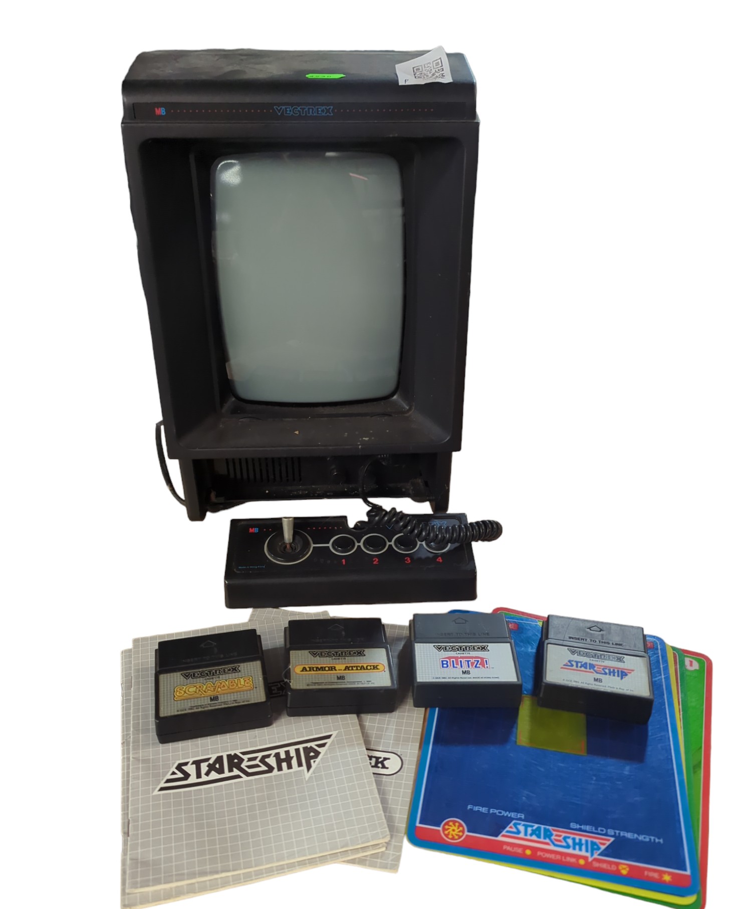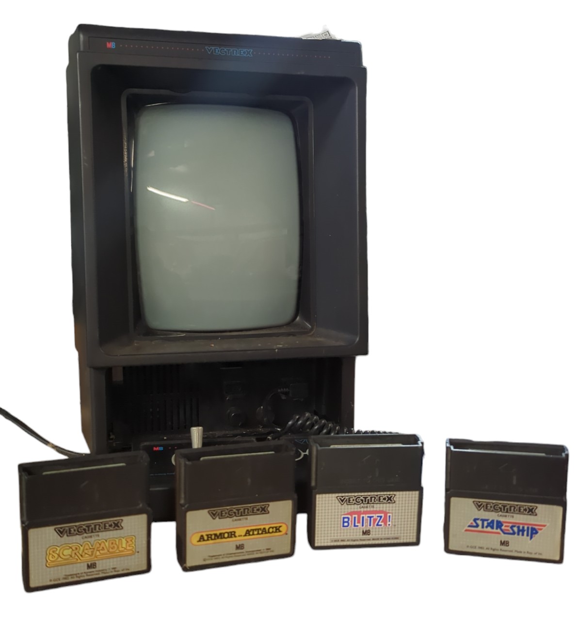 Vectrex model 3000 Retro game console. including 4 games BLITZ!, SCRAMBLE, ARMOR.. ATTACK. STAR SHIP