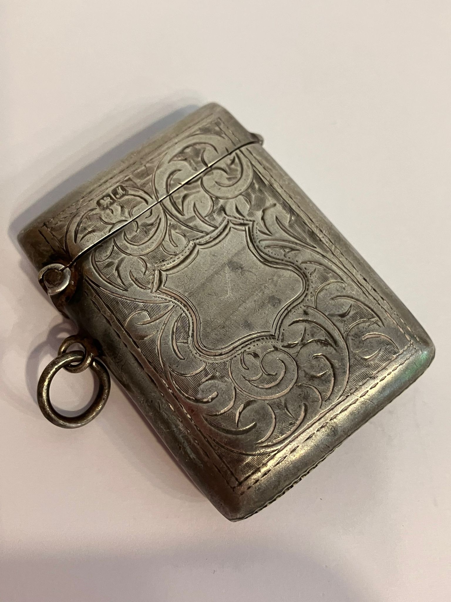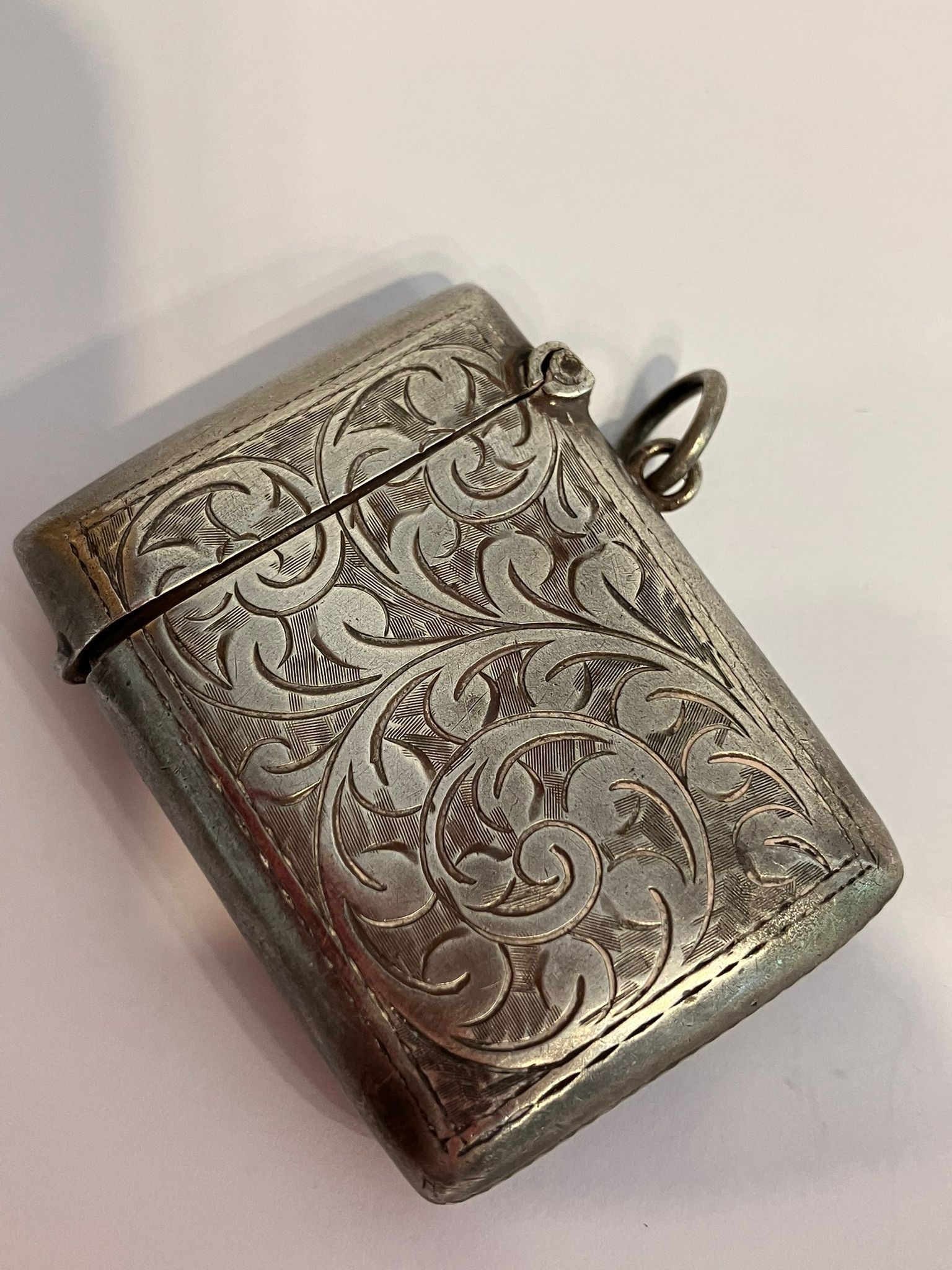 Antique SILVER VESTA . Clear Hallmark for W.J. Myatt, Cheste...