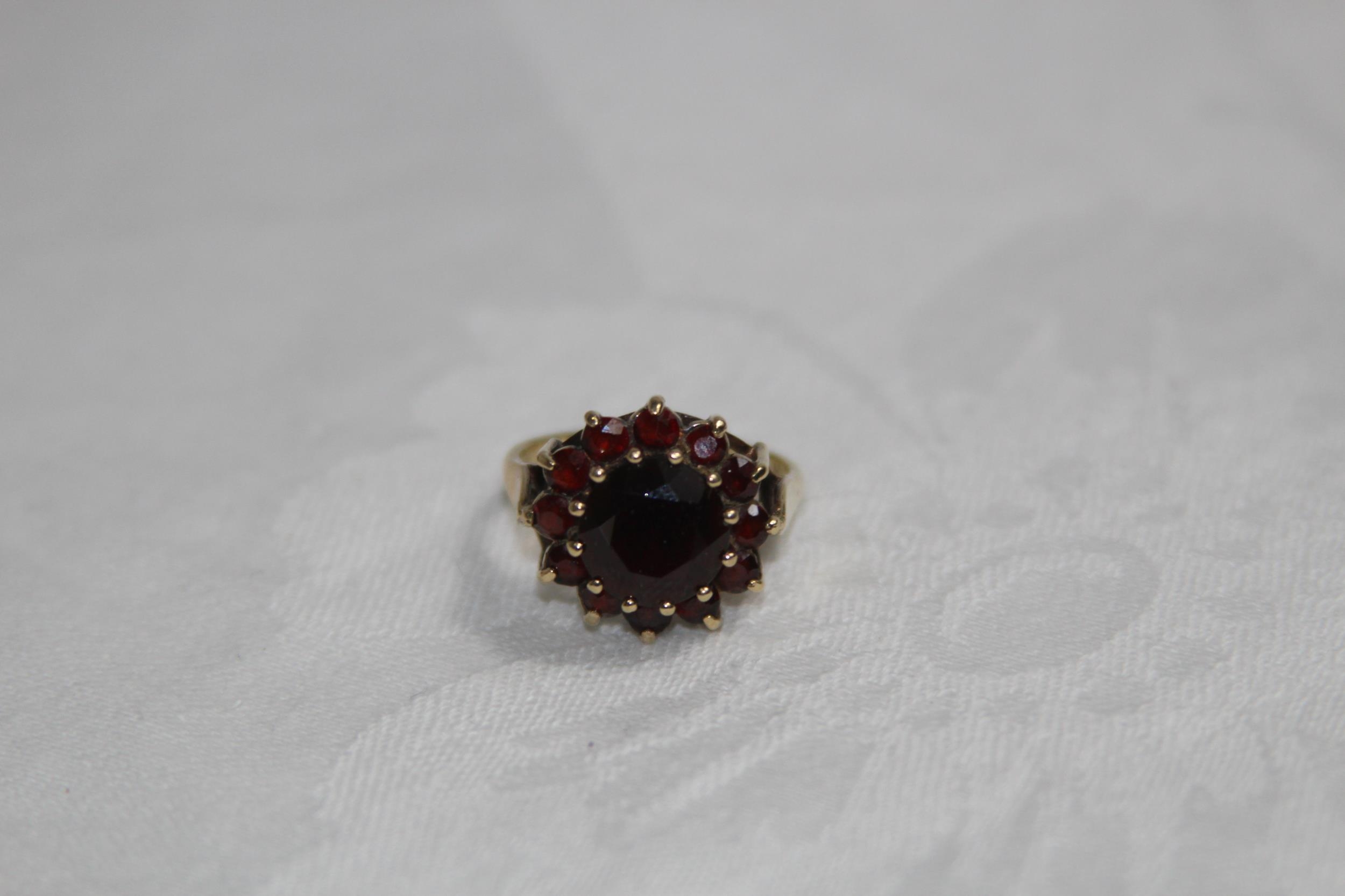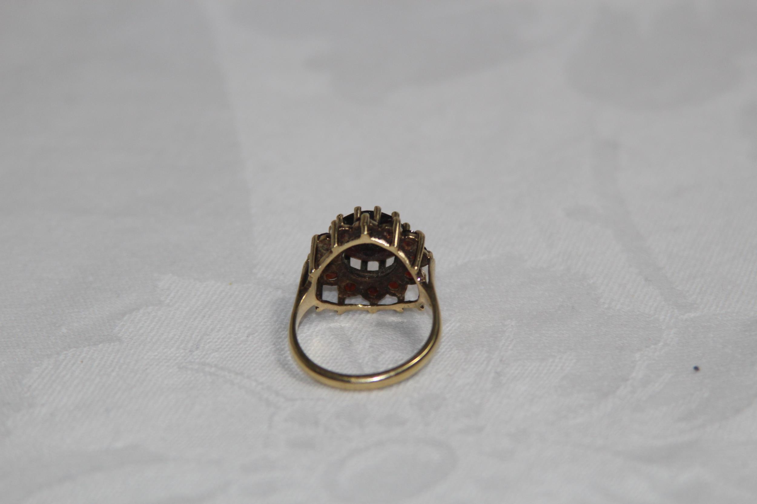9CT GOLD AND GARNET RING - 5.1G - SIZE P