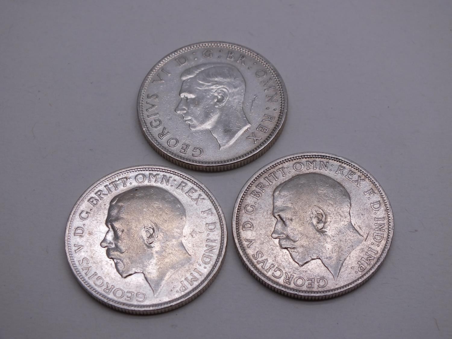 THREE SILVER ONE FLORIN COINS, 1915, 1918 AND 1943