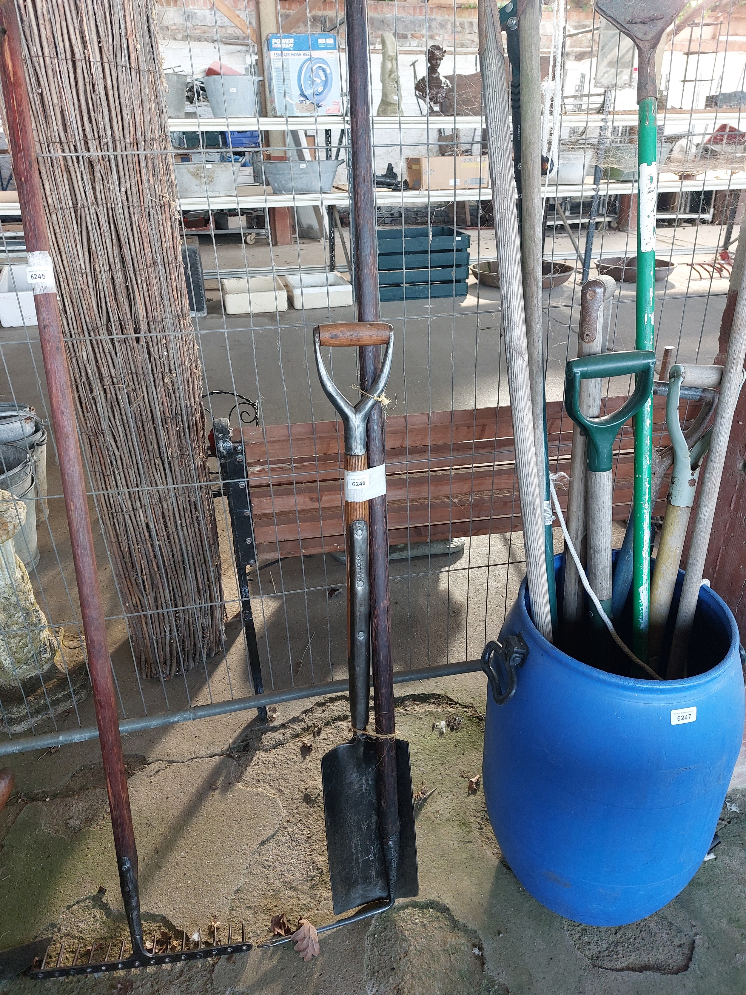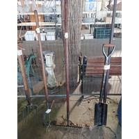 A vintage Bulldog drainage spade and a pipe laying tool.
