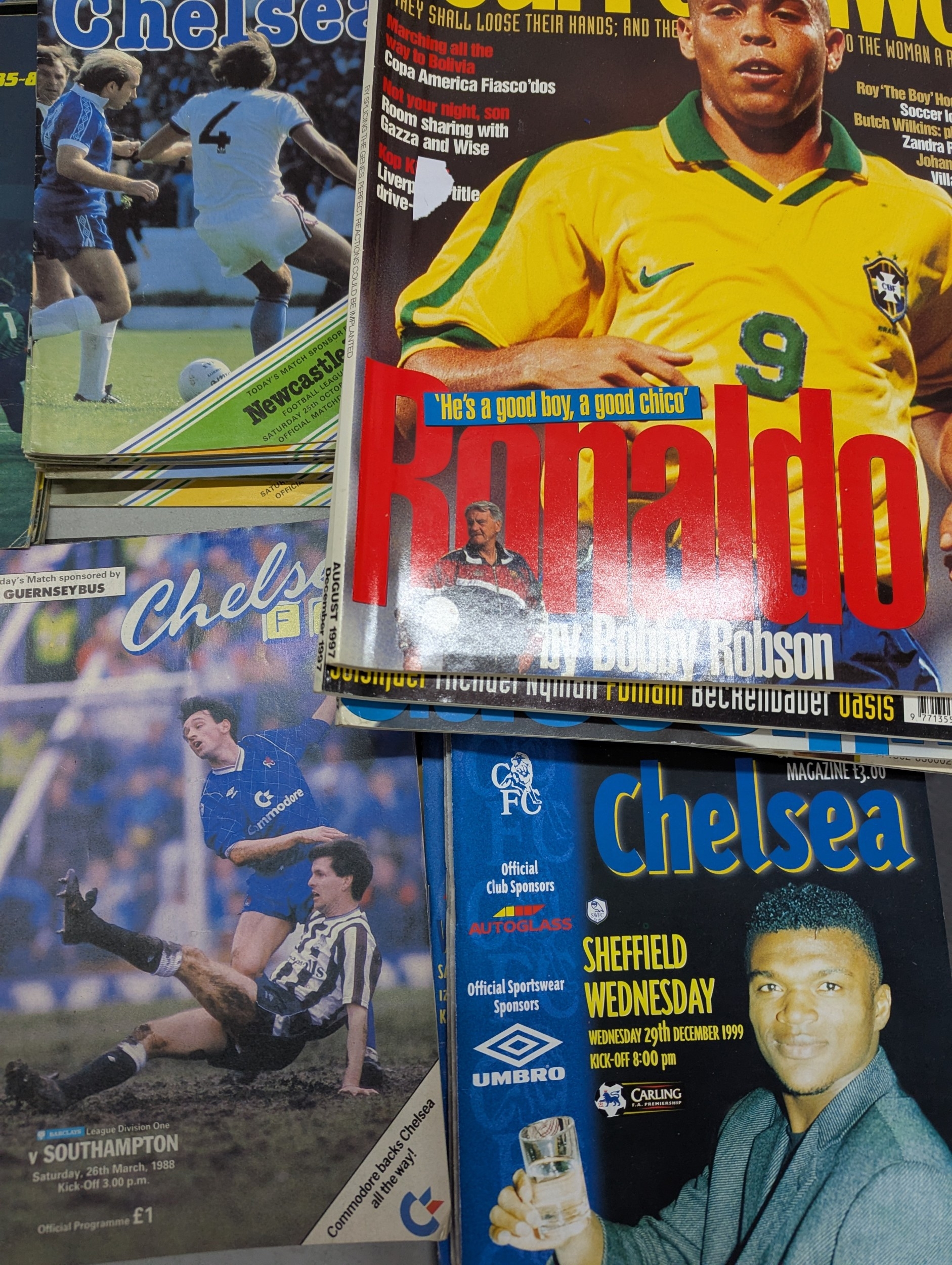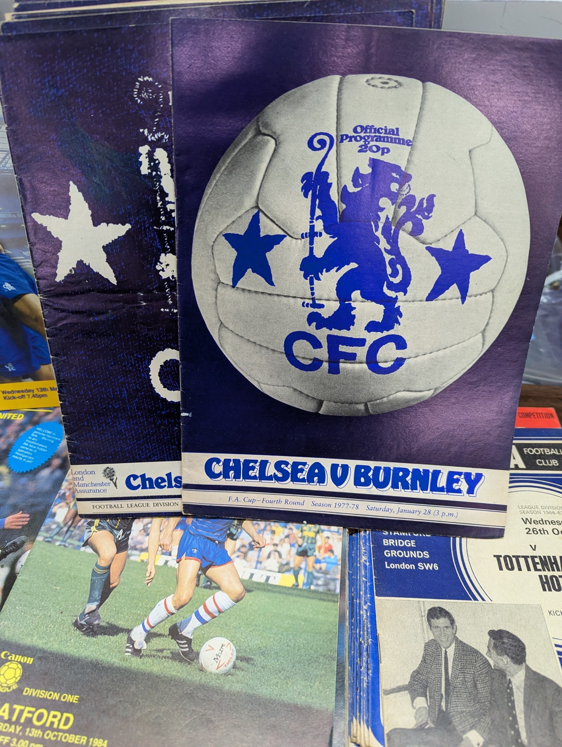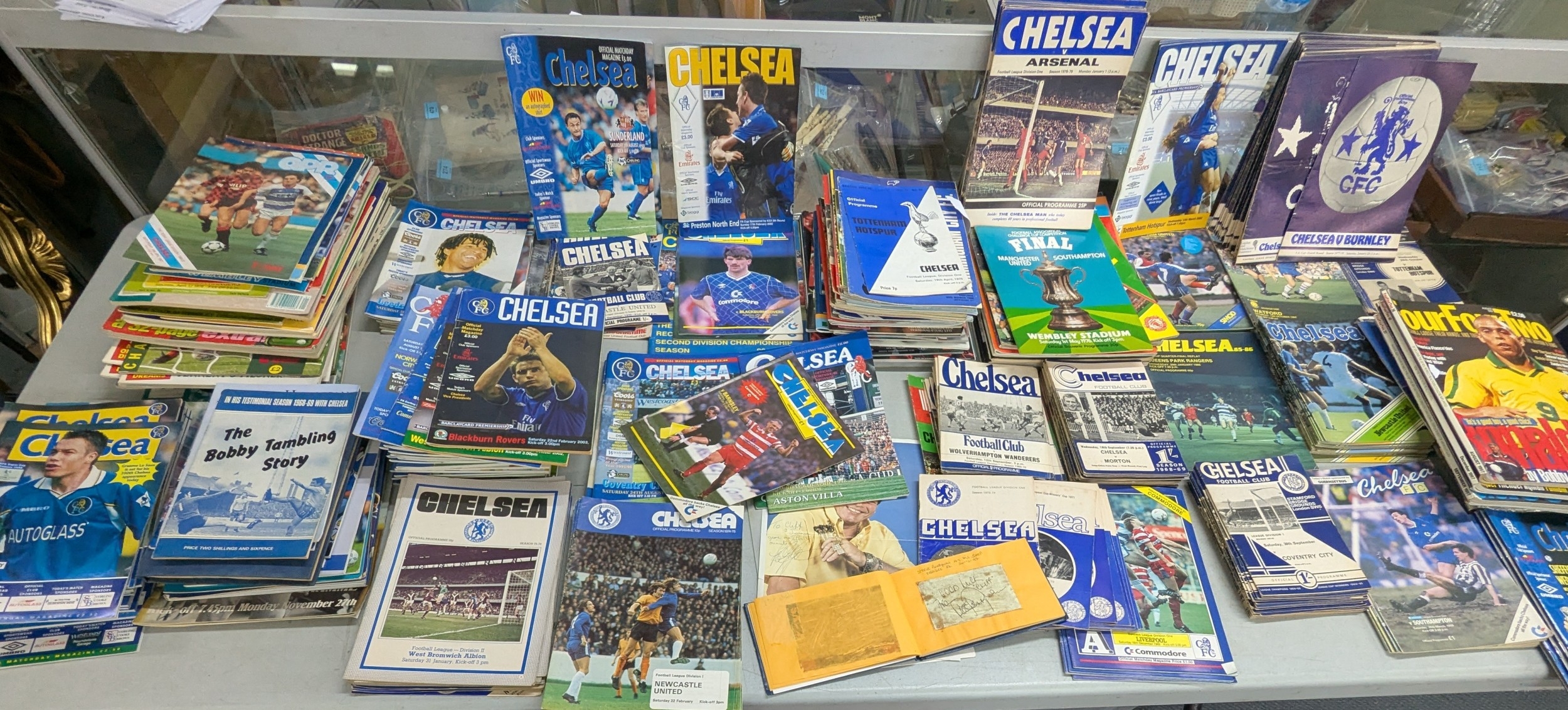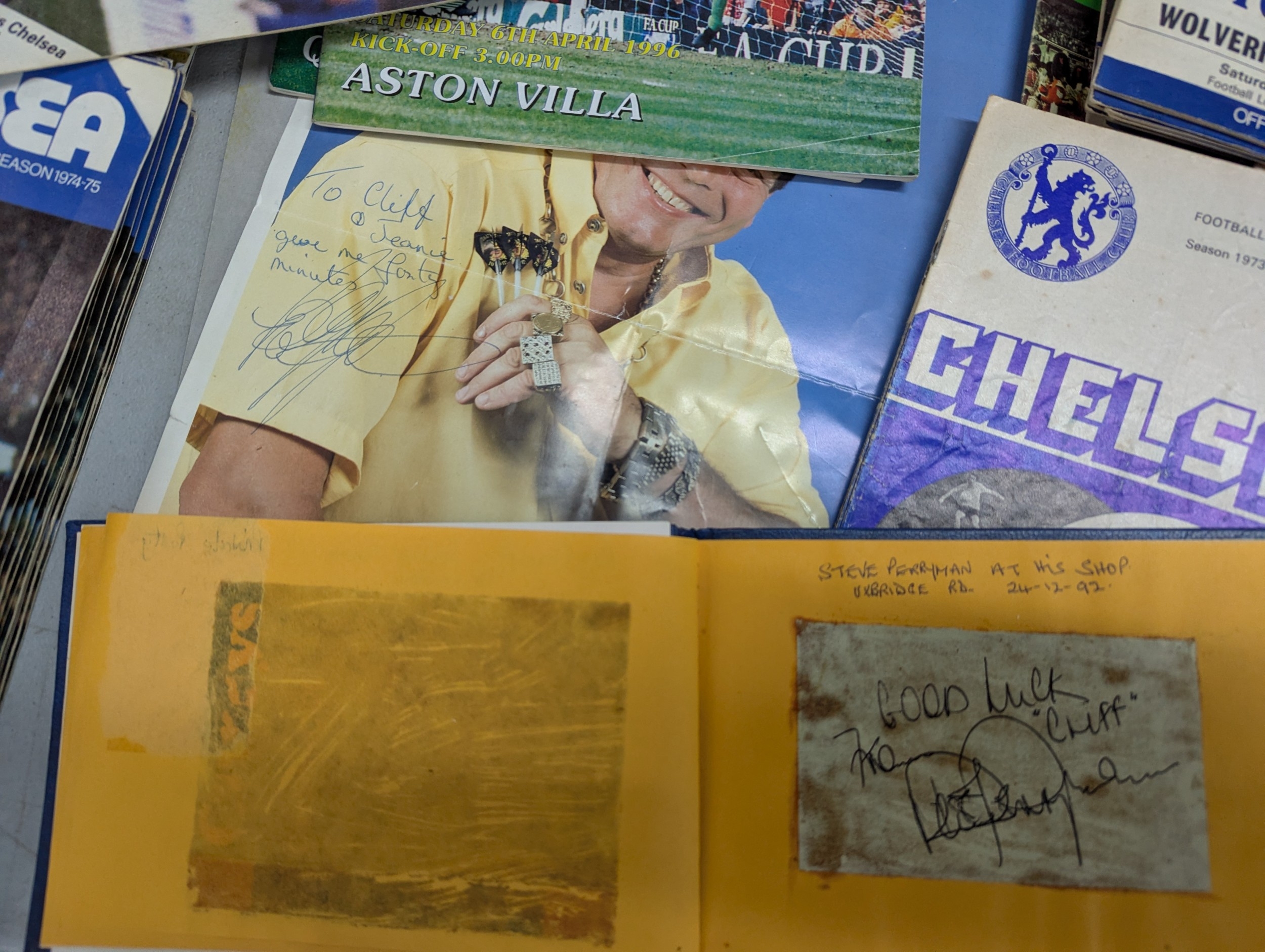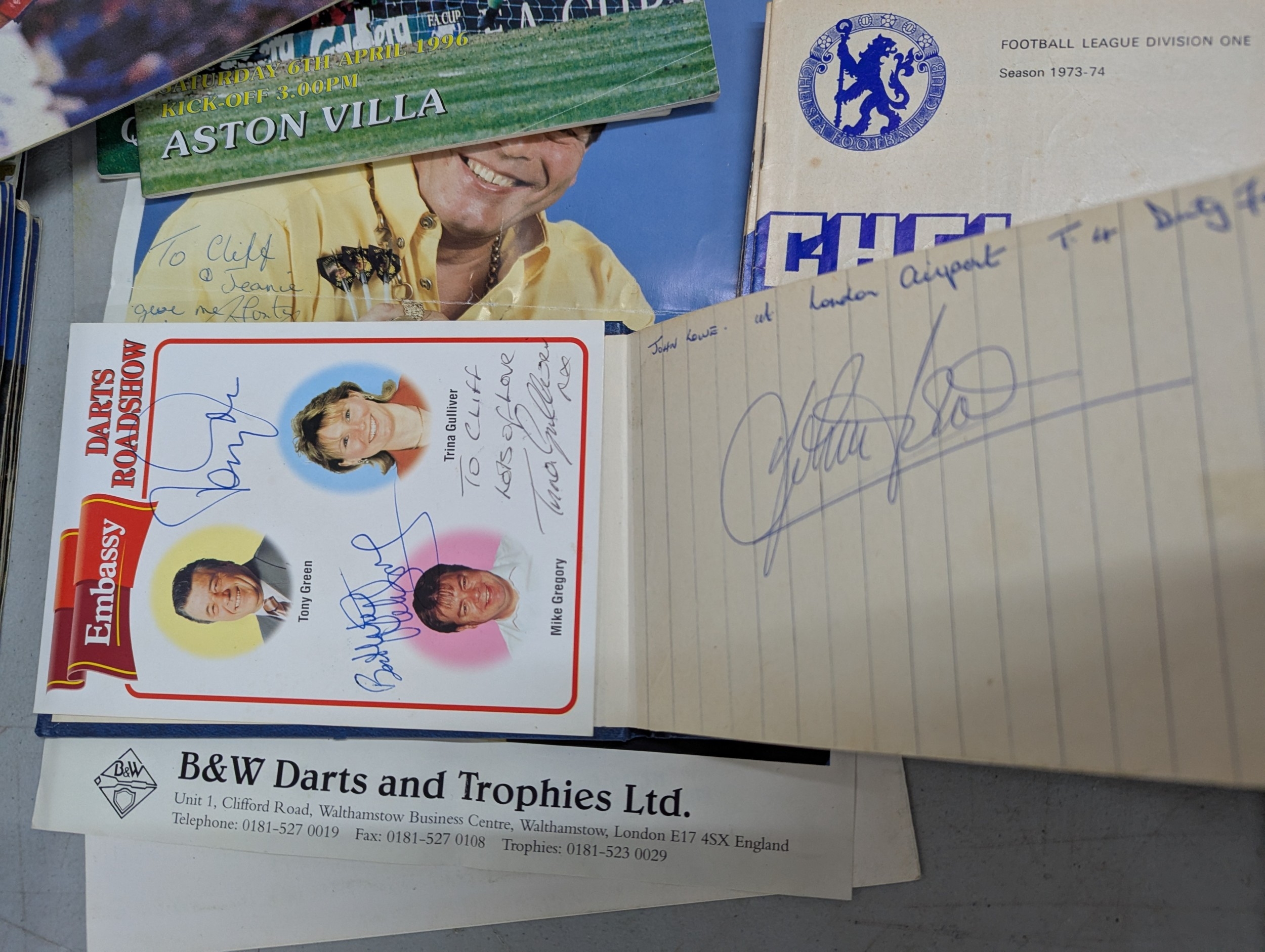 Autograph book and Chelsea memorabilia to include Chelsea FC Football programmes from the 1960's onwards together with an autograph book comprising of signatures from Bobby George, Ray Wilkins, Gianluca Vialli and others