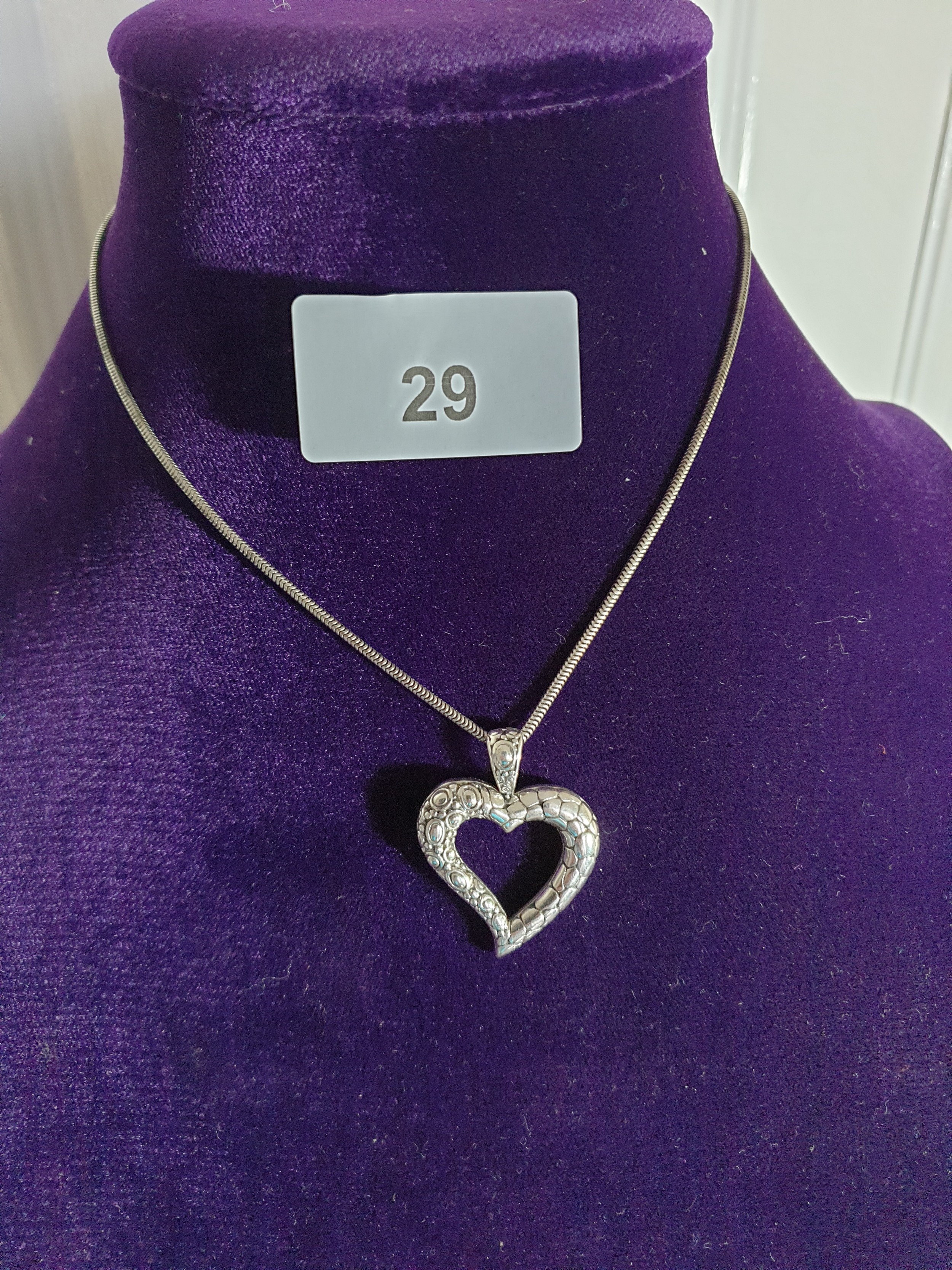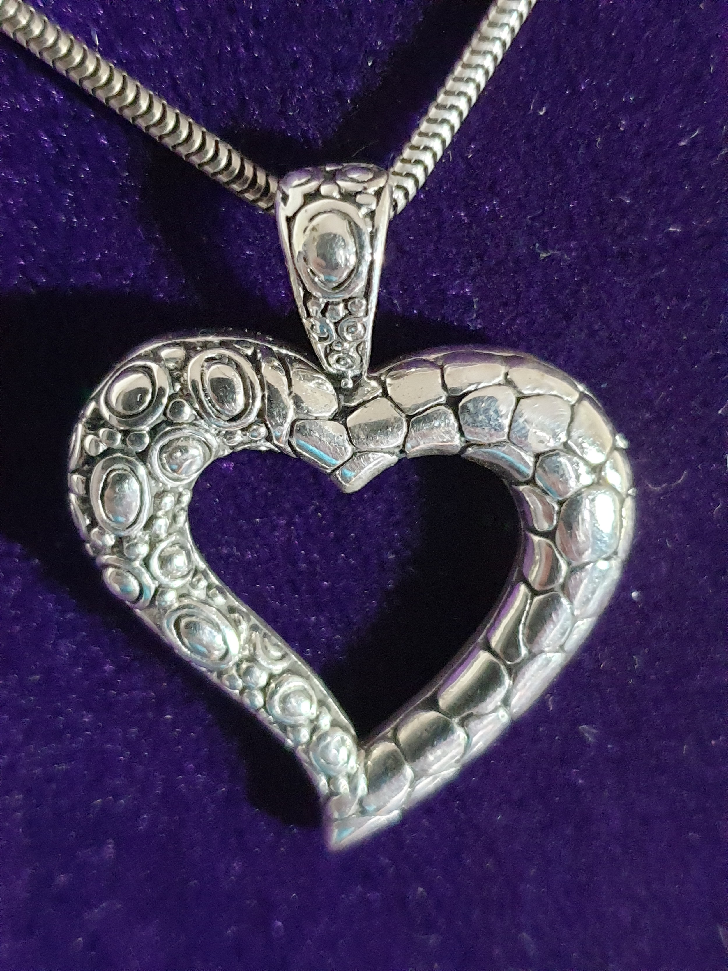 Good Quality Silver Heart Pendant On Silver Serpentine Chain