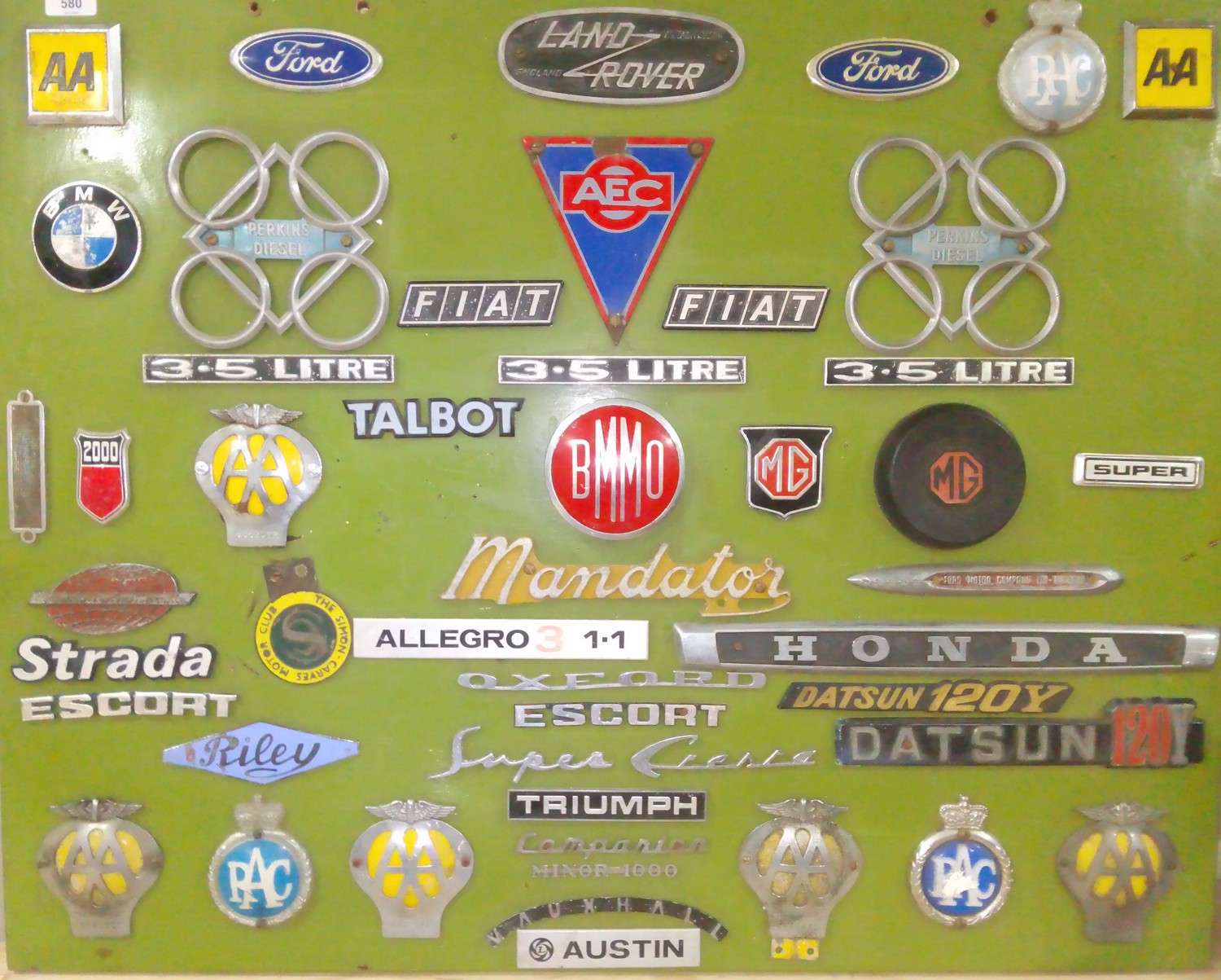 A display board of various vehicles badges.