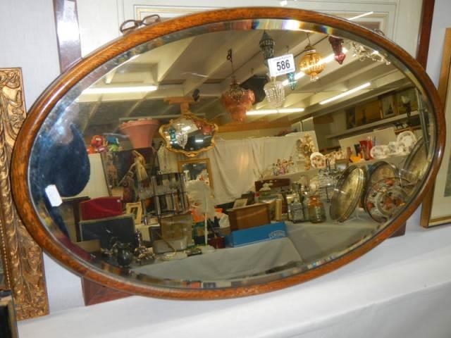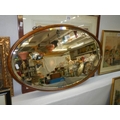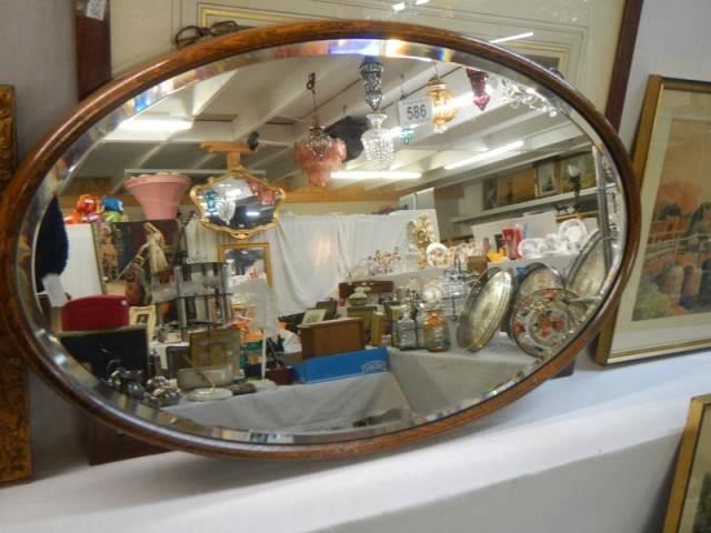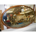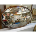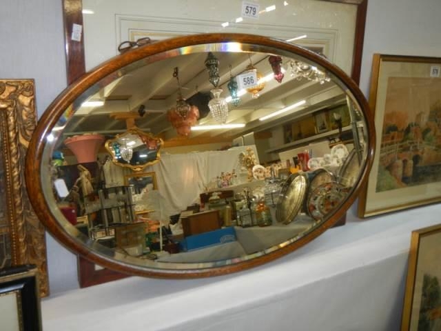 An oak framed oval bevel edged mirror in excellent condition,. COLLECT ONLY.