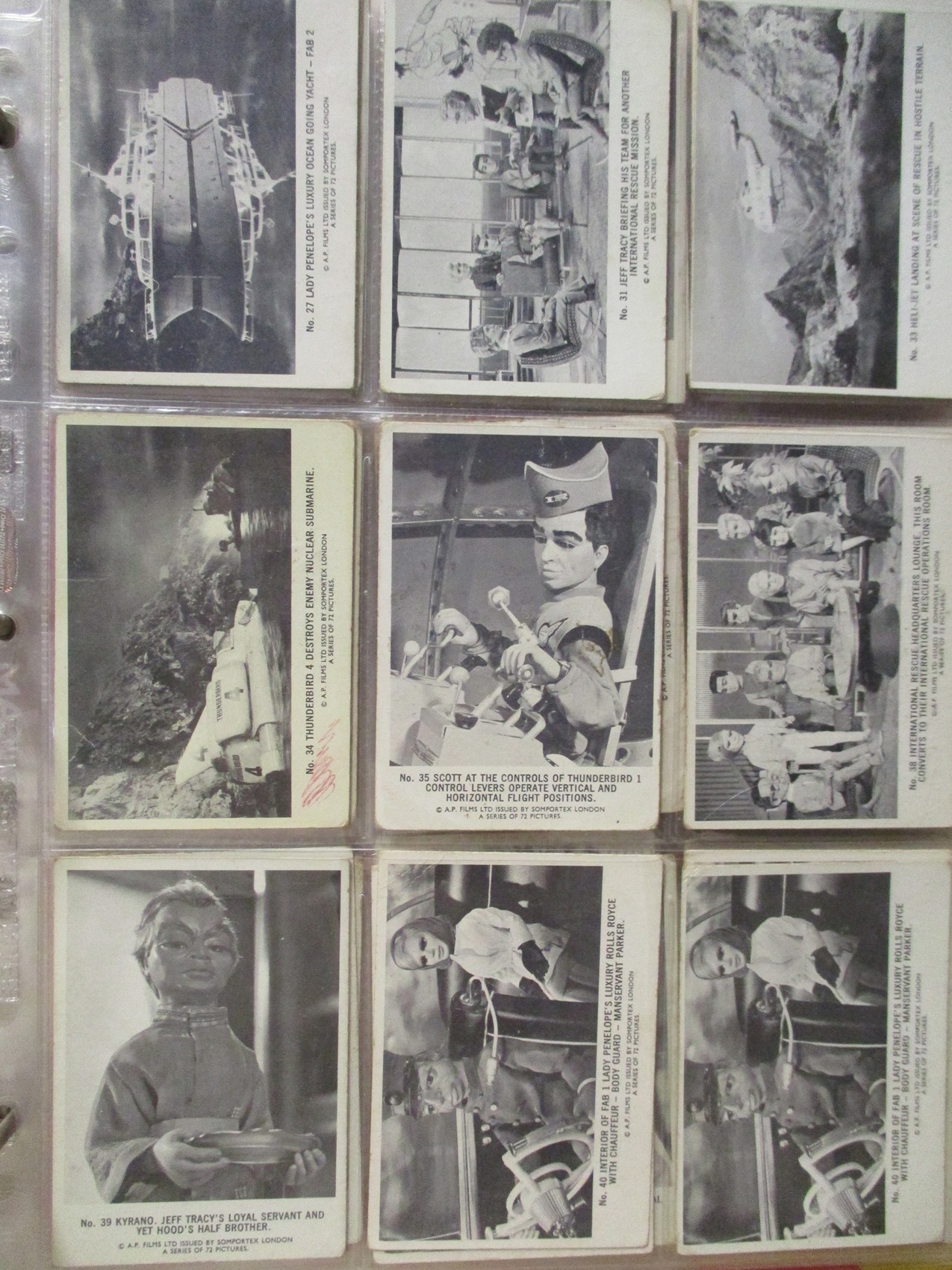 Collection of part sets in 2 albums with ranges including A & B.C Planes (106), Planet of the Apes (36), Somportex John Drake Danger Man (35), Thunderball (38) Thunderbirds (mixed (85)), etc, varying condition. Qty 700 approx (½B)