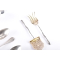 Unmarked white metal gilt asparagus serving set, tests as silver; 41.2 grams.