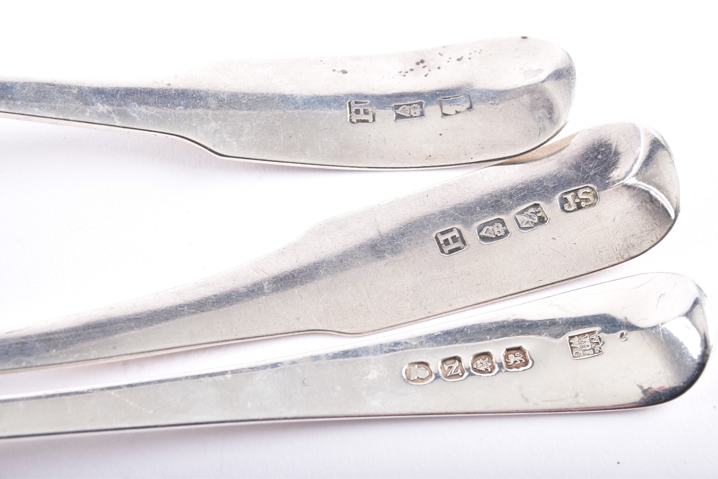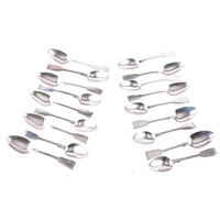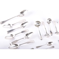French pieces (11 teaspoons, 2 x small gravy ladles and large serving spoon with indistinct markings; 411.6 grams.