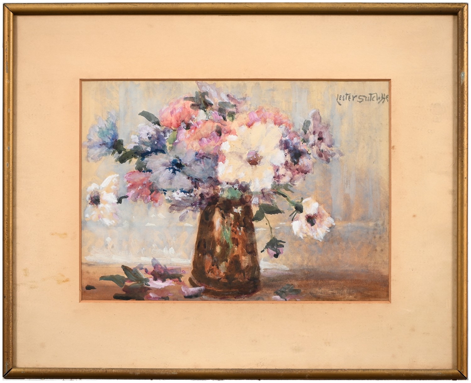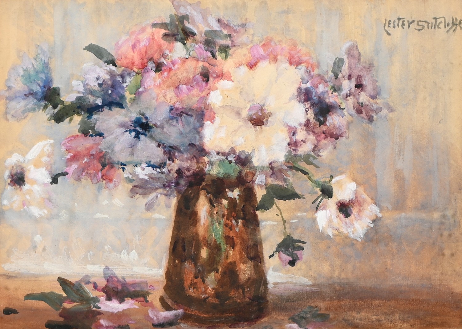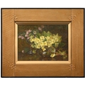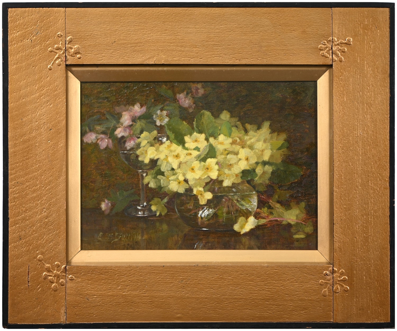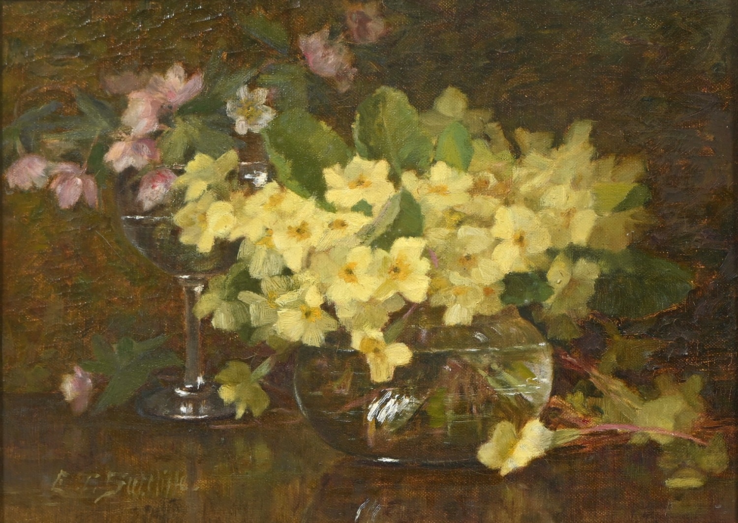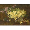 Lester Sutcliffe (1848-1933) - Still Life of Pink and Yellow Primroses in Water, signed, oil on canvas, 25 x 34cm; another three works by the same artist, watercolours, mixed sizes, (4)