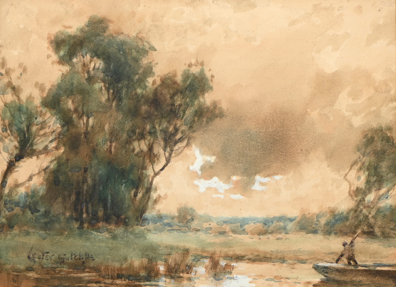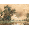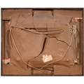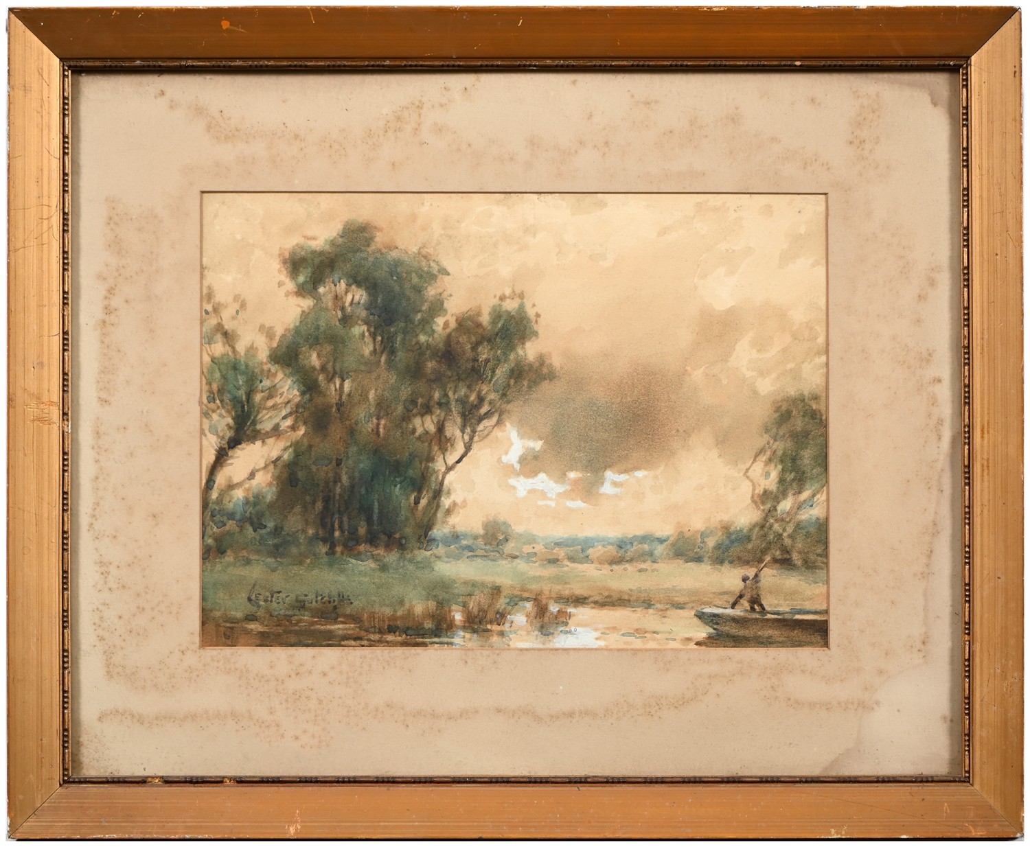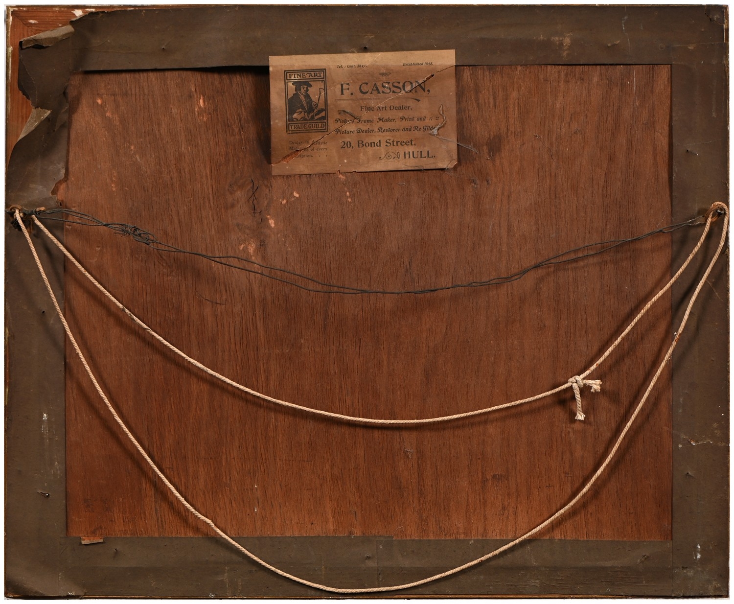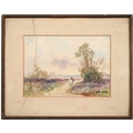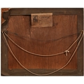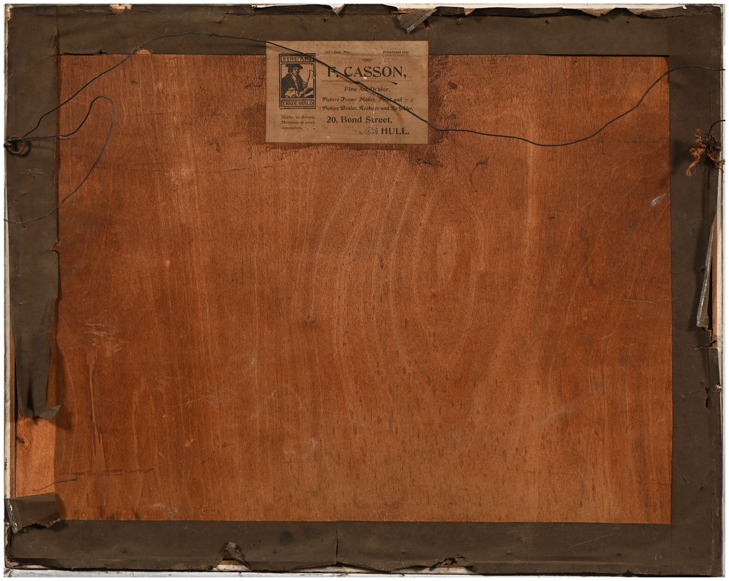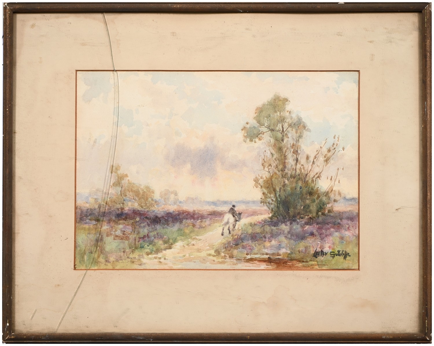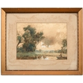 The oil unexamined out of its glazed mount, but evident craquelure. The watercolours mixed, OK-good.