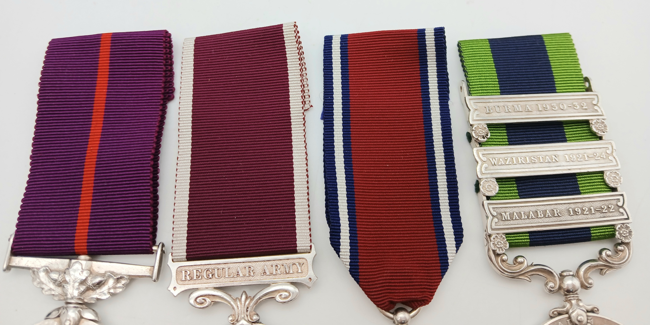 India General Service Medal 1908 (Royal Mint issue), with three clasps: Malabar 1921-22, Waziriatan 1921-24 and Burma 1930-32 named to 2310828 Sglmn J Peters R Signals.