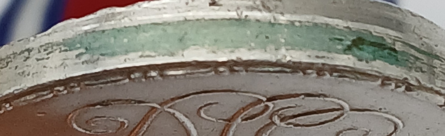 The 2nd and 3rd clasps on the IGS are loose on the ribbon as is not uncommon with multi-clasp IGS 1908s.