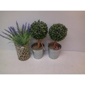 Two small artificial trees in two small buckets 37cmH & one artificial plant
