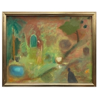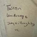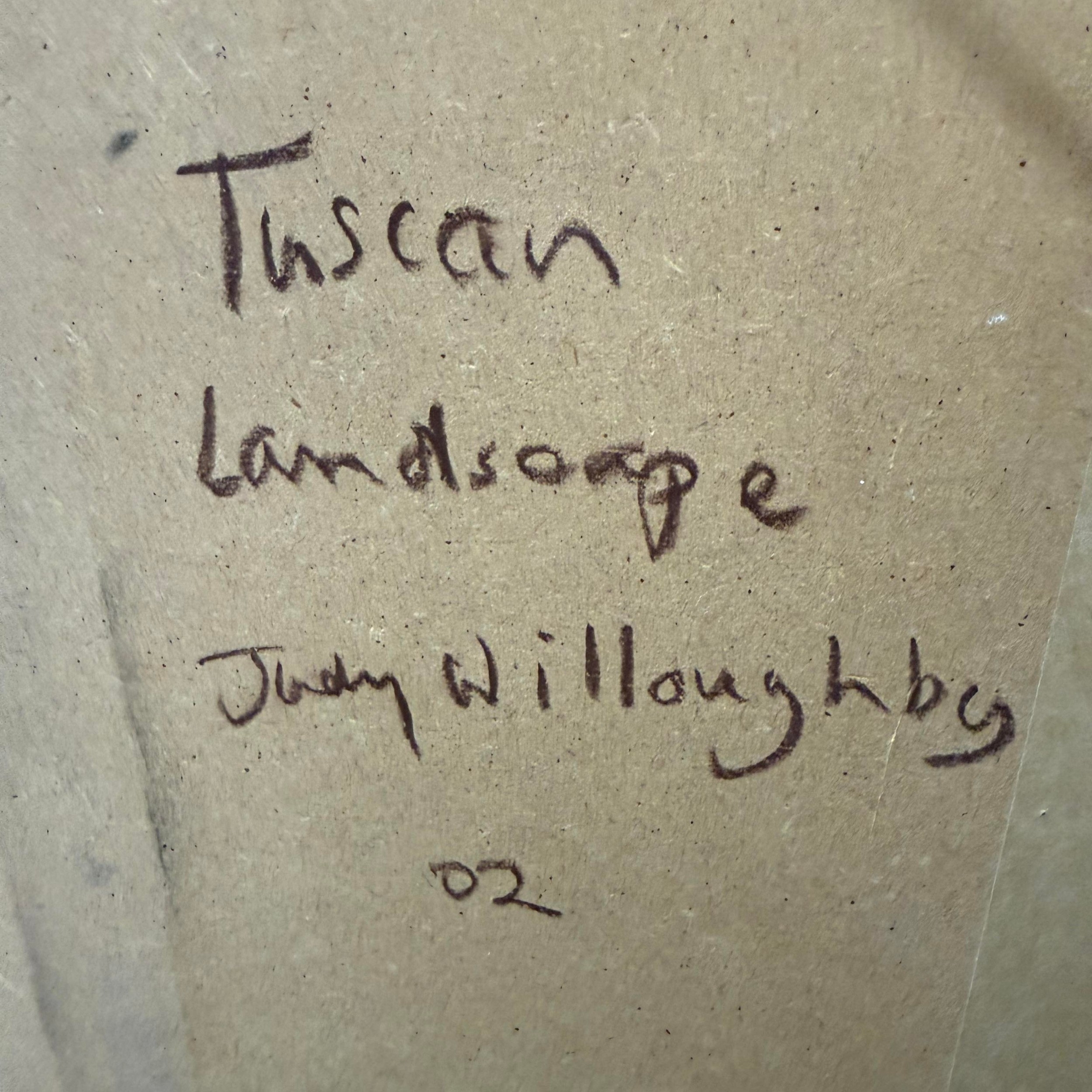 JUDY WILLOUGHBY (BRITISH B.1949). TUSCAN LANDSCAPE. oil on board, 77cm x 123cm, framed.