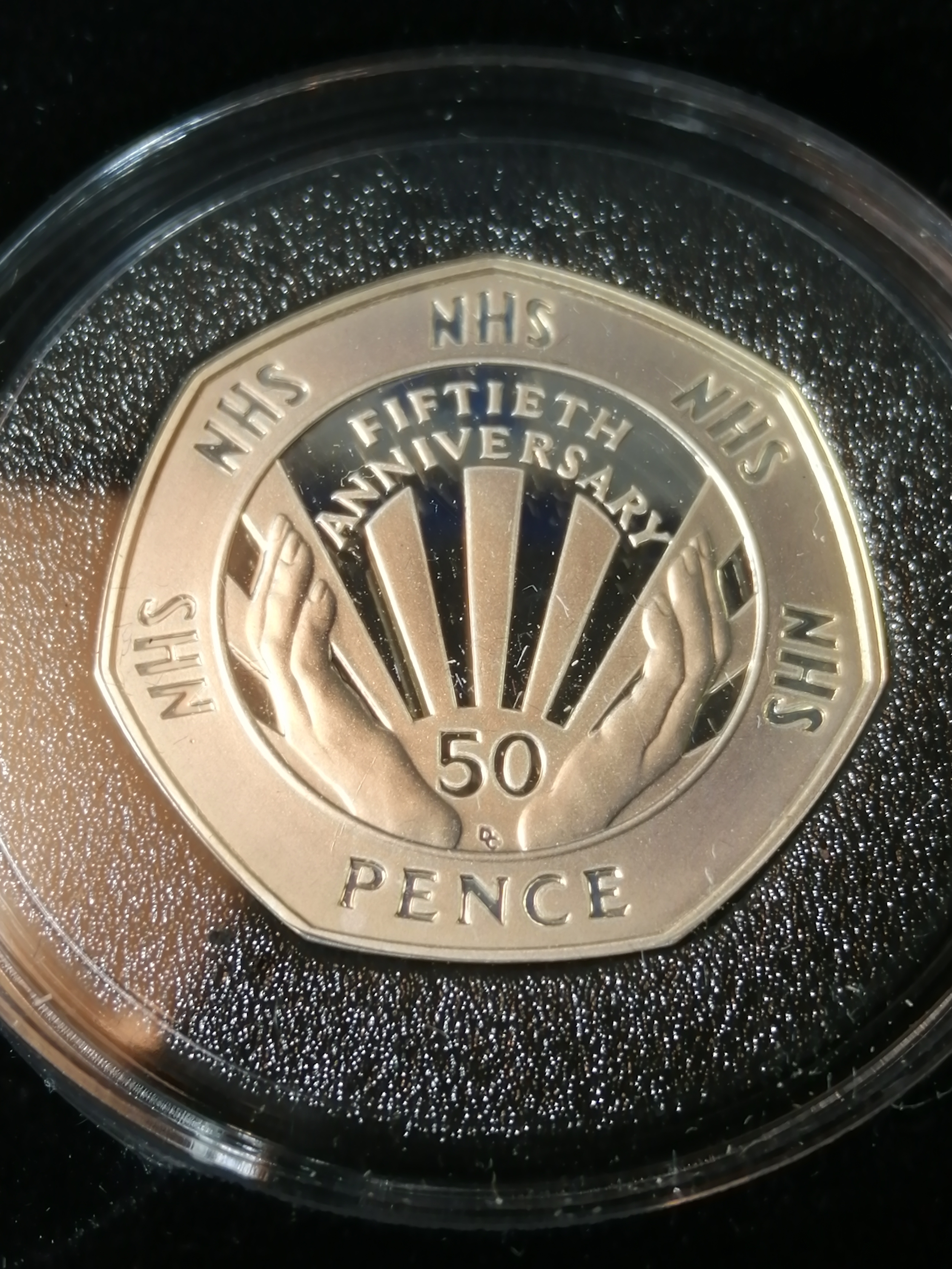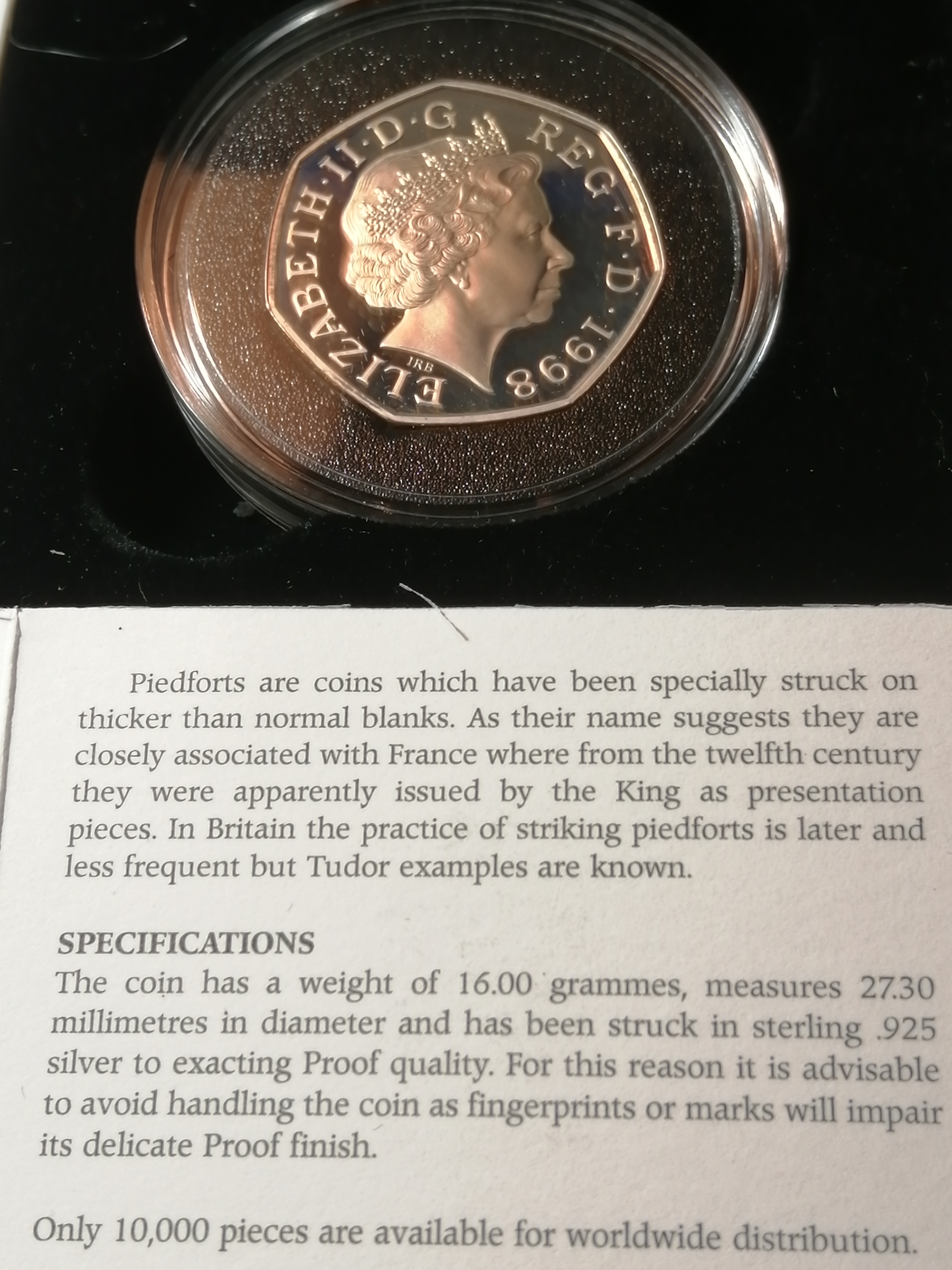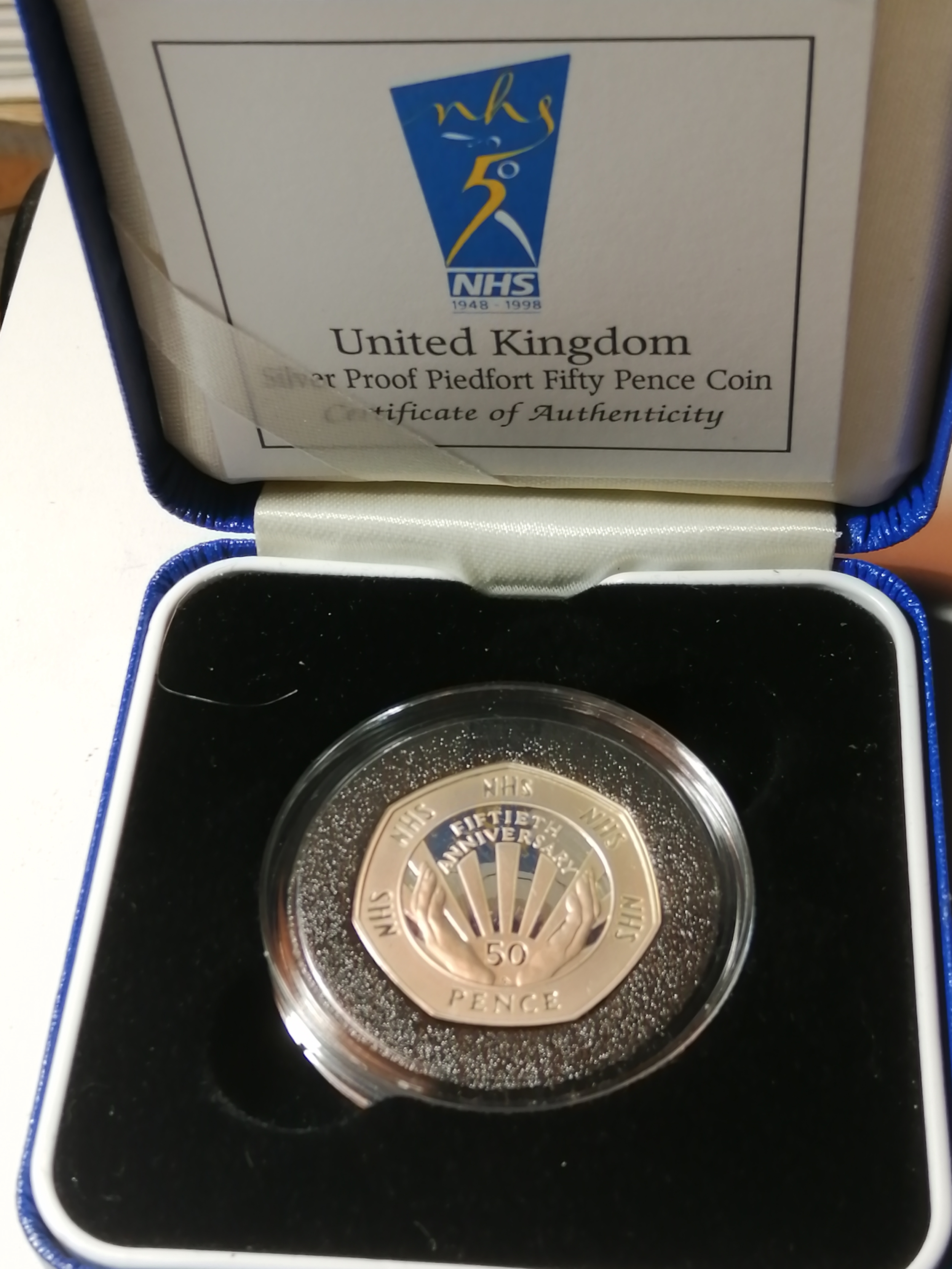 COINS : 1998 silver proof PIEDFORT 50p (NHS) in blue presentation box