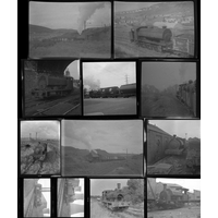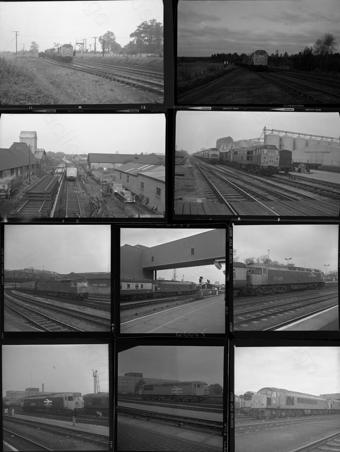 Railway. Modern Traction. Approx. 50, individual, mostly medium format, with a few 35mm black and white negatives. Taken between the 1970's and 1990's and featuring diesel classes 31 (most), 37, HST, 45, 47, 50, 56 and some electrics. Locations include: Stoke Gifford, Birmingham New Street, Cardiff, Leiston, Swindon, Leamington Spa, Bristol, Toton and Paddington. All captioned, however several have no loco numbers or locations. They are sold with copyright, sample illustrated.